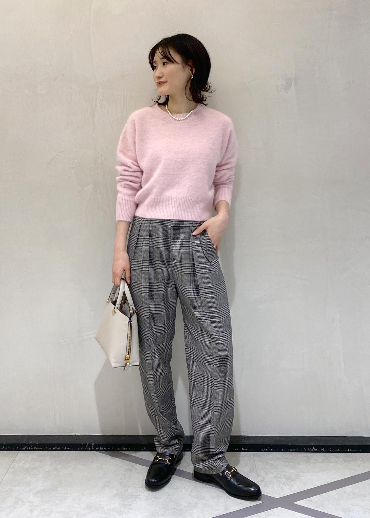 ややショート丈なので、ハイウェストなボトムスと合わせると脚長効果を得られます。