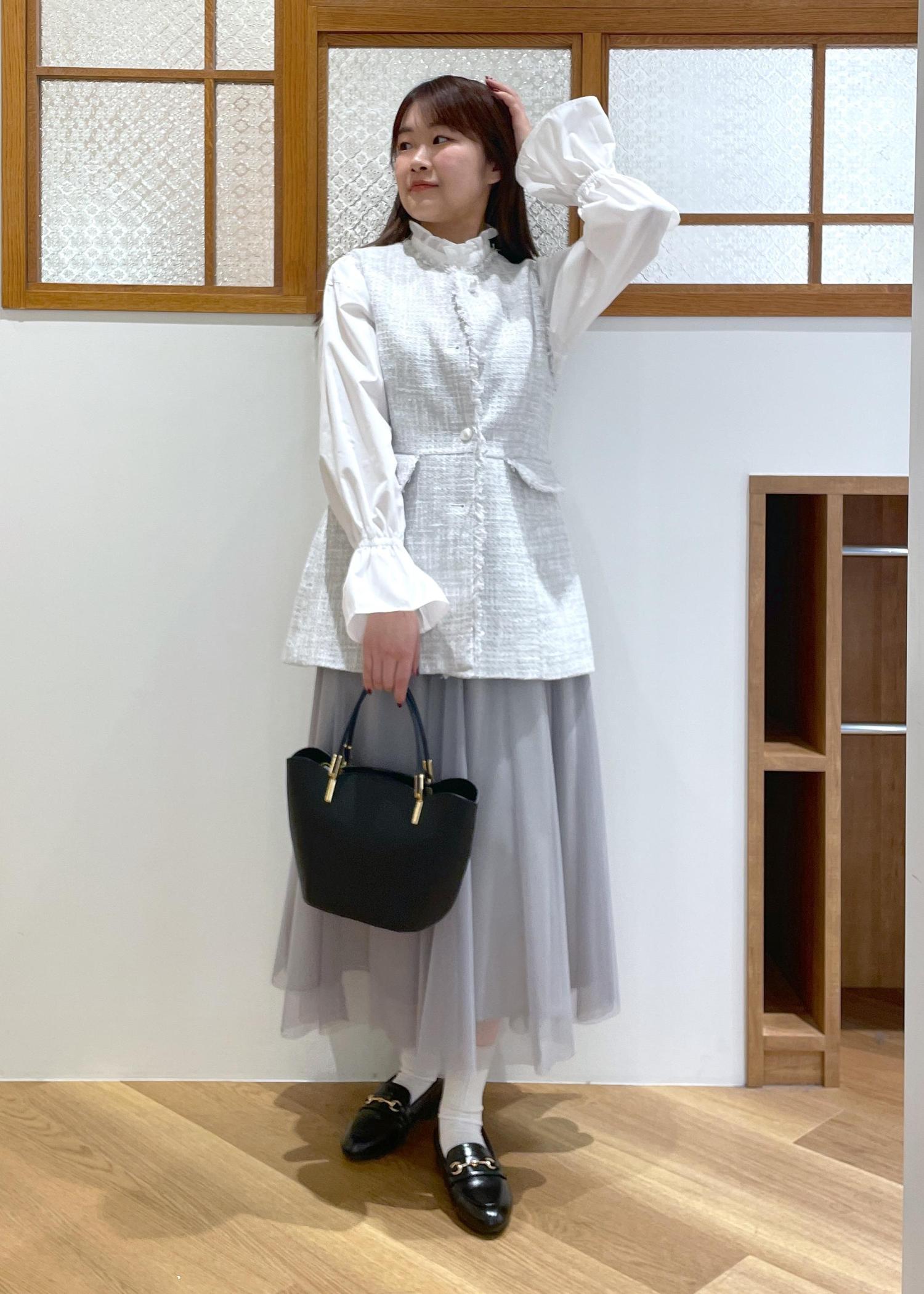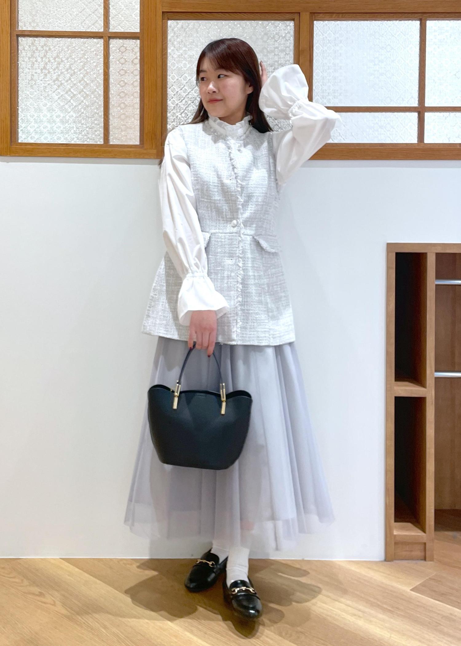 中に着たブラウスの袖がアクセントになり可愛いです。