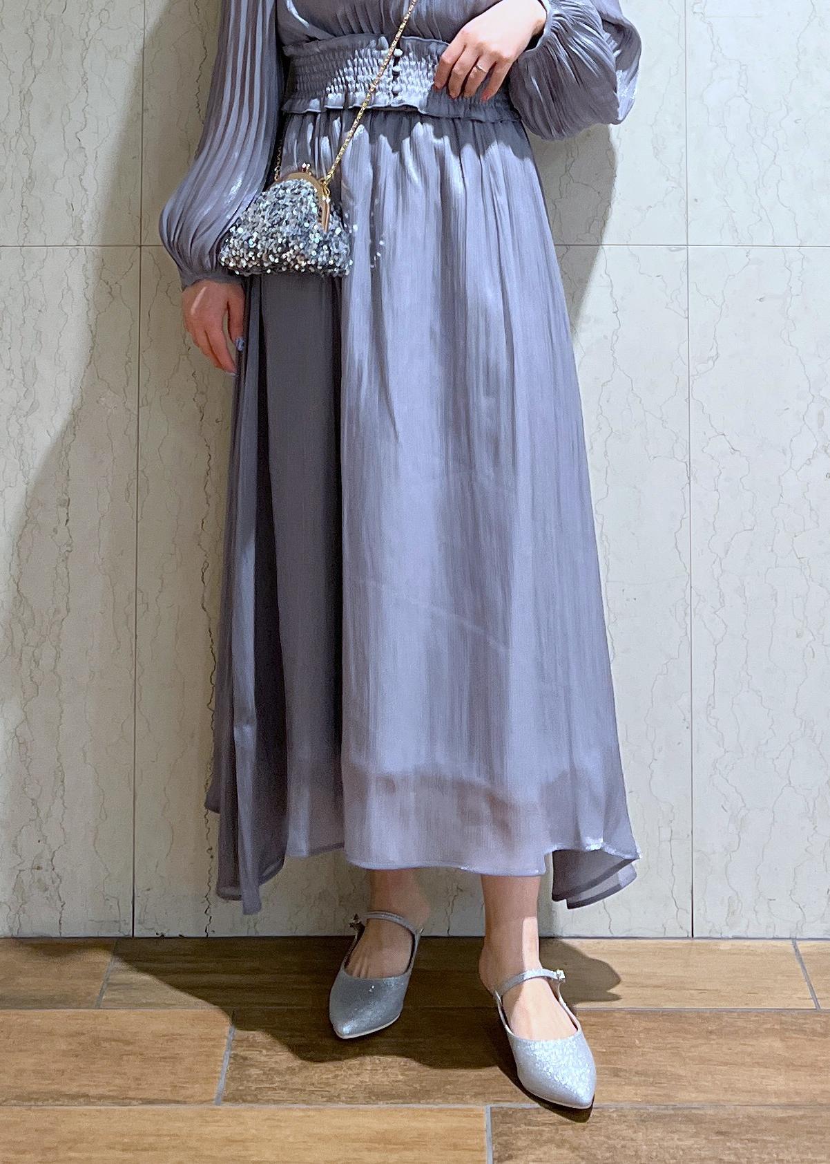 光沢のあるサタン生地で色味は落ち着いていますが、華やかな印象でお召しいただけます。