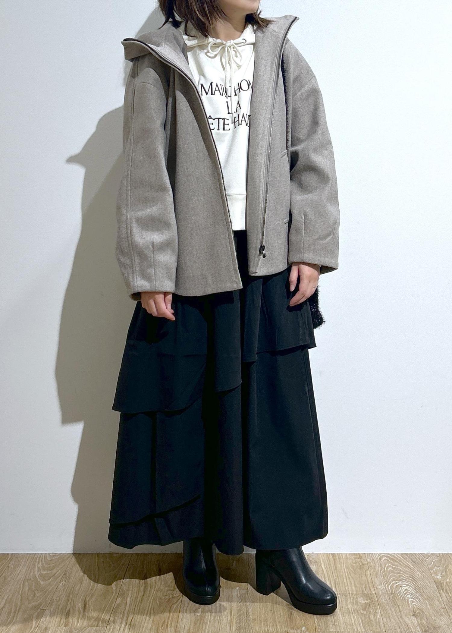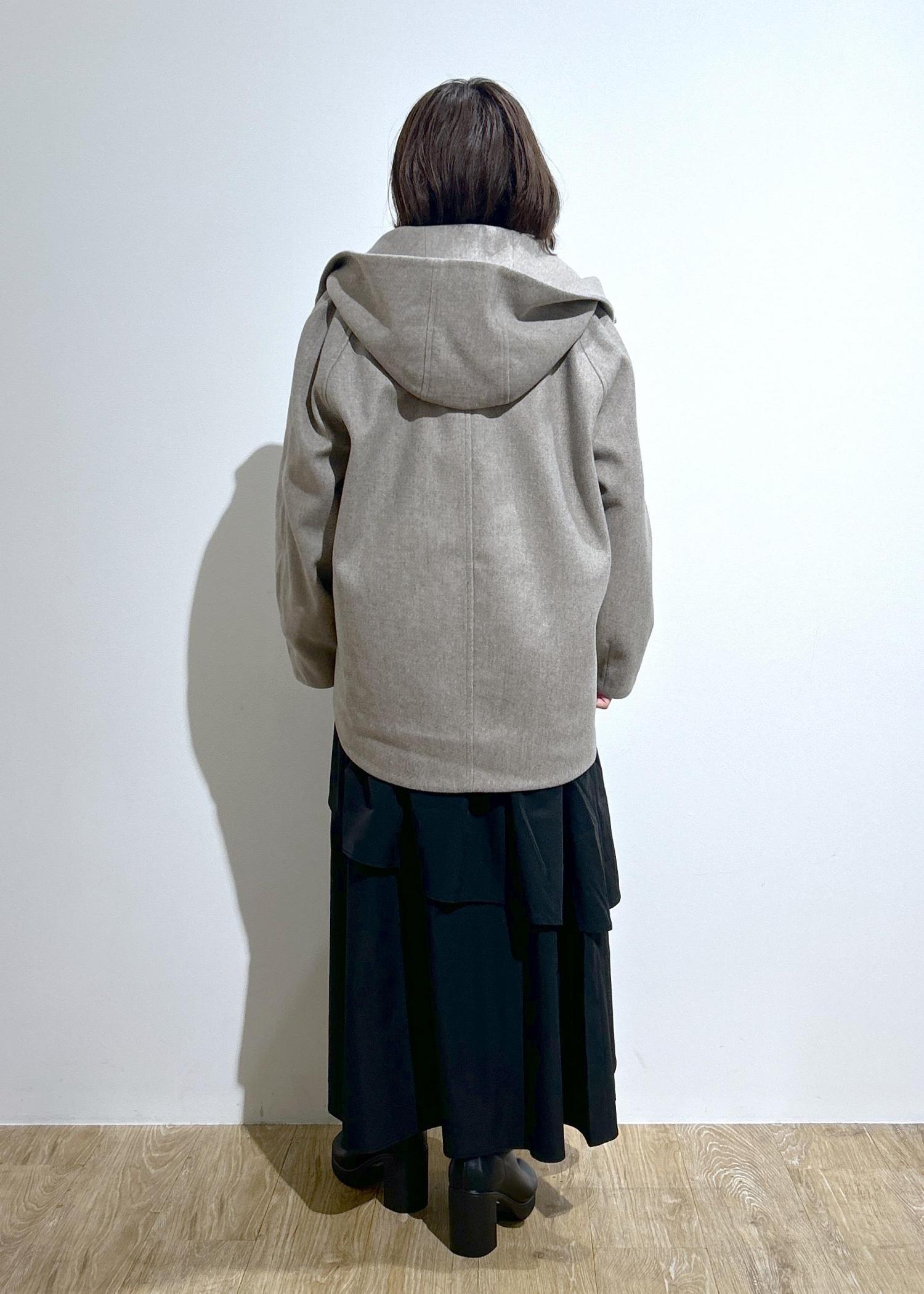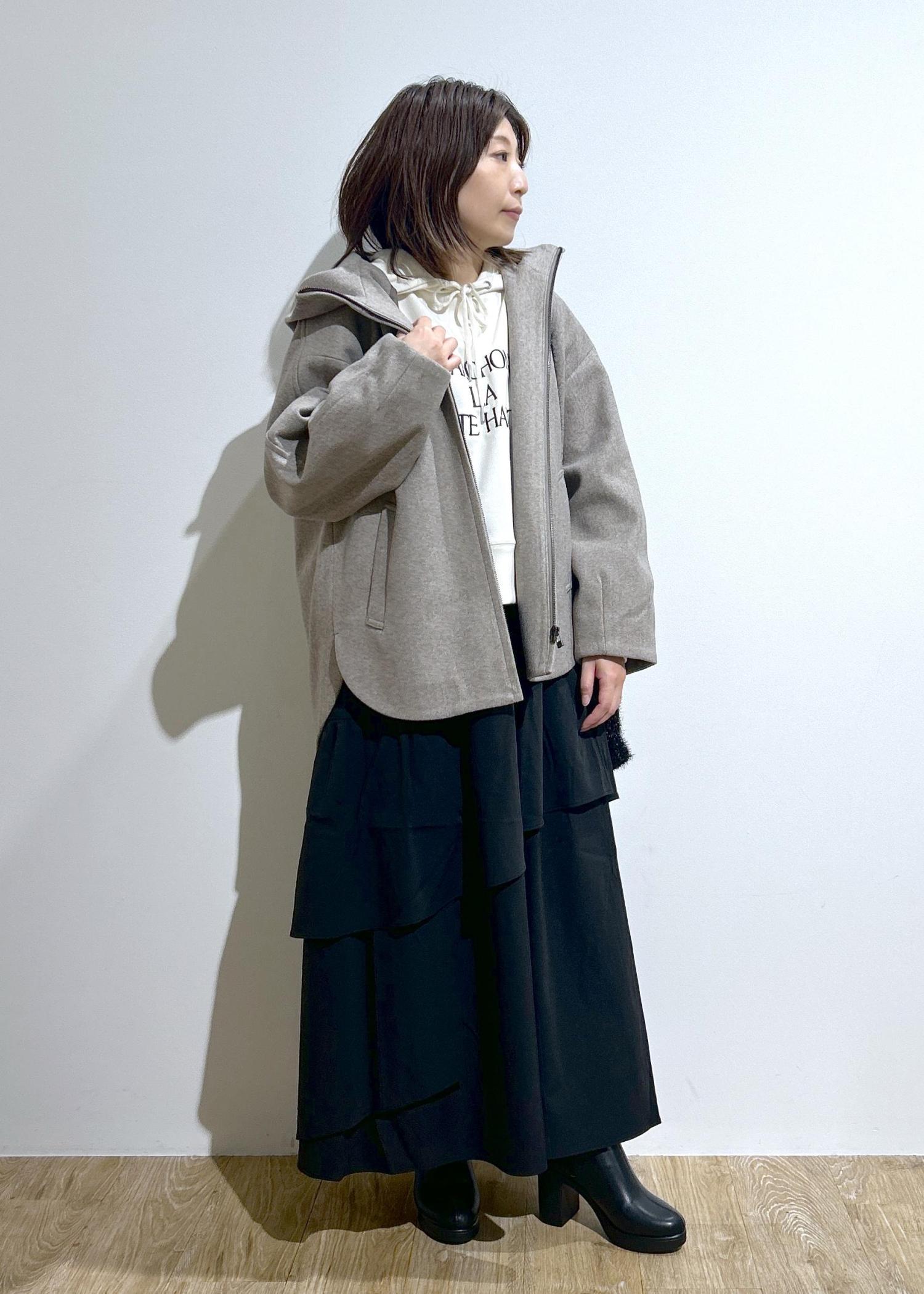 シンプルでオンオフ使いやすいフーディーコート。