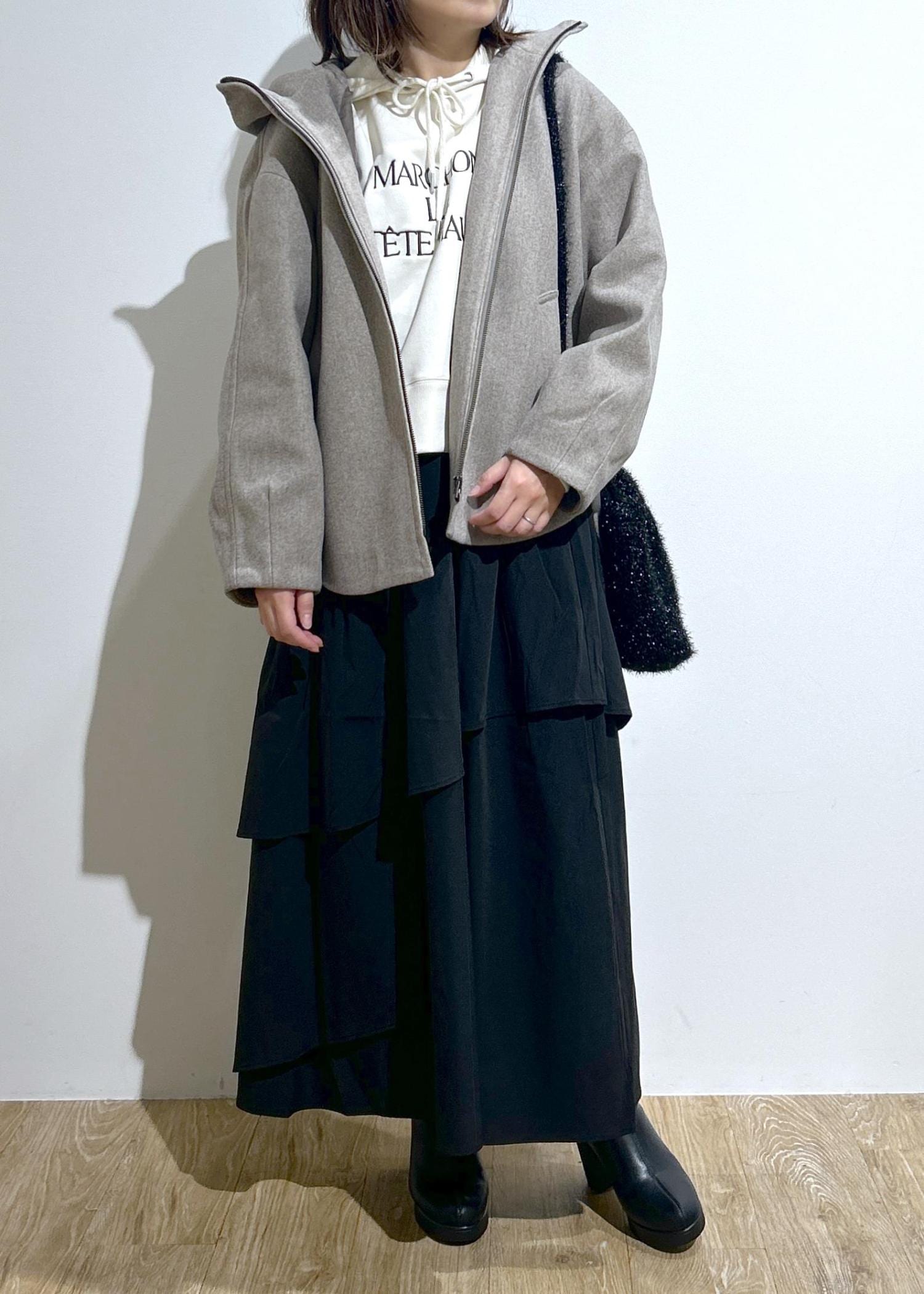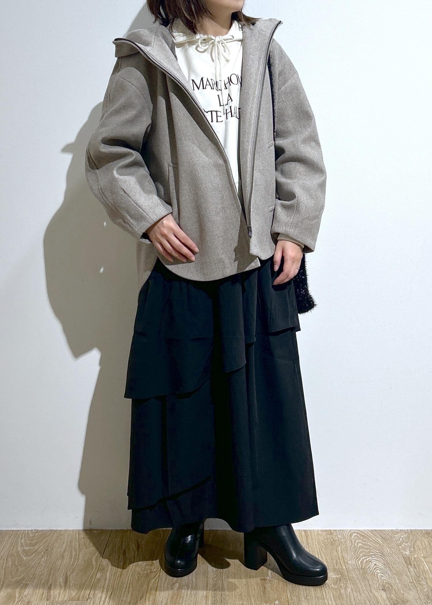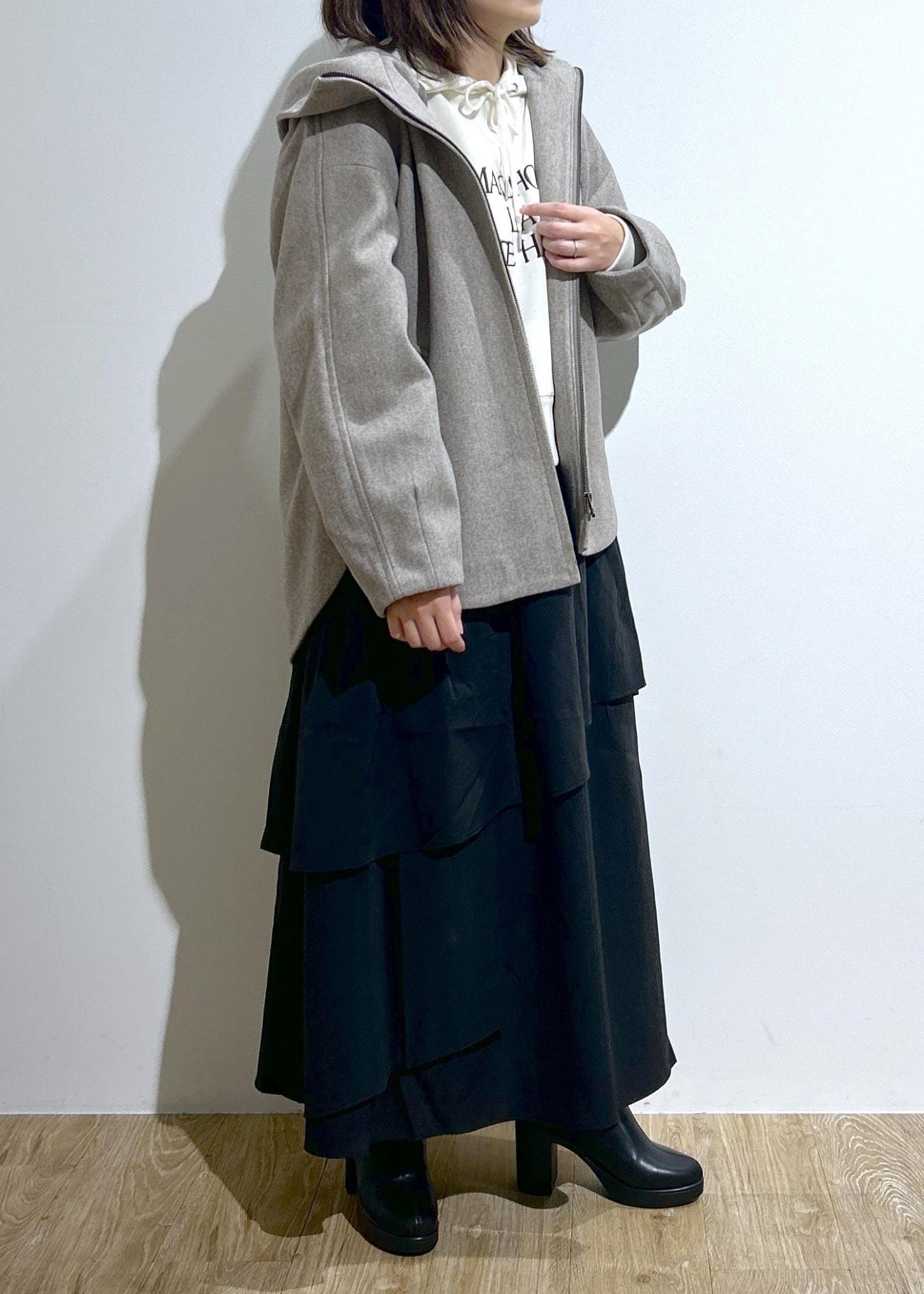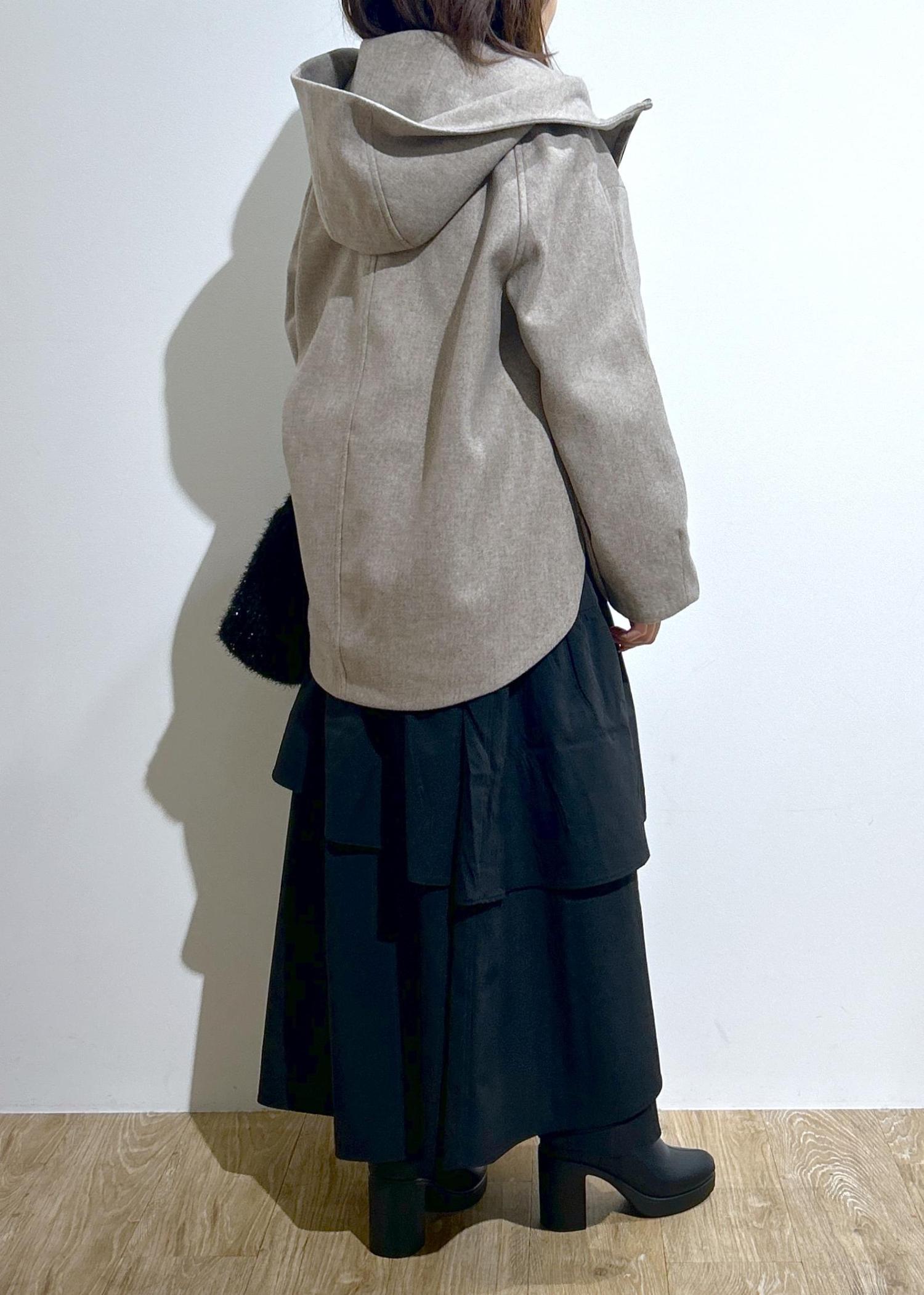 シンプルでオンオフ使いやすいフーディーコート。