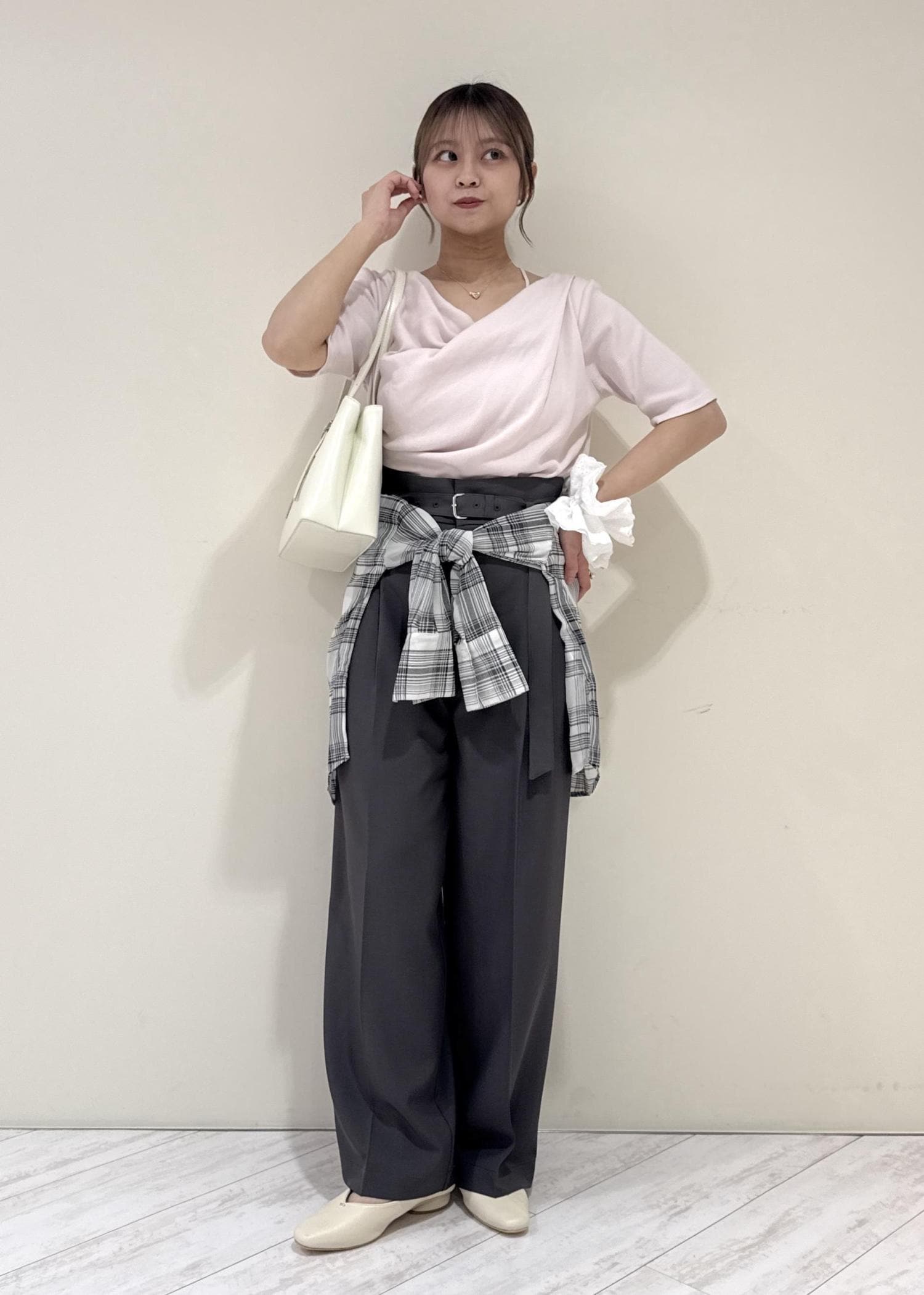 アウトレットVIS【洗える】シャイニーワンタックワイドパンツダークブラウン / SS¥2,307レビュー身長153cmでSSサイズ着用しており、ヒール無しでも履ける丈感でした!