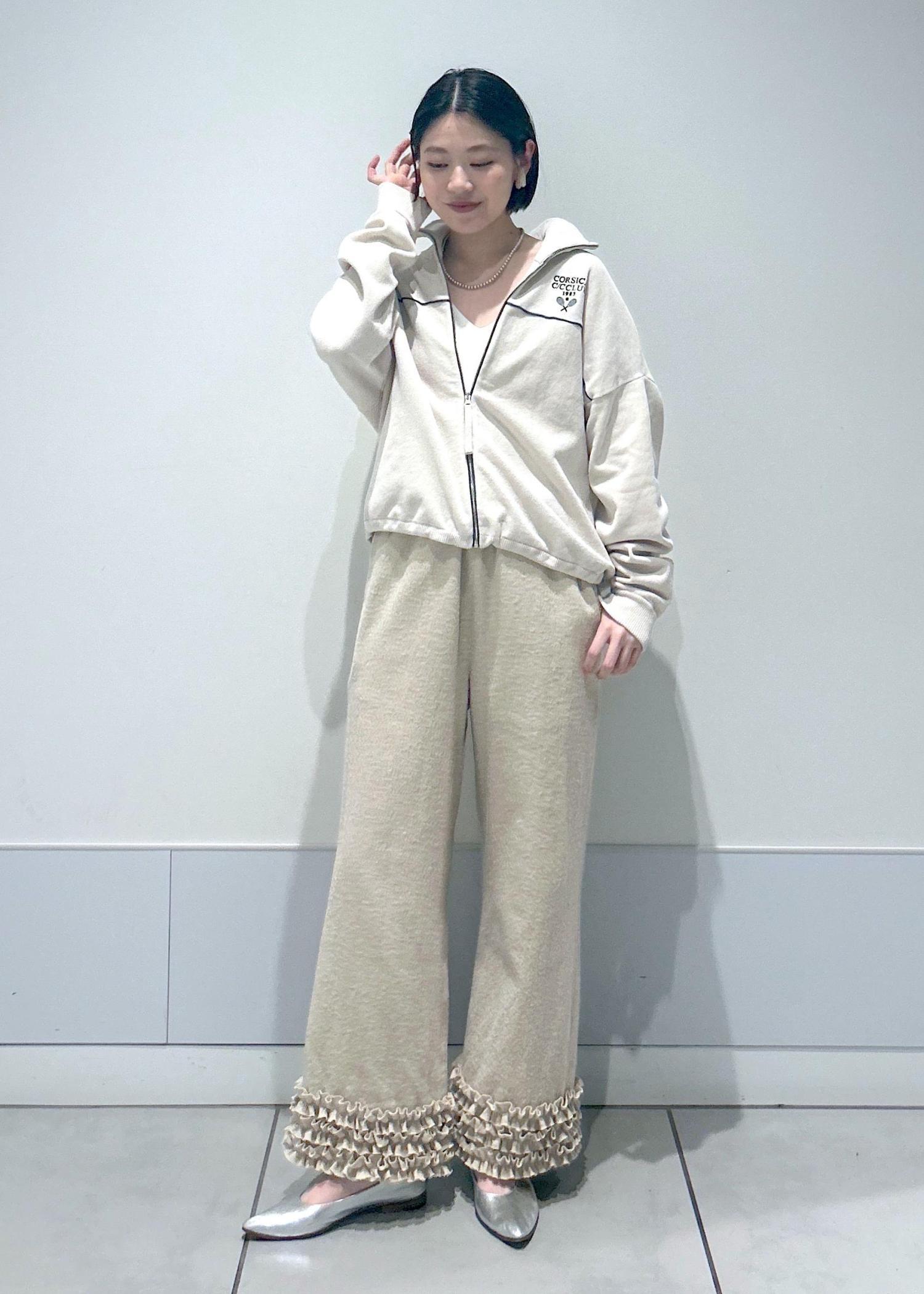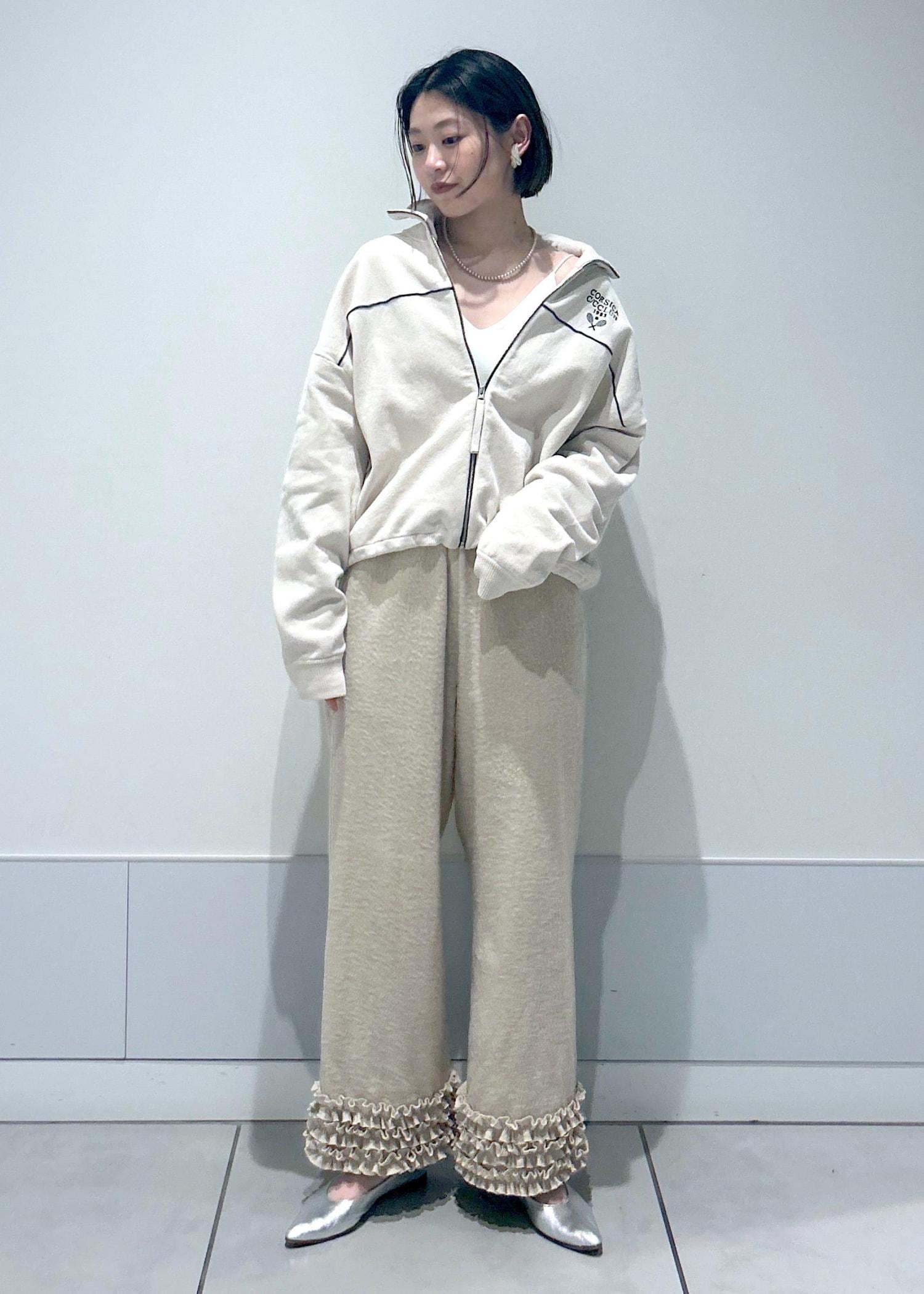 OLDMAN'S TAILORさんのFRILL DECO PANTSと合わせて、ワントーンなコーデにまとめました。
