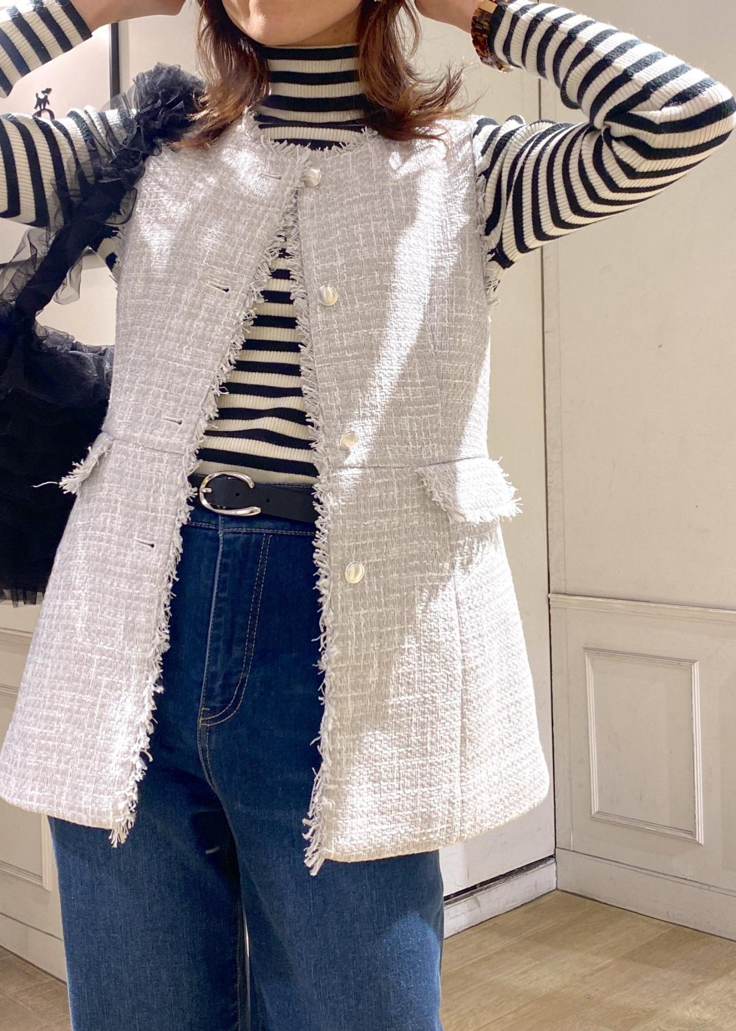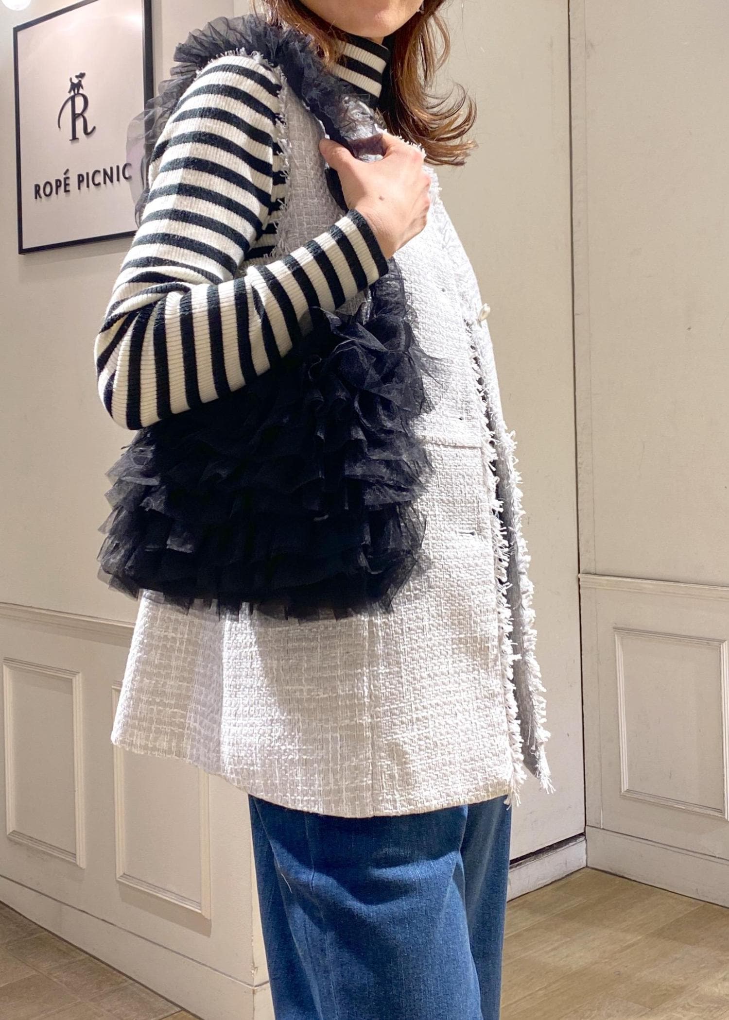 ROPÉ PICNICセレモニー・通勤対応/ツイードジレベストブラック系 / 38¥8,789レビューペプラムデザインでメリハリがありスタイルアップ効果抜群です。インナー次第で、ON/OFF幅広いスタイリングが可能です。