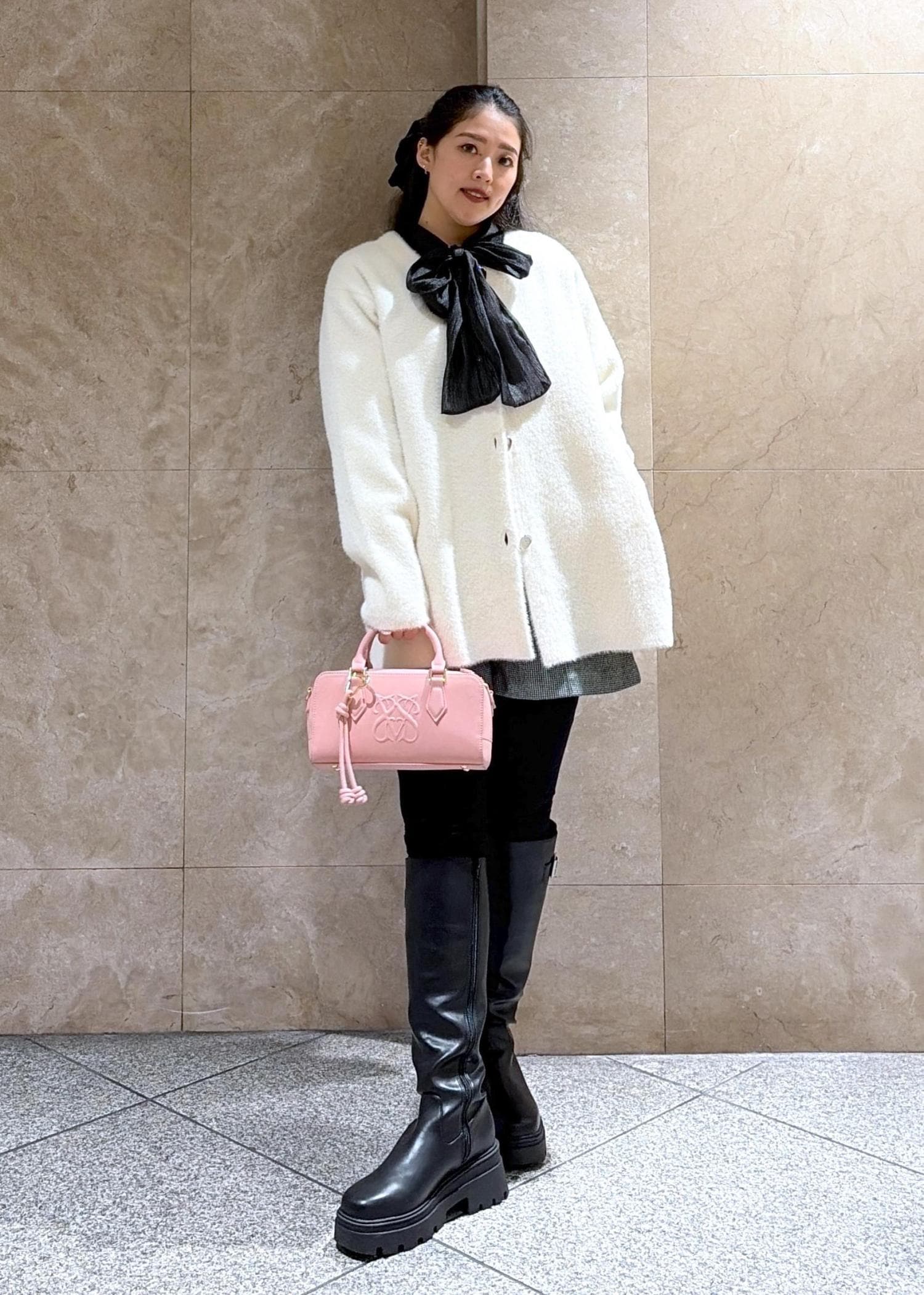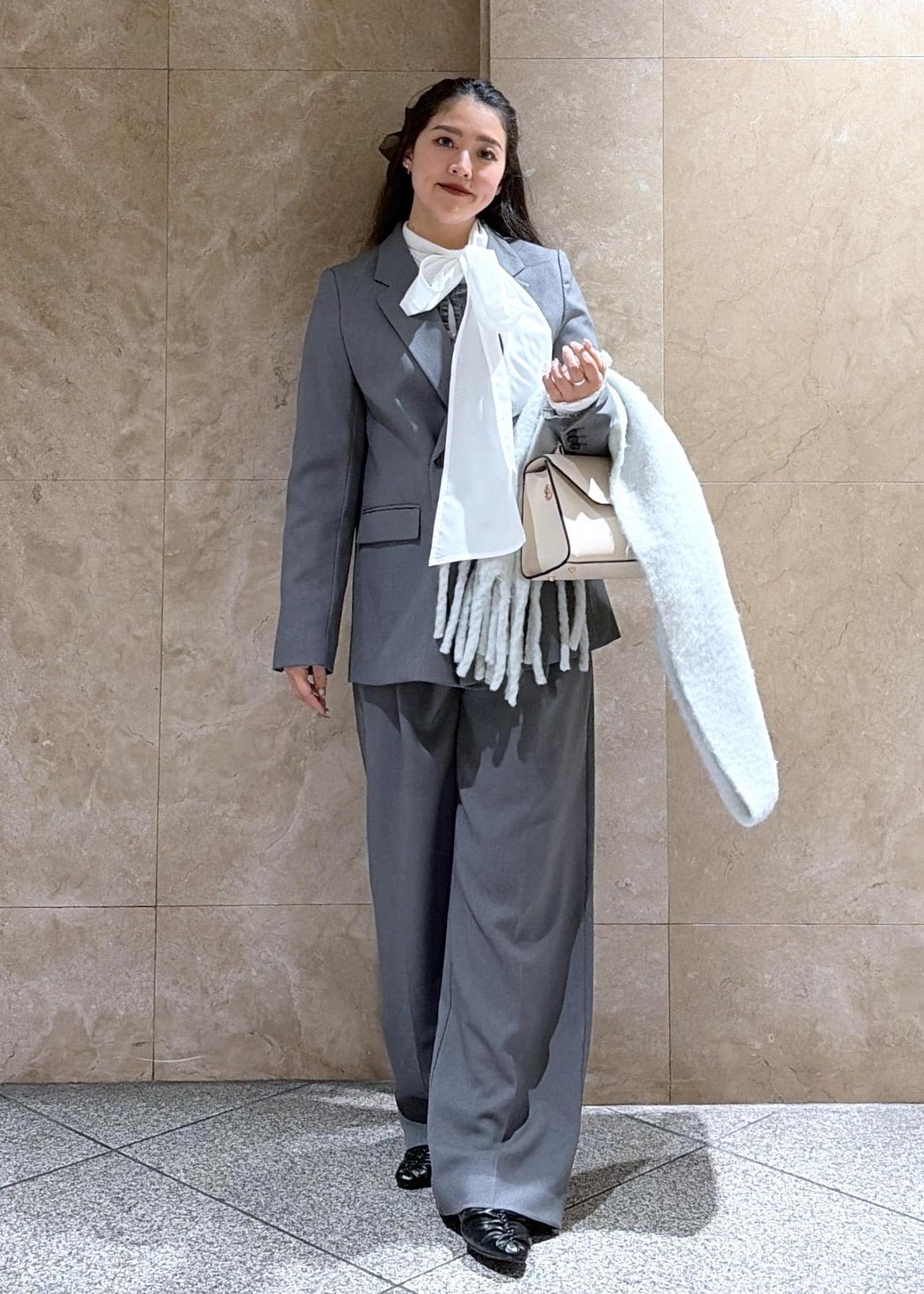 デニムも同じ素材を使用しており、上品かつカジュアルな雰囲気に仕上がっています。