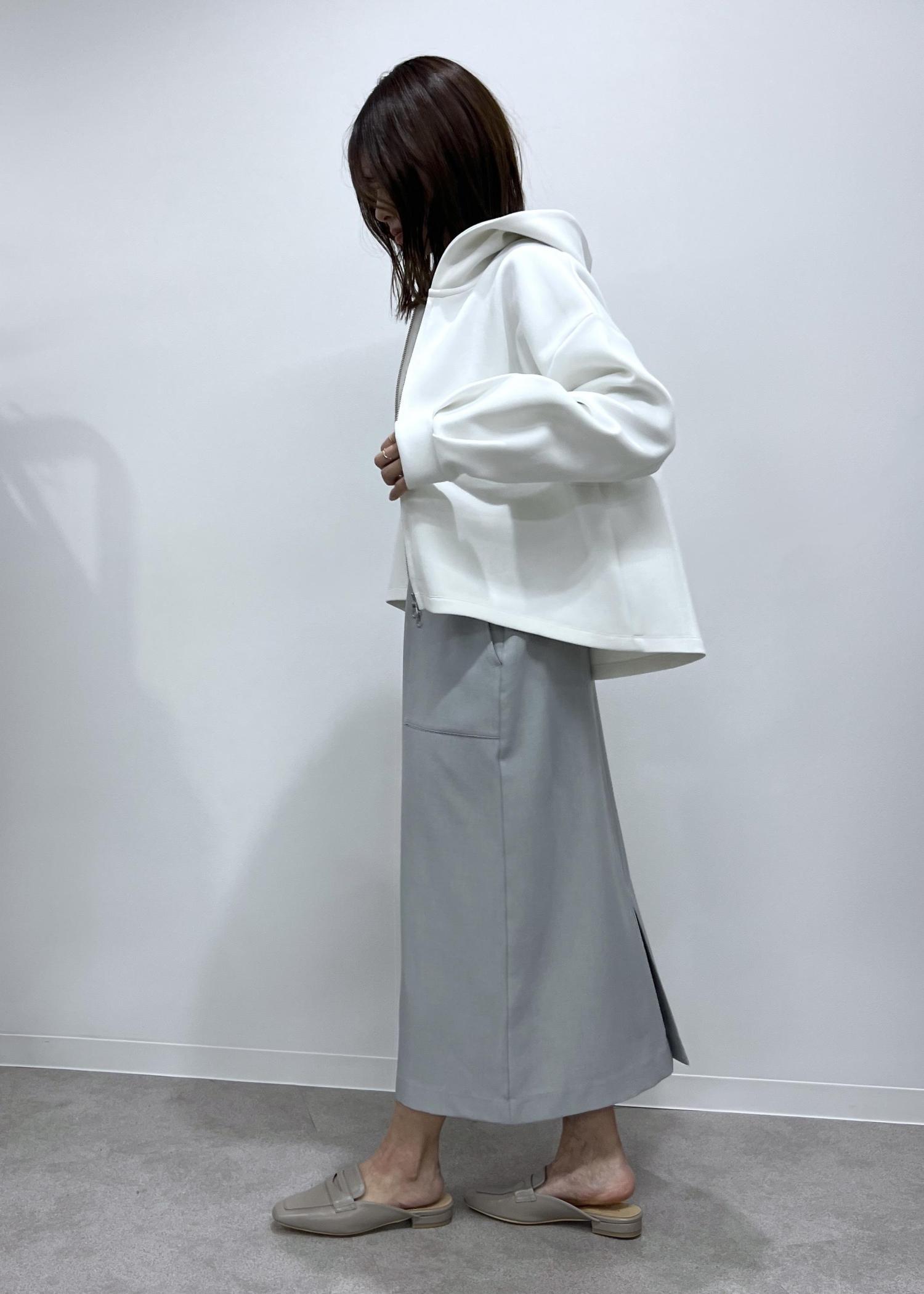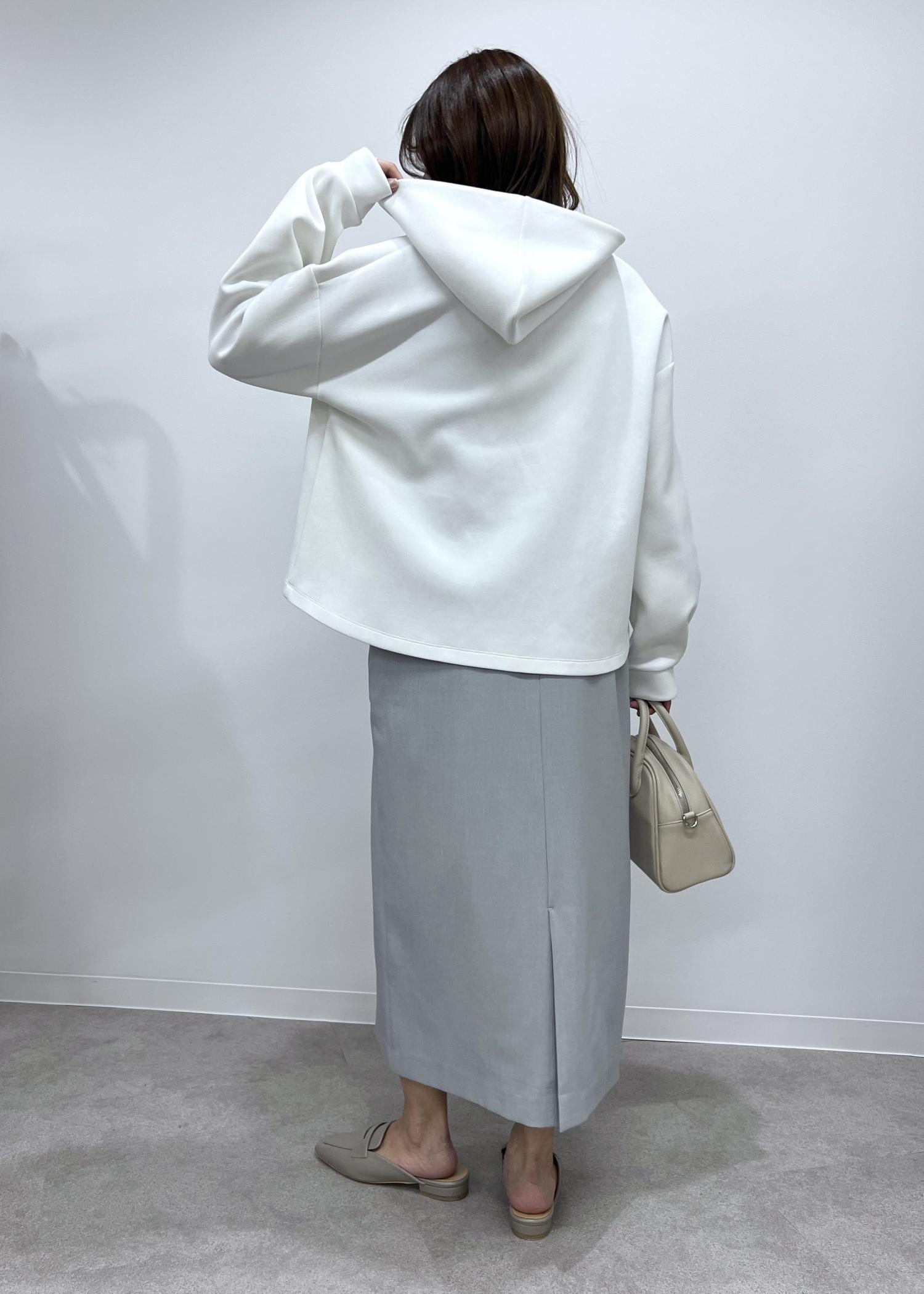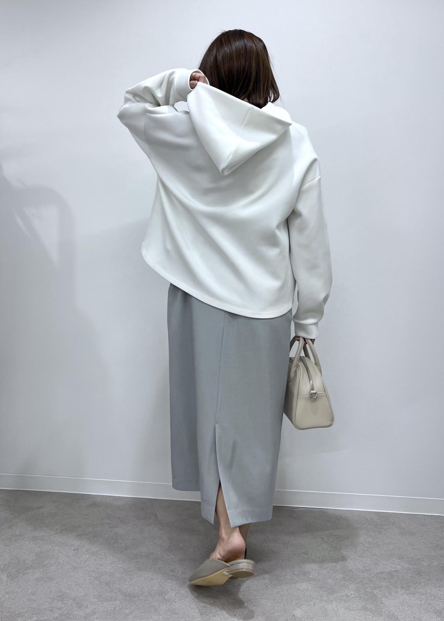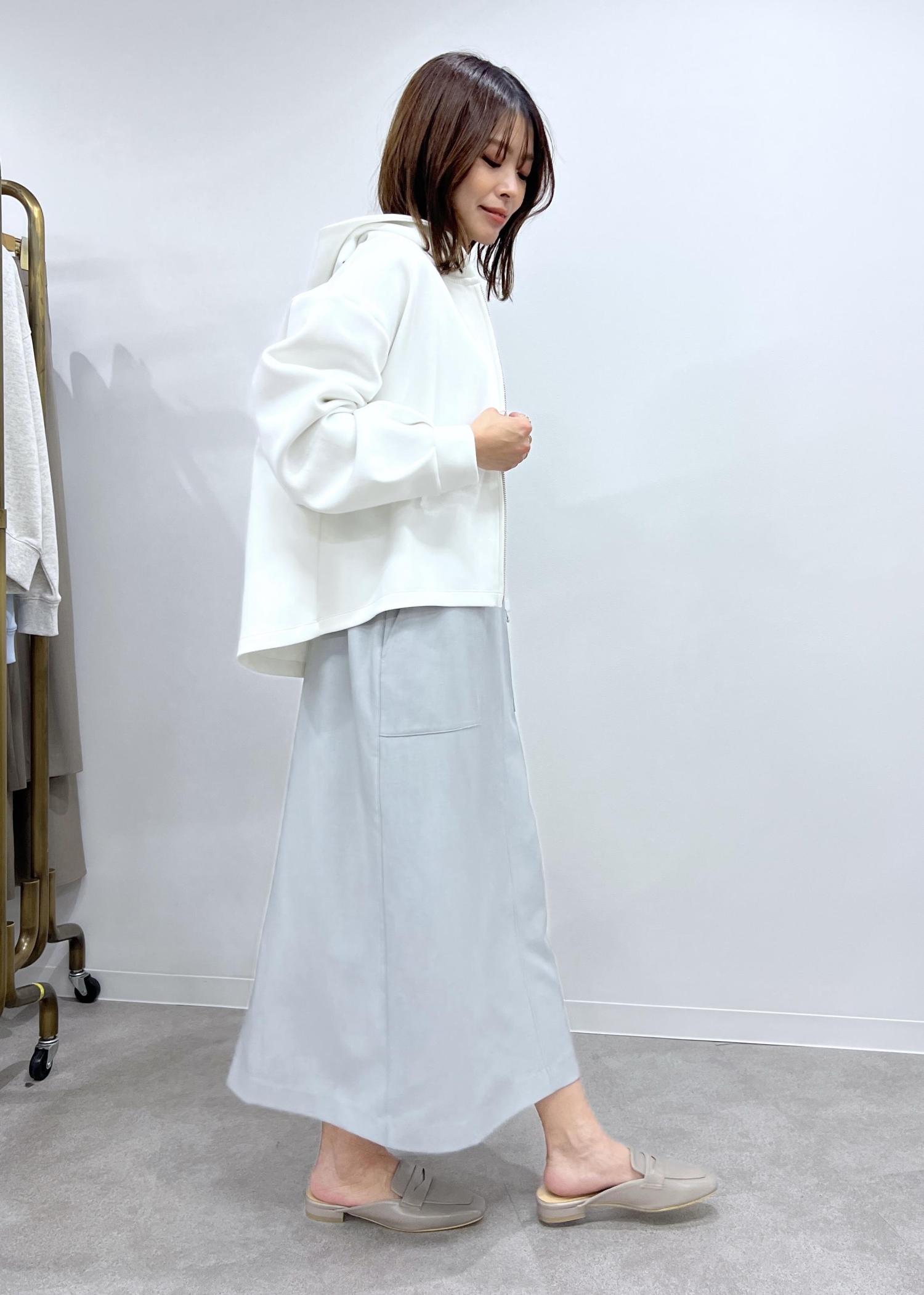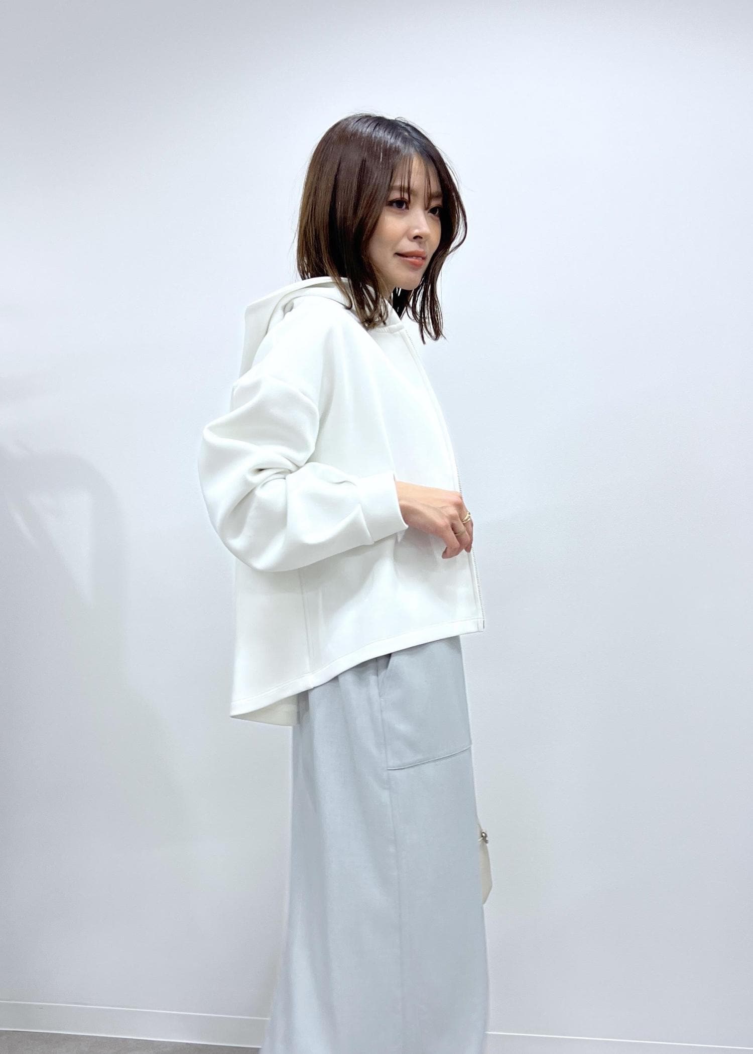 ジャストの着丈なのでボトムを選ばず着回せます。 -