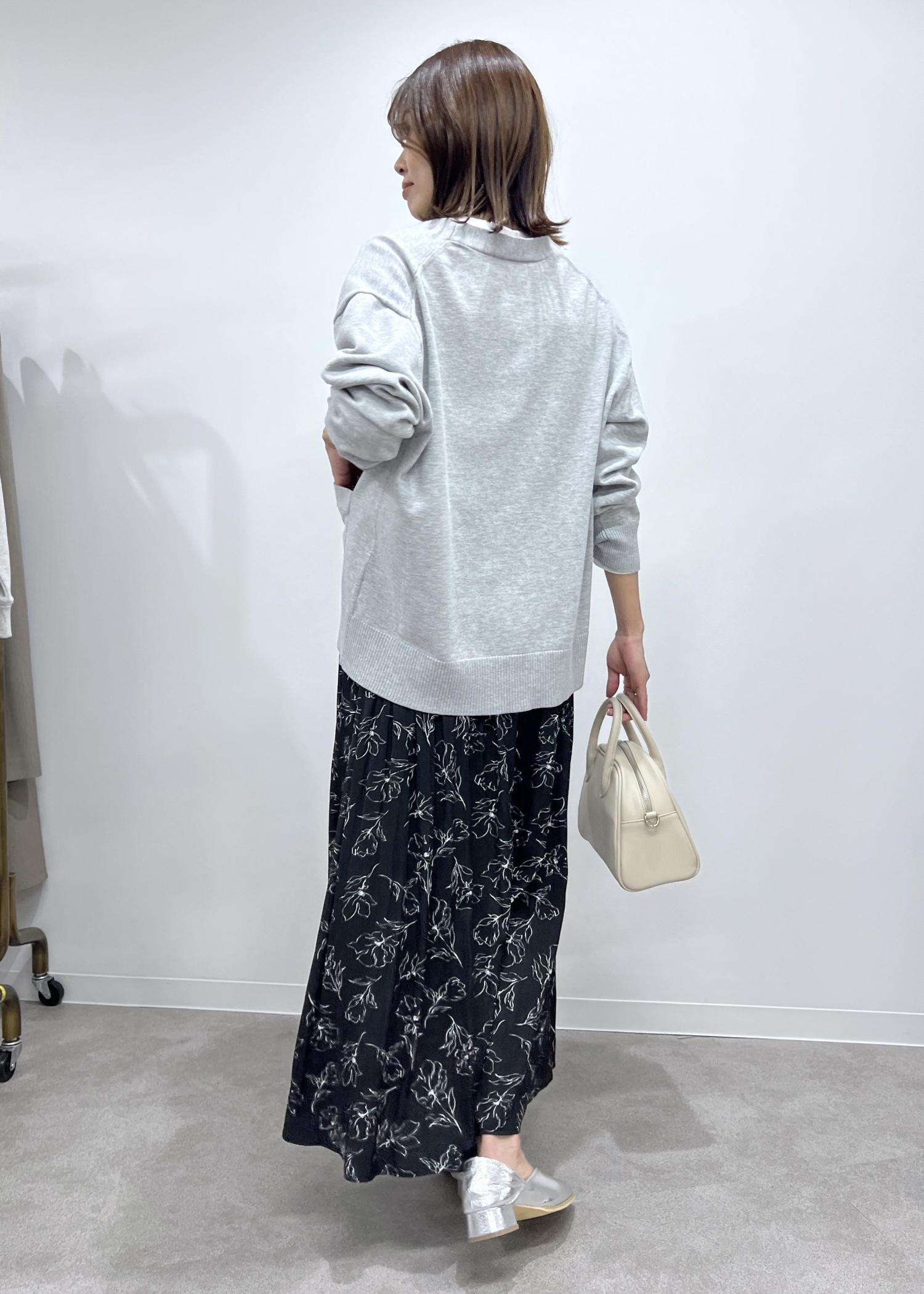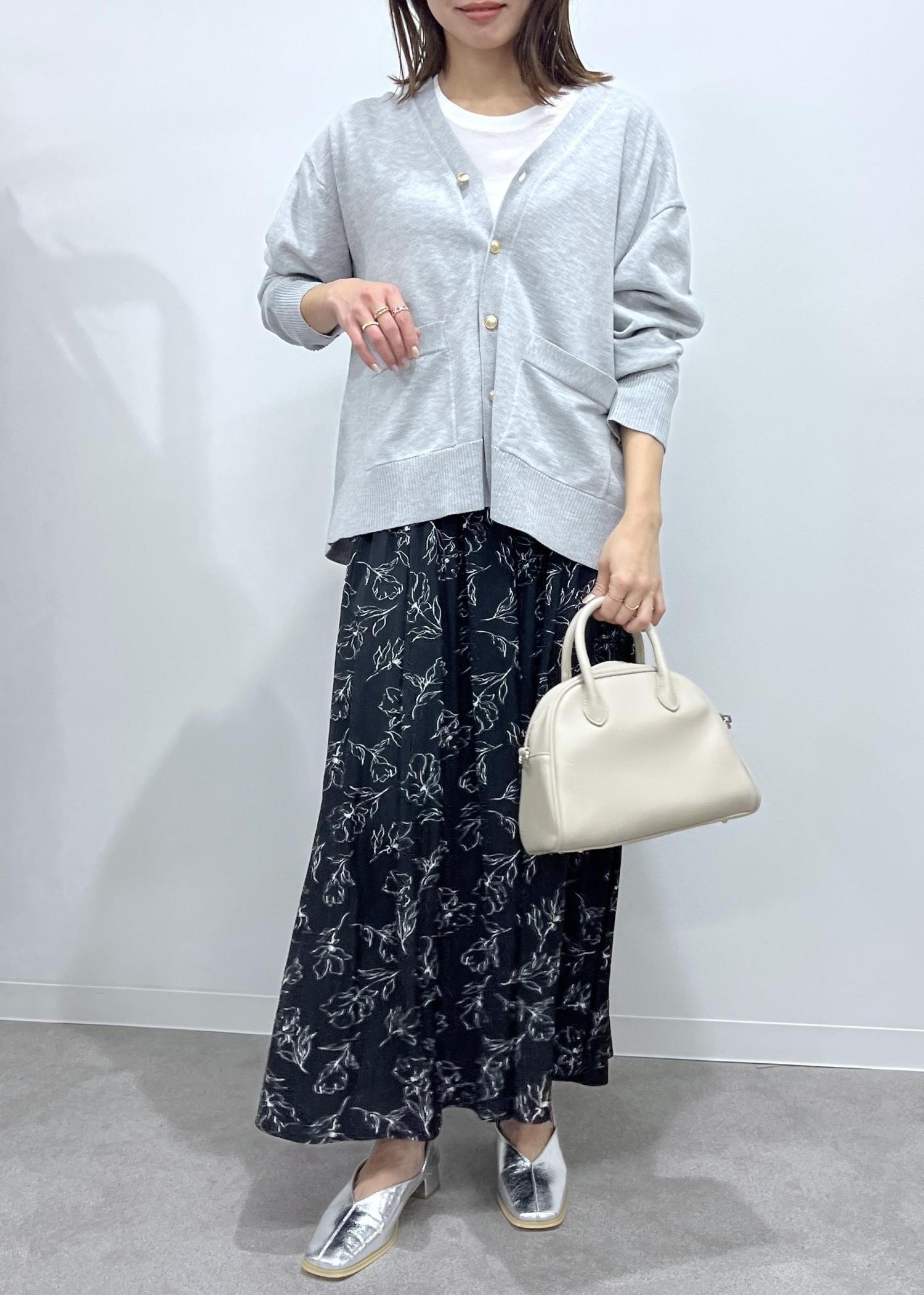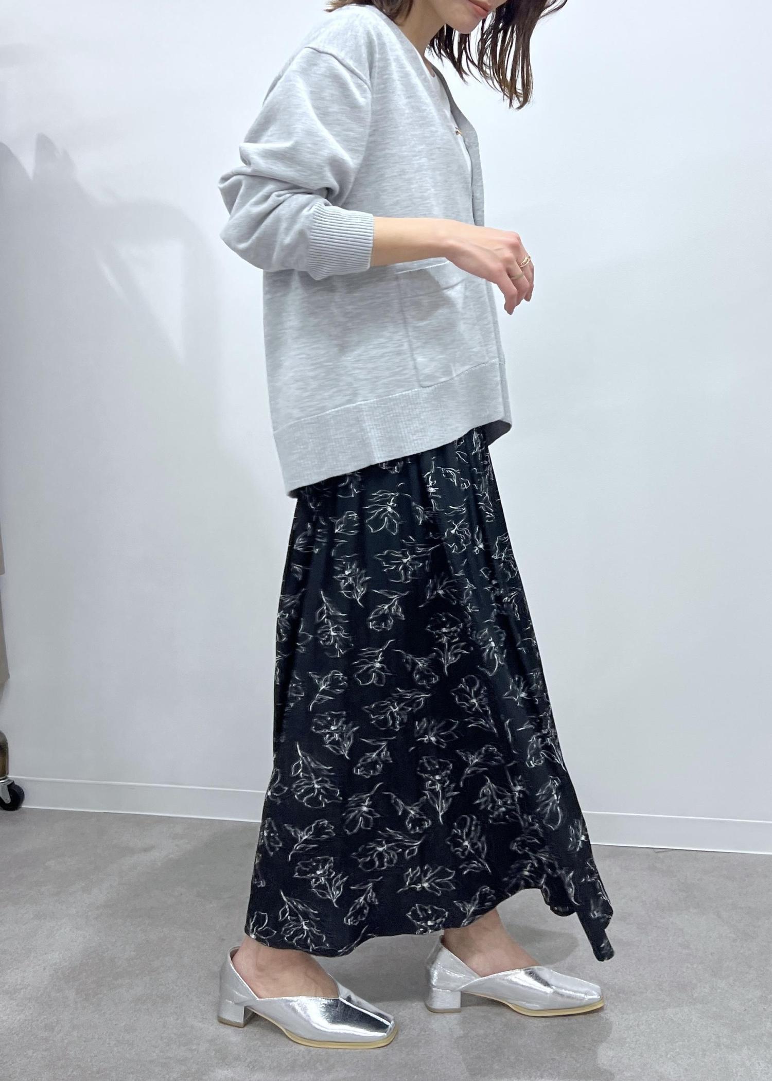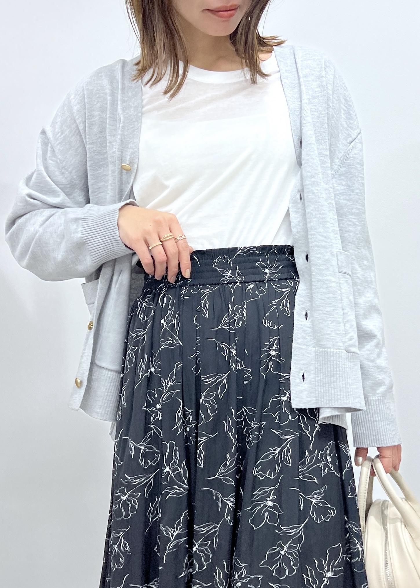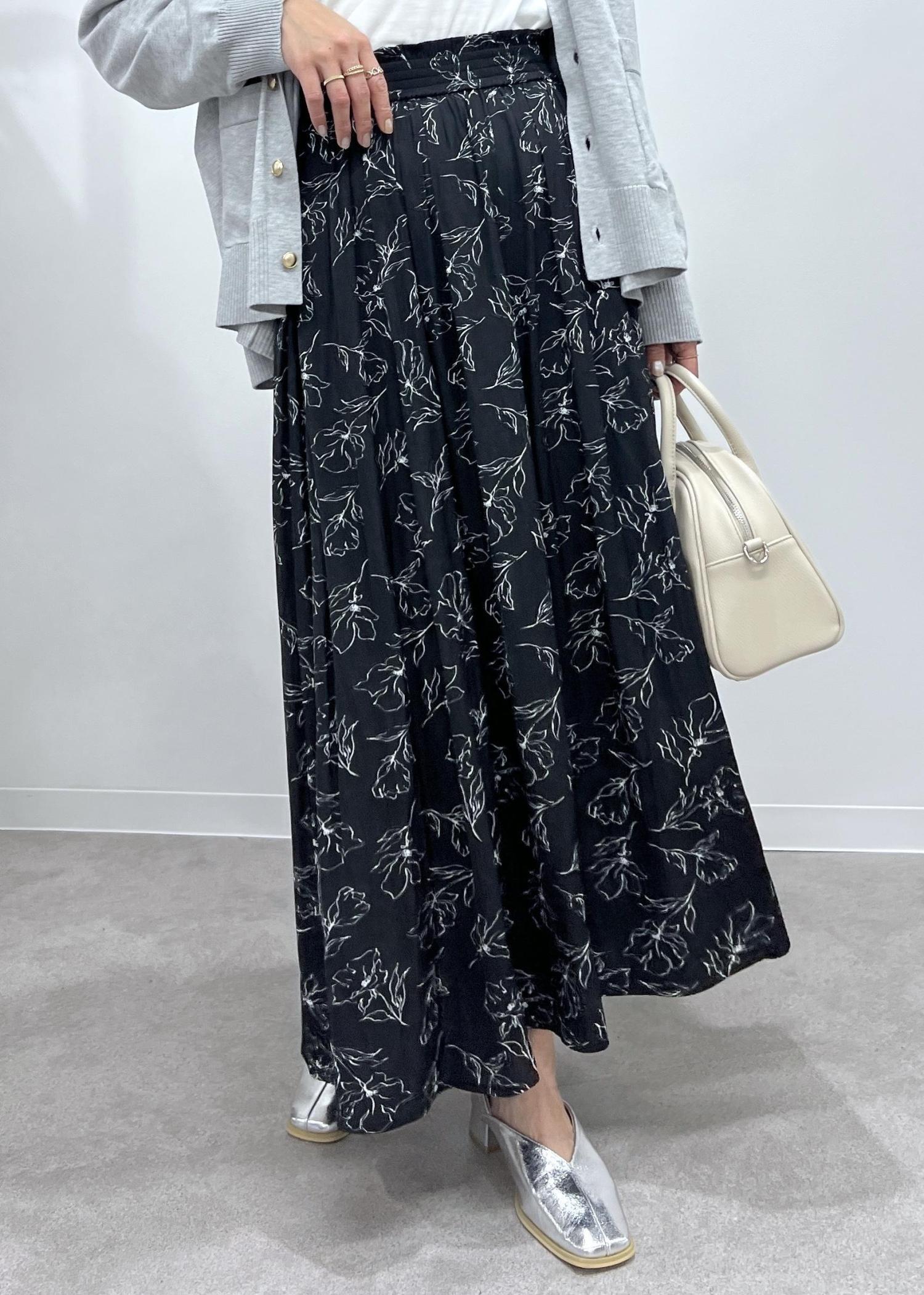 ボトムはブラックの花柄でコーデのポイントになる柄で軽やかに。
