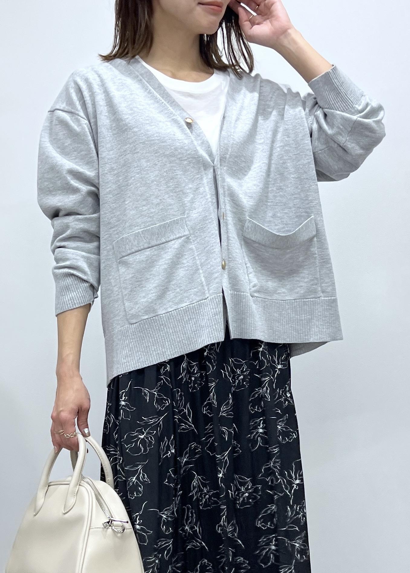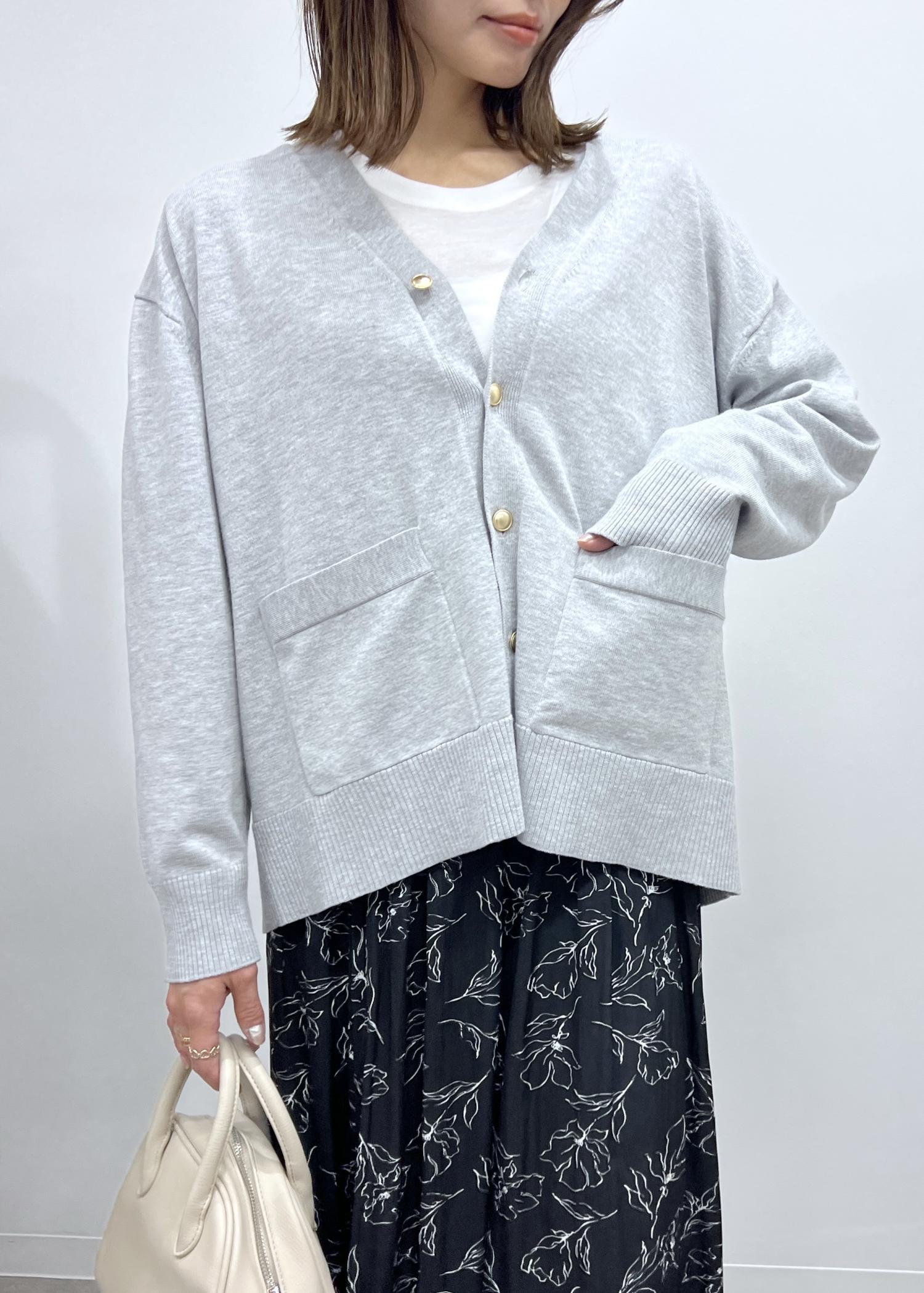 Vネックのカーディガンはシンプルなので、ボトムを選ばず着回しできるアイテム。