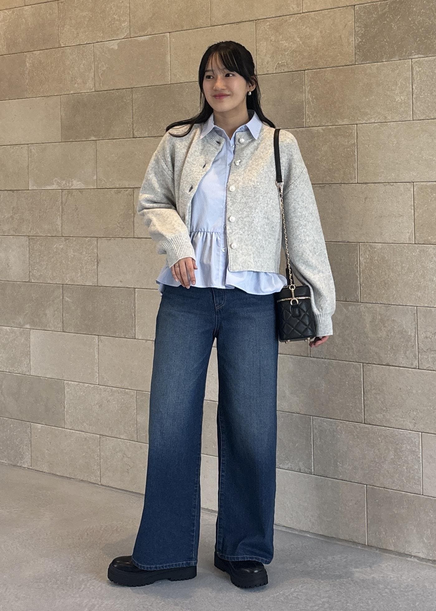 Lサイズ着用だとヒップがしっかり隠れる丈感、ゆとりがあり、ニットなどとも着やすいです◎ -
