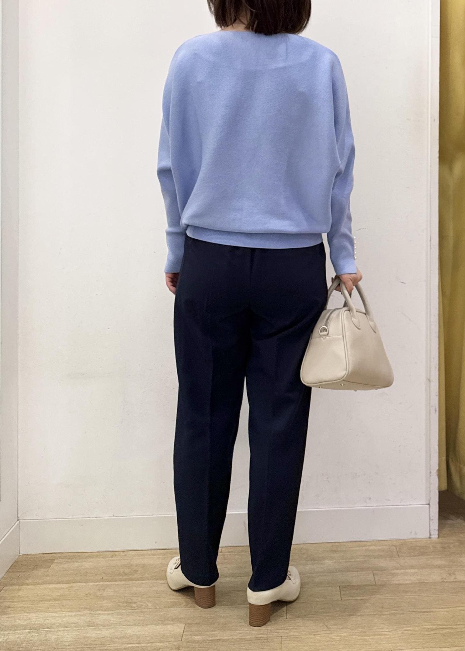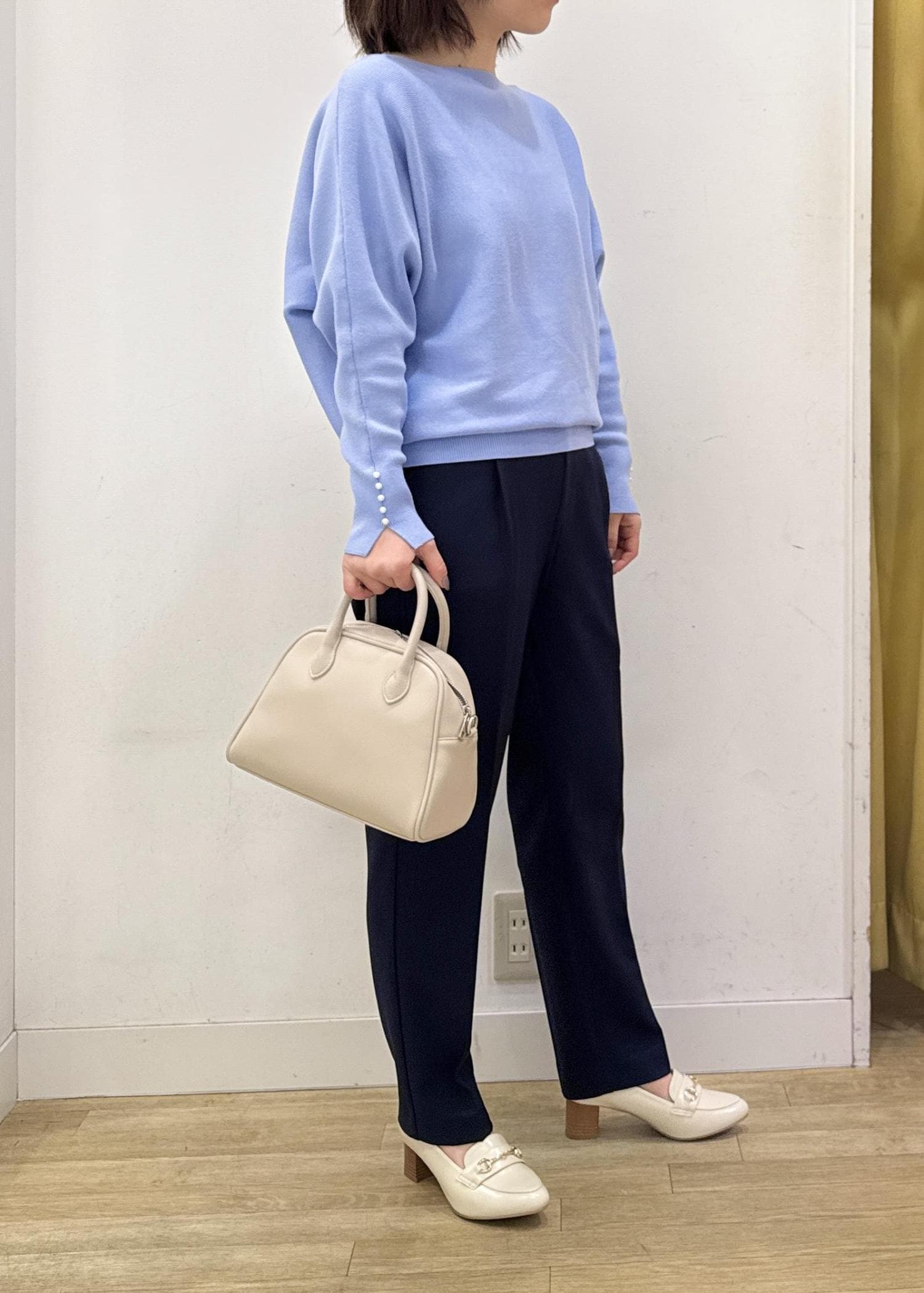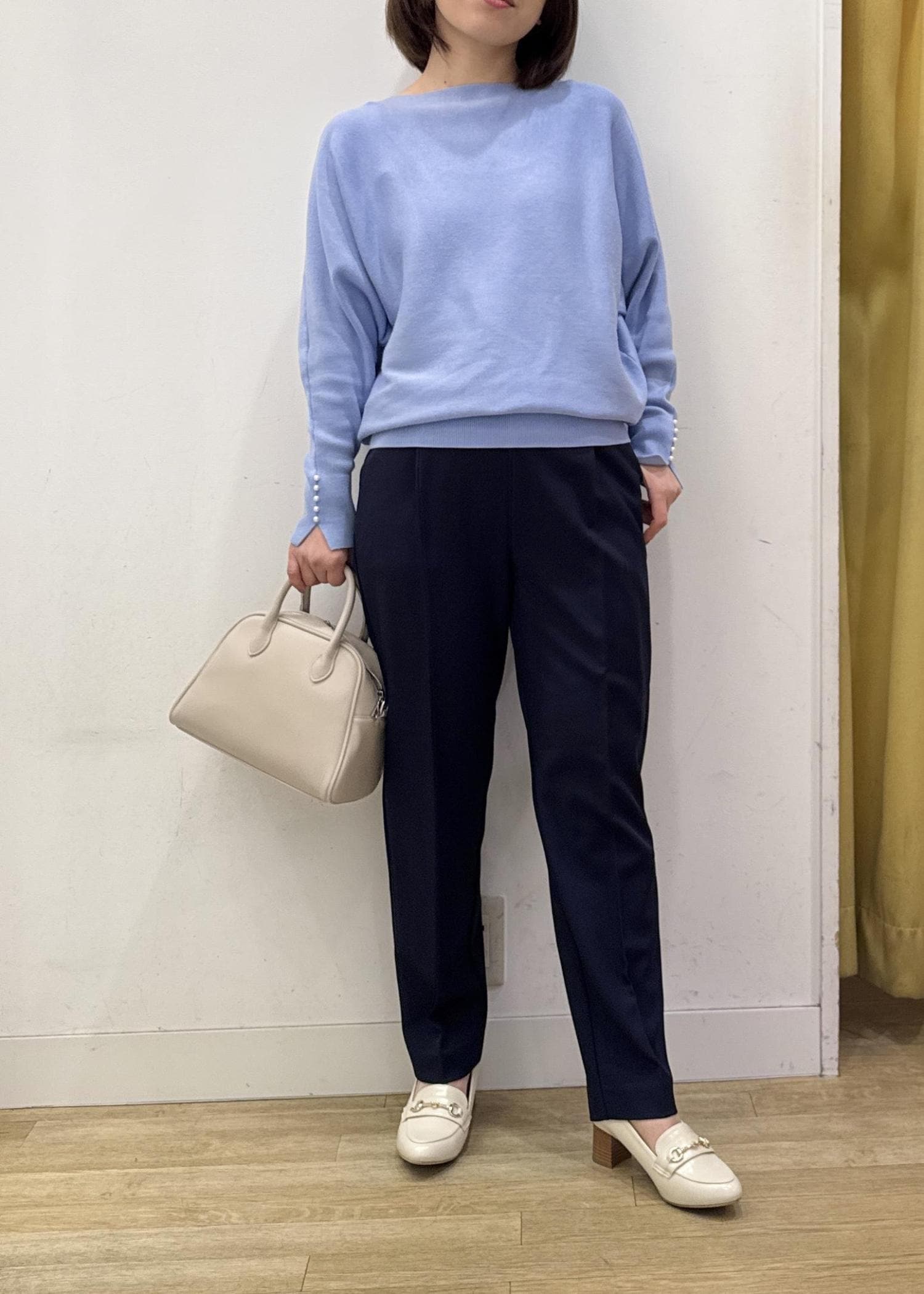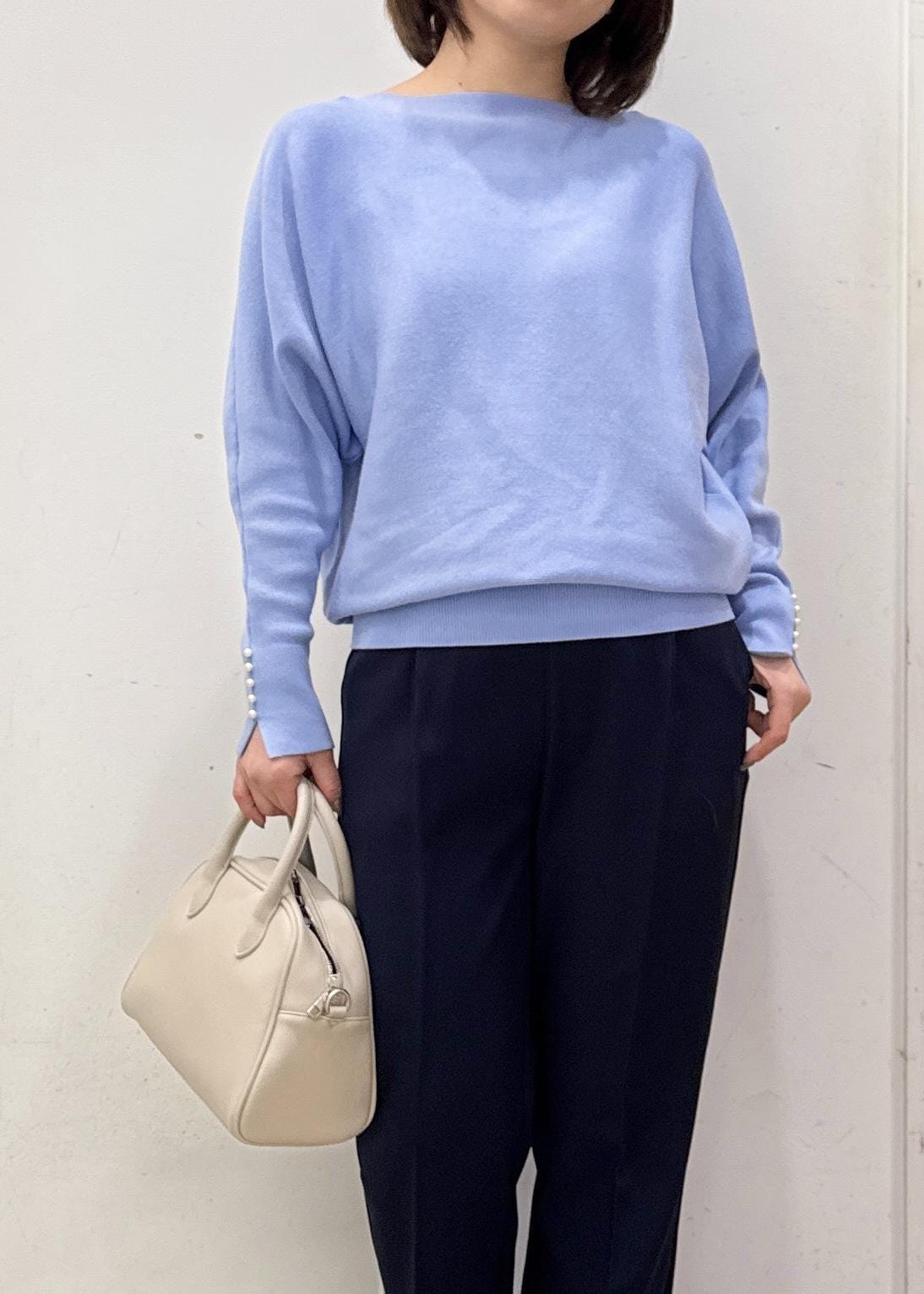 ブルーカラーに小物はアイボリーで合わせても春らしさを☺︎