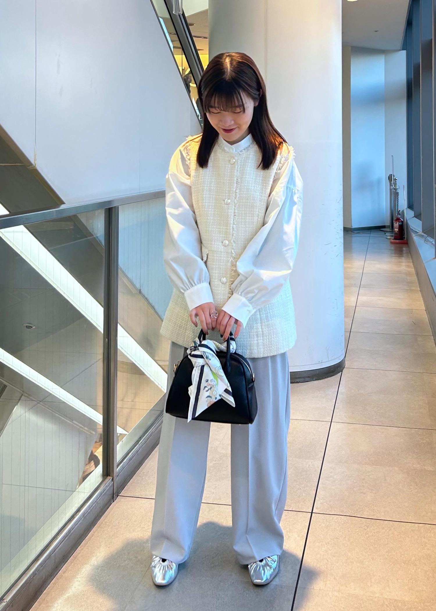 綺麗めの他にも、パンツをデニムに変えてカジュアルなコーディネートでも楽しんで頂けます◎