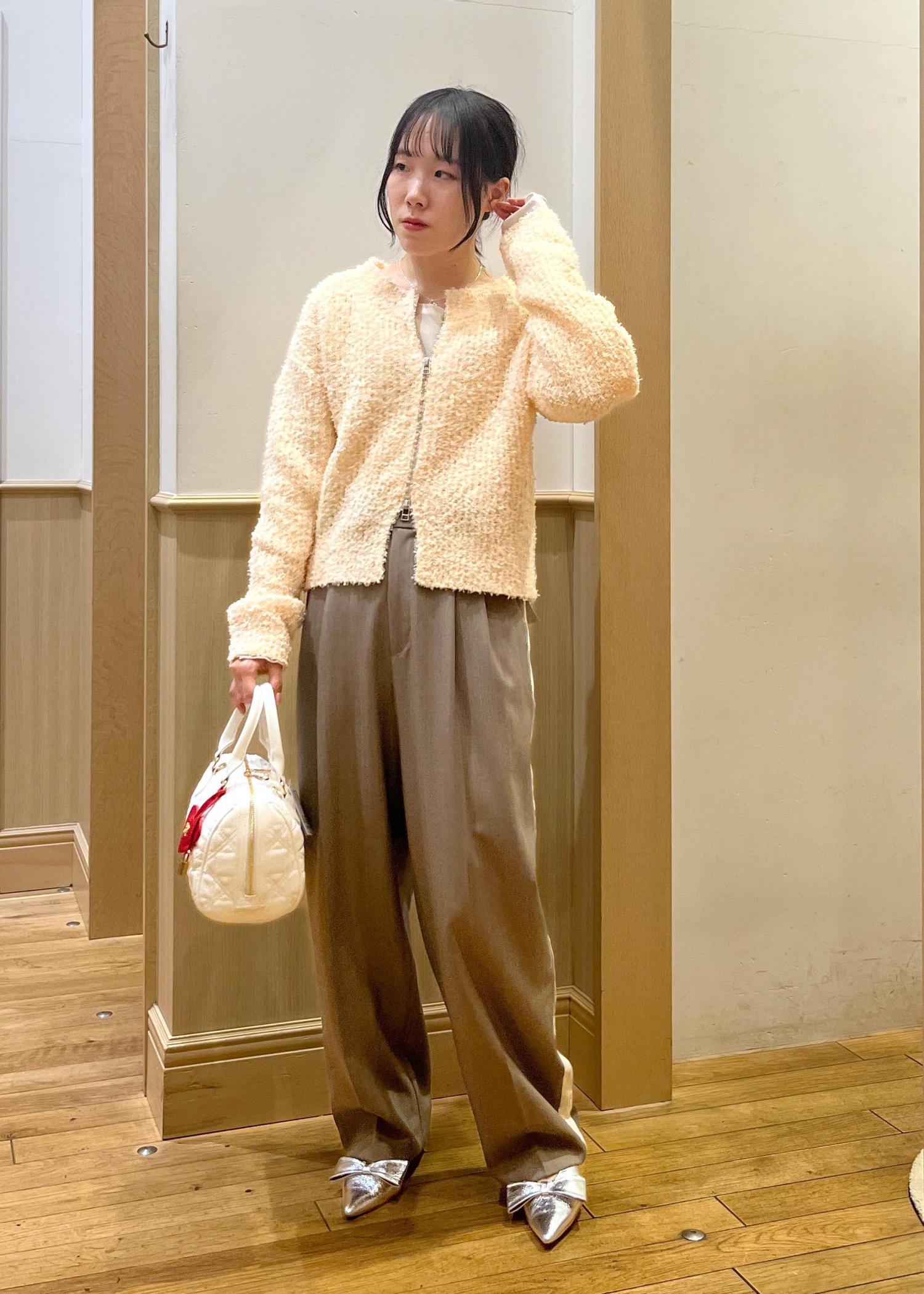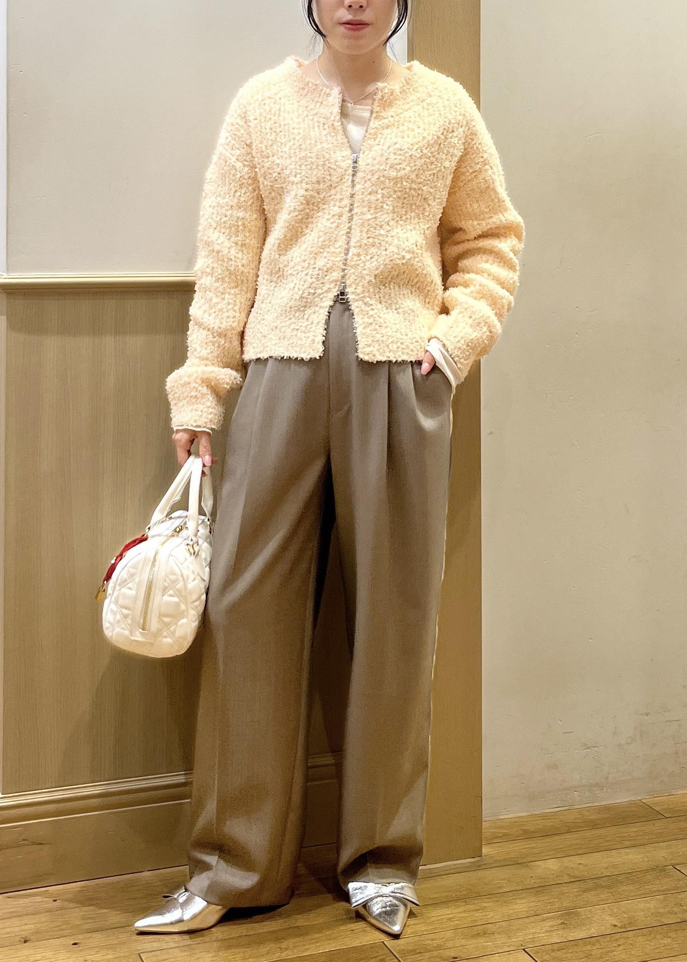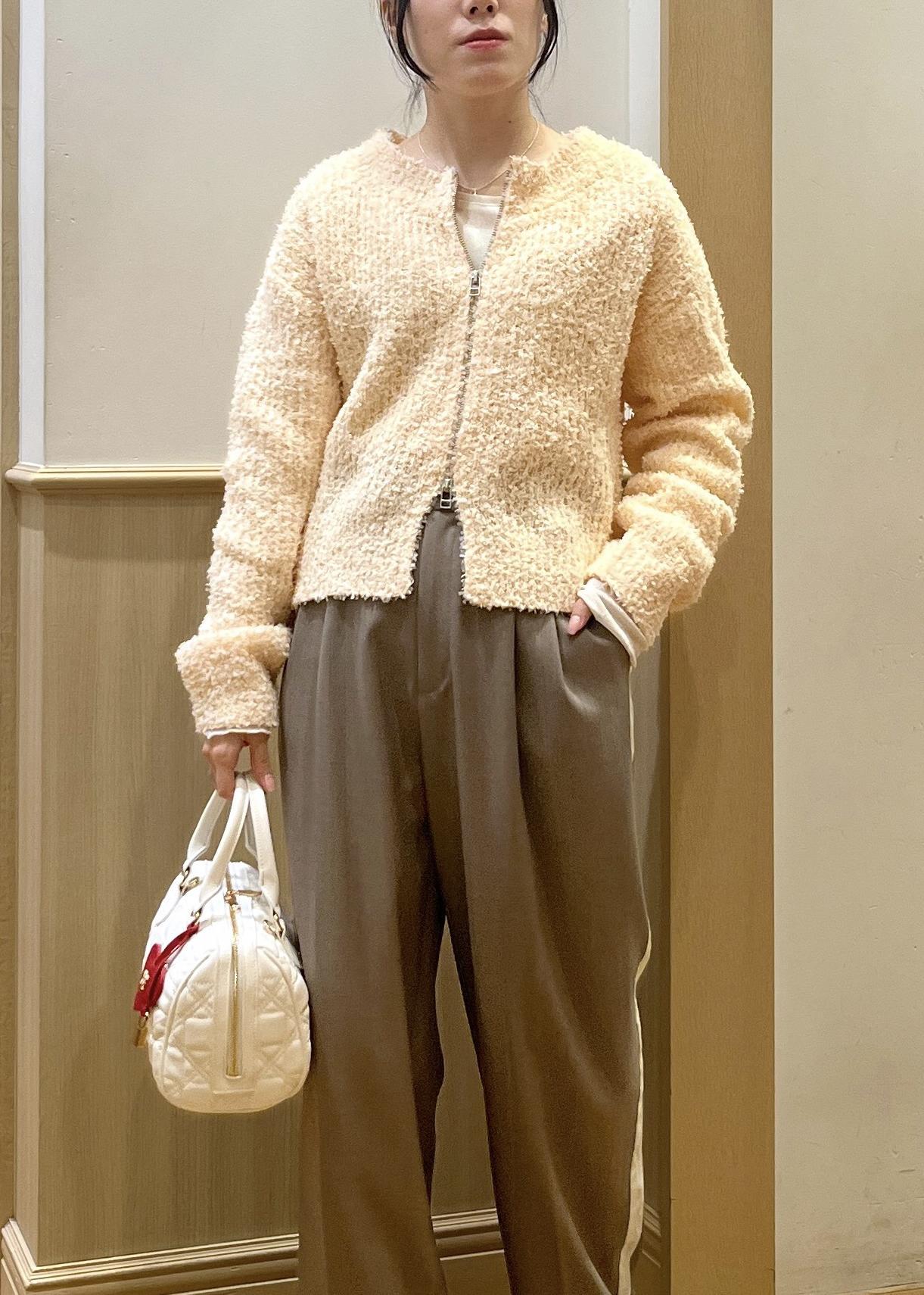 アウトレットVISリボンヤーンジップリブネックカーディガンピンク系 / F¥2,196レビュー表面感のあるリボンヤーンの素材なので、羽織るだけで動きが出て着映えします◎