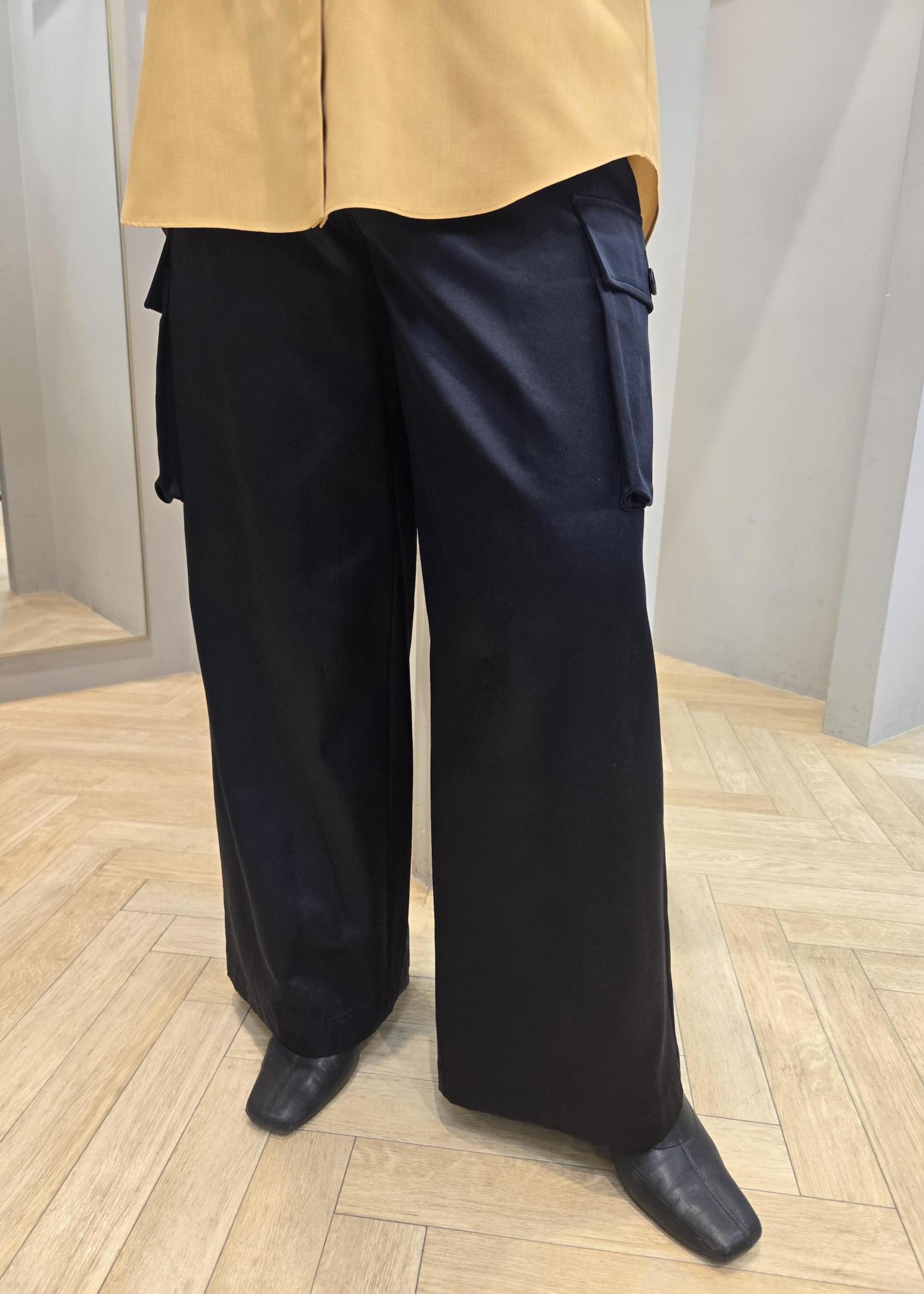 カジュアルなスタイリングでもきれい目なスタイリングでも会わせられるカーゴパンツで、長さがしっかりとあるので足も長く見えウエストゴムなので楽にはけます。