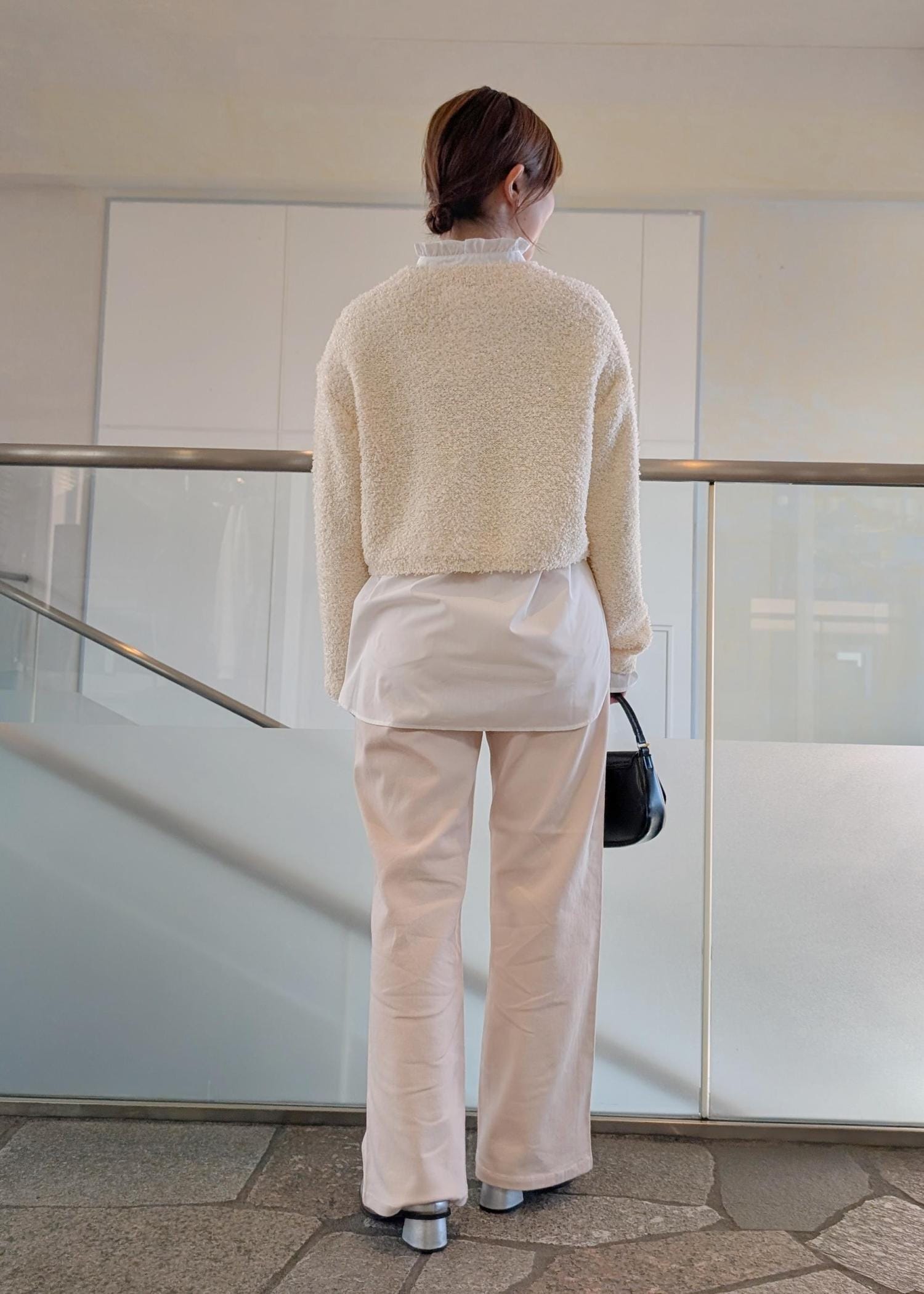 トレンドのショート丈でレイヤードコーデも楽しめます。