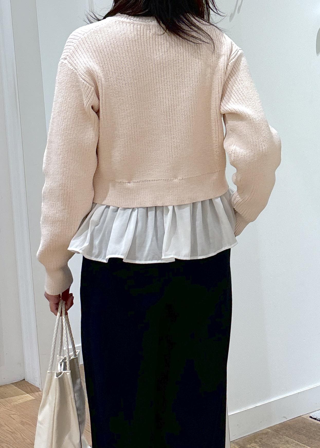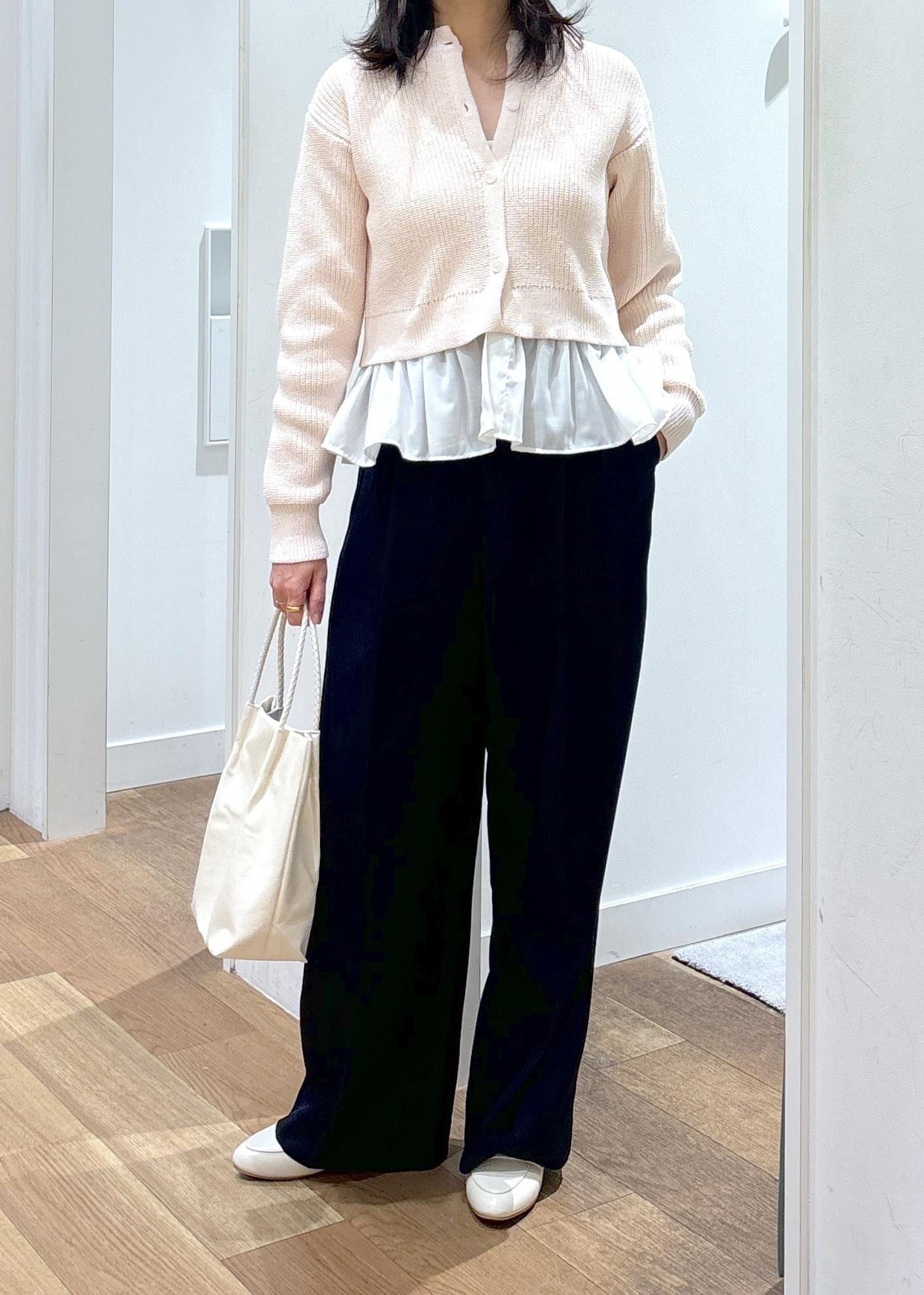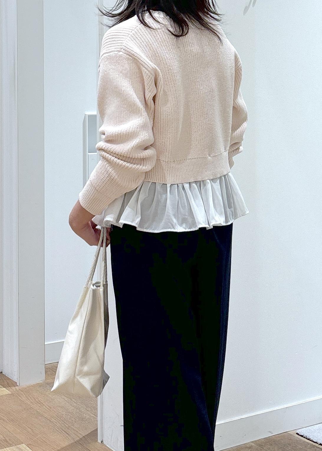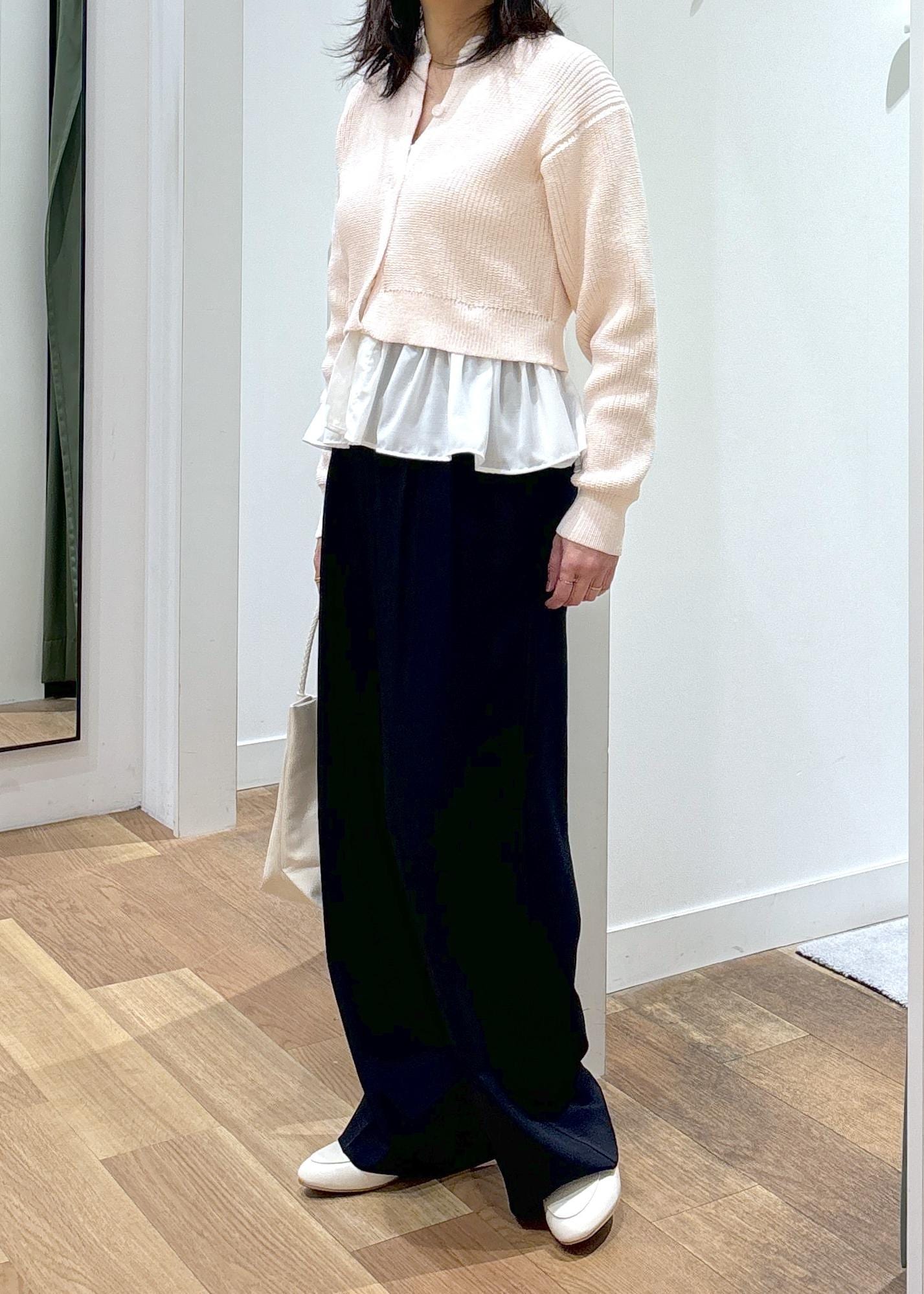 カーディガンの形がゆるっとリラックス感のあるフォルムな為、甘くなりすぎずに着て頂けます。 -
