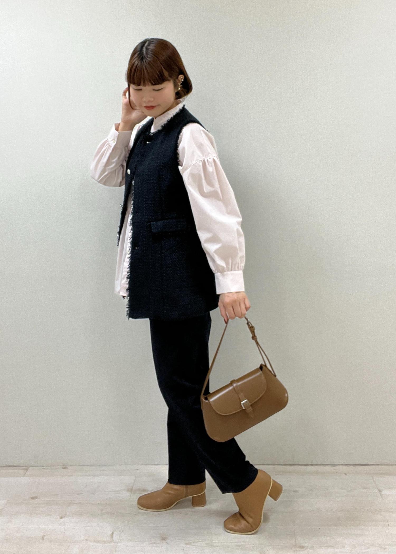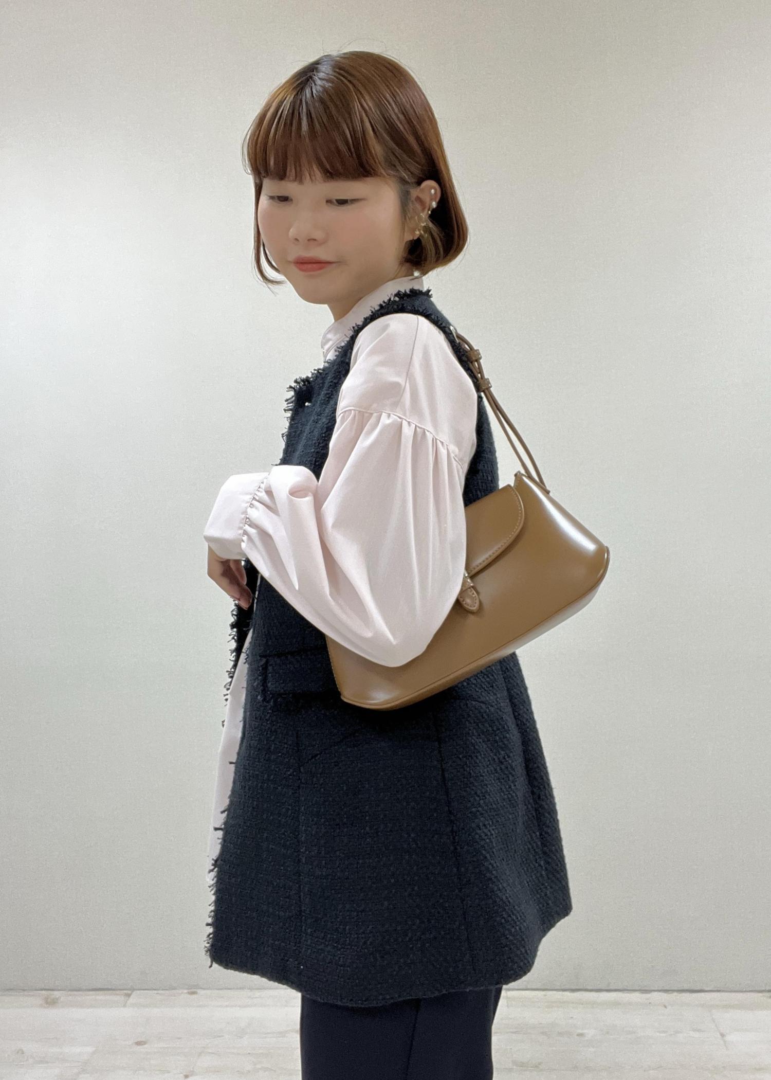 ブラウスはピンクを合わせて柔らかさをプラス◎