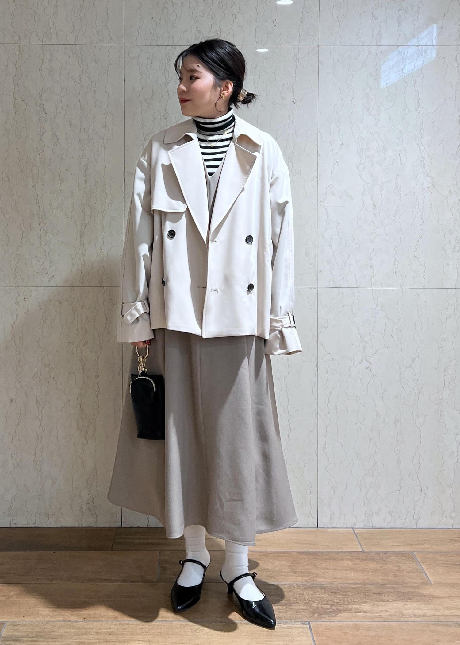 【YOKUMOKUコラボアイテム】トレンチコート×ジャンスカで春のきれいめカジュアルコーデ