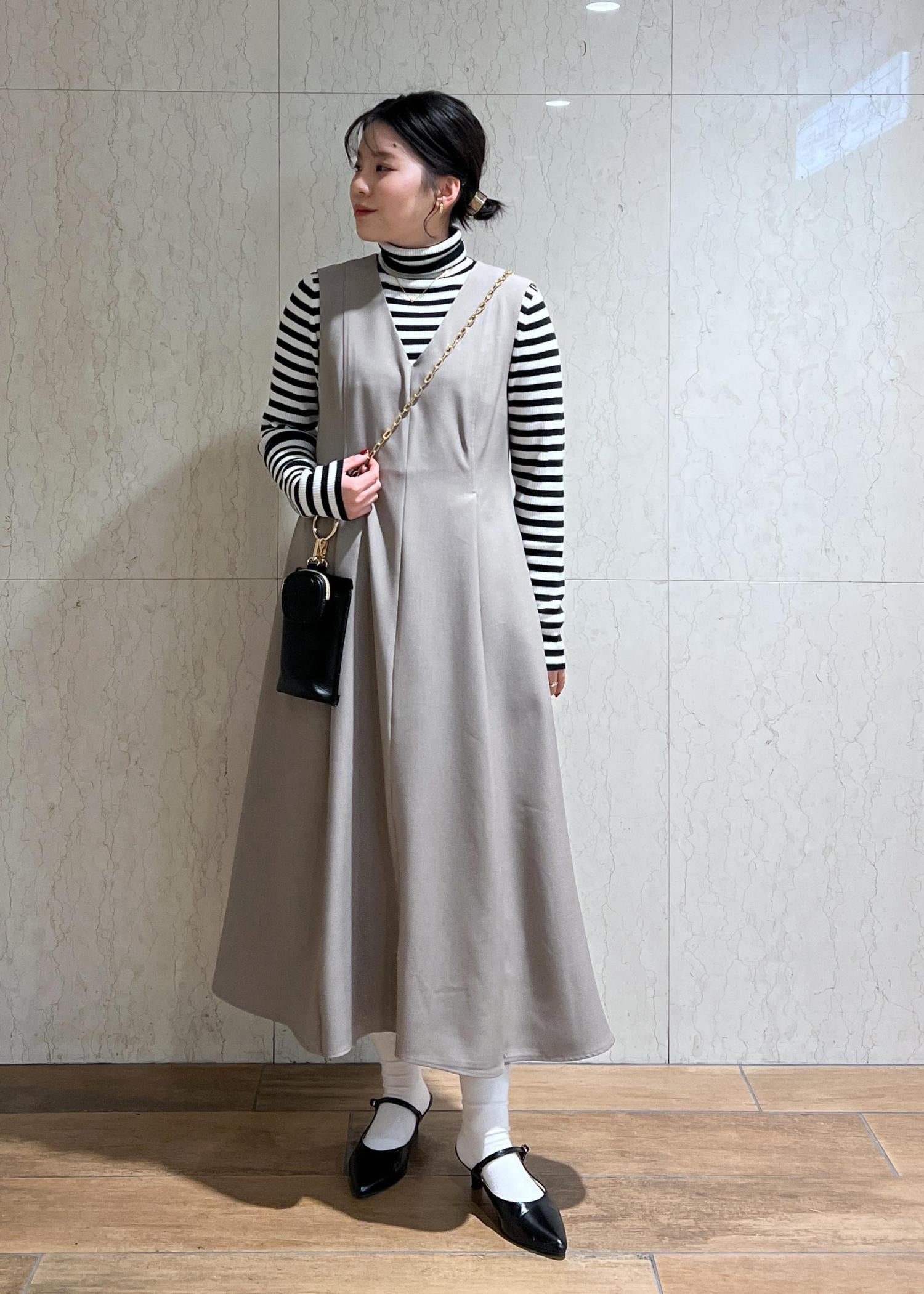 おすすめコーデ:コンパクトなニットなので、ジャンパースカートやカーディガン、クルーネックやvネックのトップスのインナー使いにもオススメです◎ -