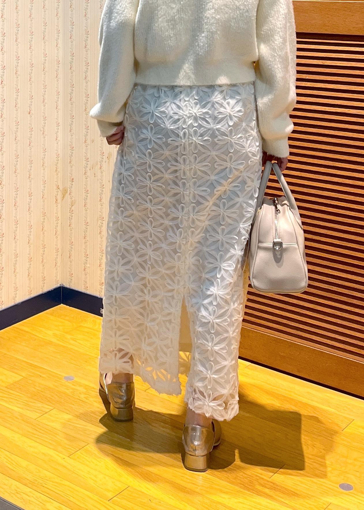 アウトレットROPÉ PICNICフラワーチュールレースアイラインスカートオフホワイト / 36¥3,993レビューくるぶしが見えるくらいの丈感ですが、後ろにスリットが入っているので動きやすいです。