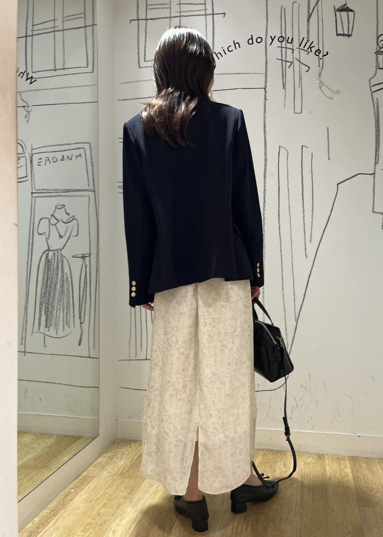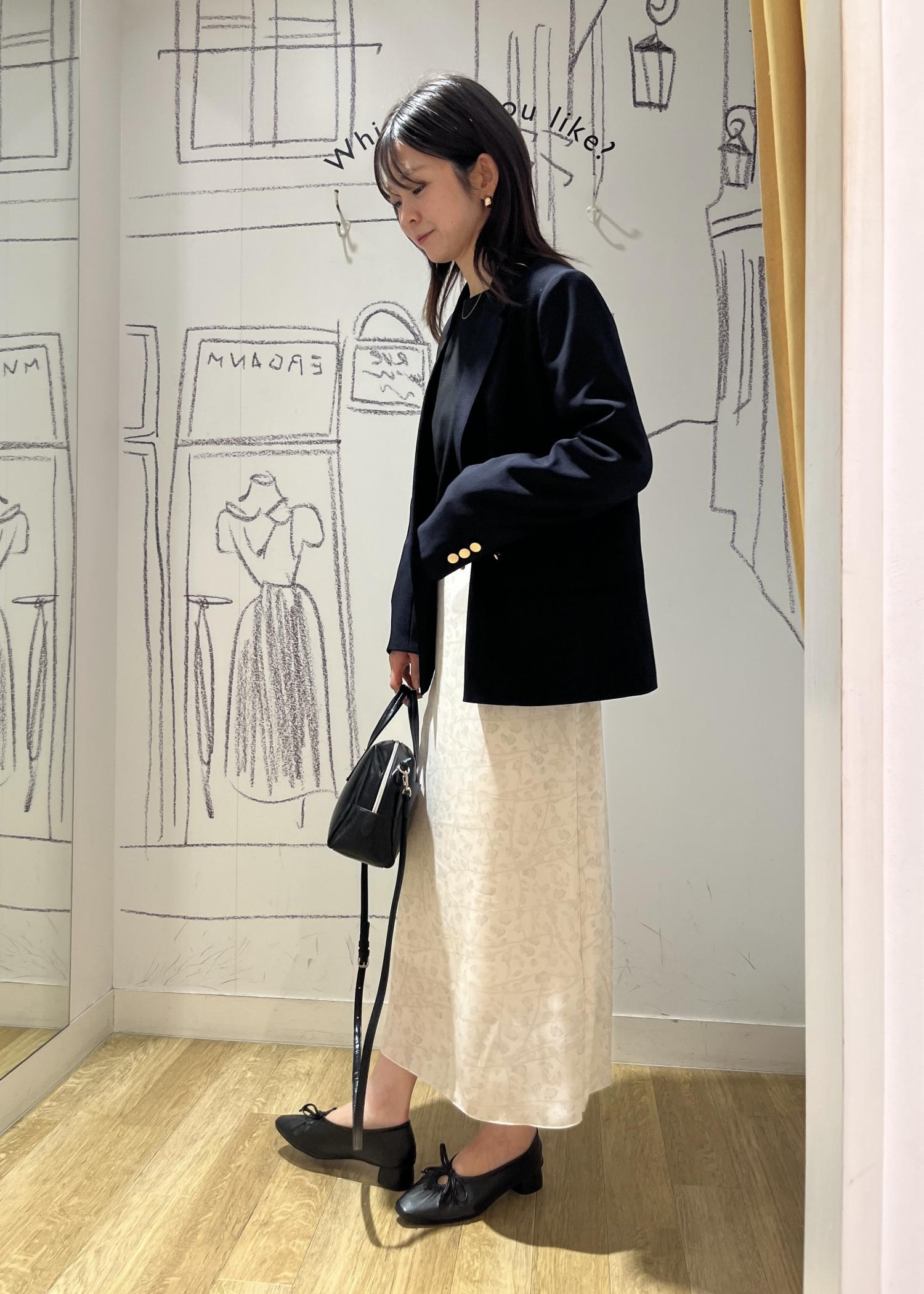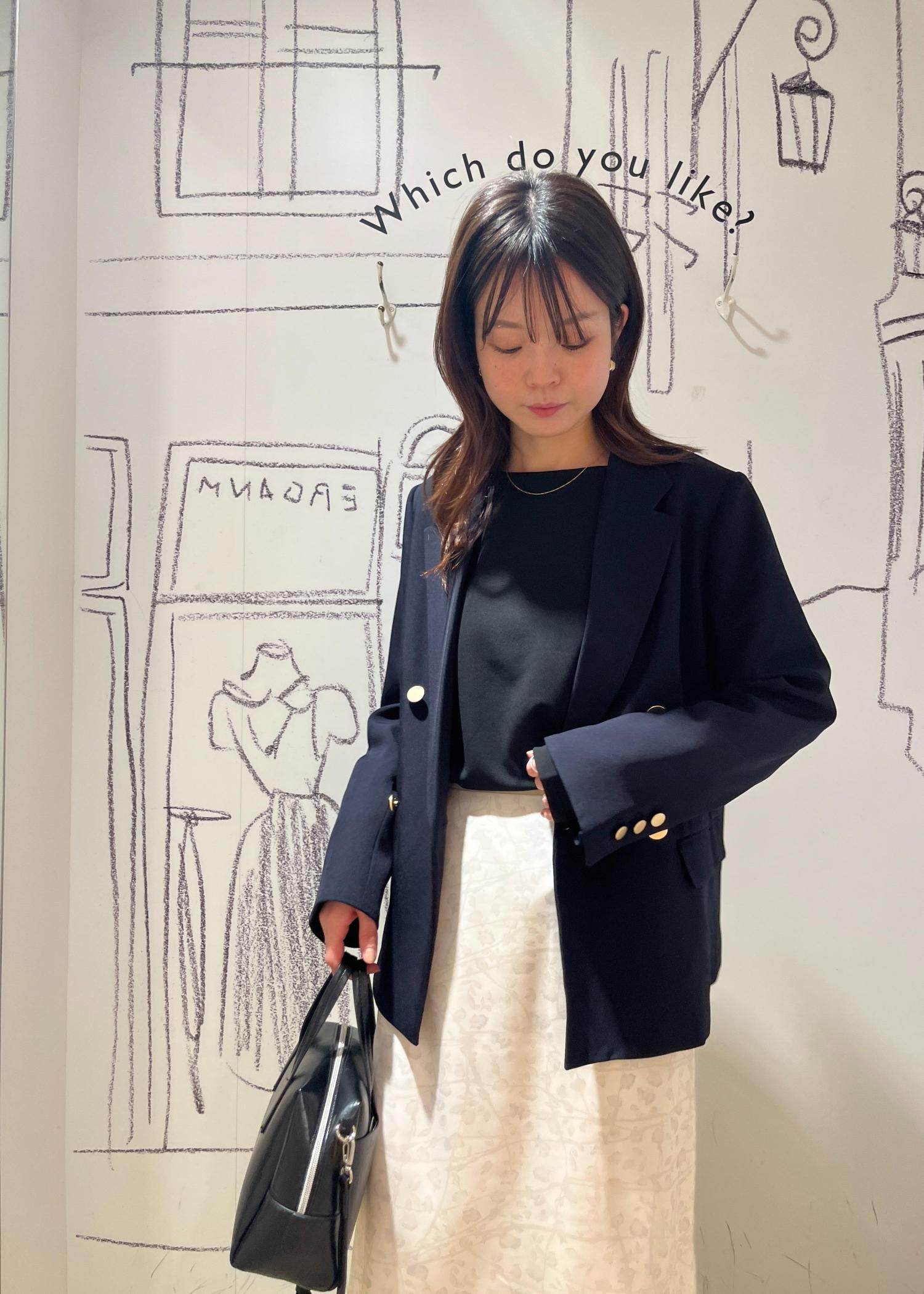 万能な金ボタンジャケットで、綺麗めなスタイリングにいたしました。