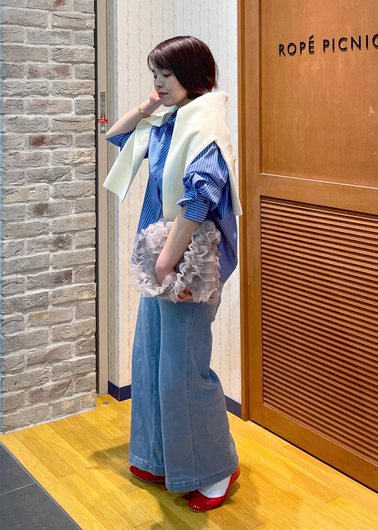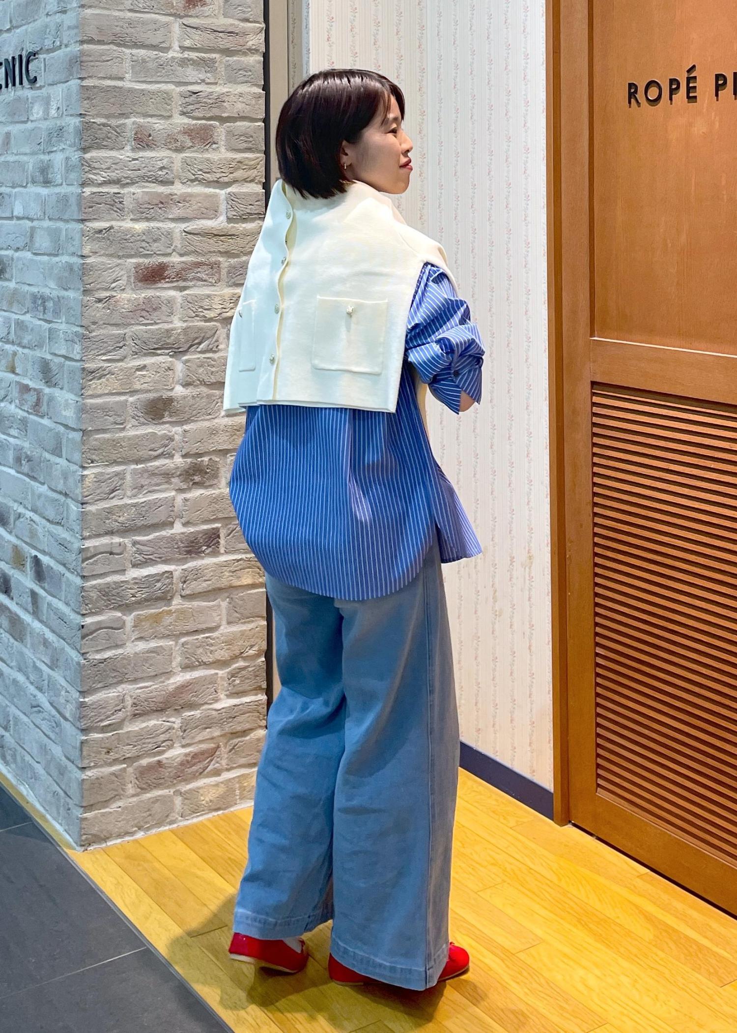 ROPÉ PICNIC【ウエスト革命デニム】ウエストシェイプデニムワイドパンツサックス / 38¥4,543レビューデニム特有の硬さがあまり無く、柔らかな生地感です。ハイウエストのデニムで、ウエストは薄手のカットソーやブラウスをインできるくらいの余裕がありました。着丈は159cmでフラットシューズでギリギリ擦らない長さです。