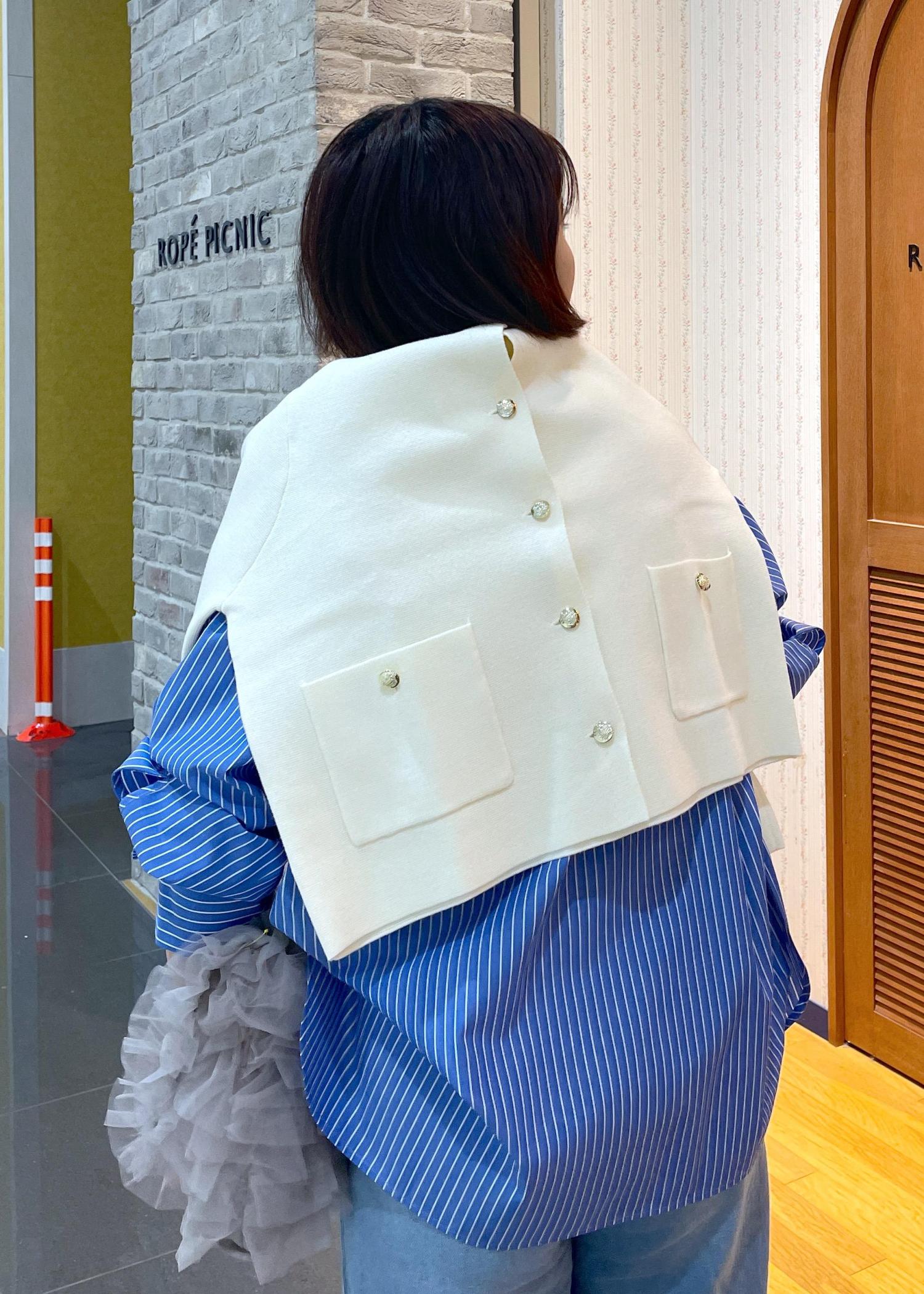 シャツとデニムだけではシンプルに感じたので、白のカーディガンを肩掛けしてポイント使いに◎