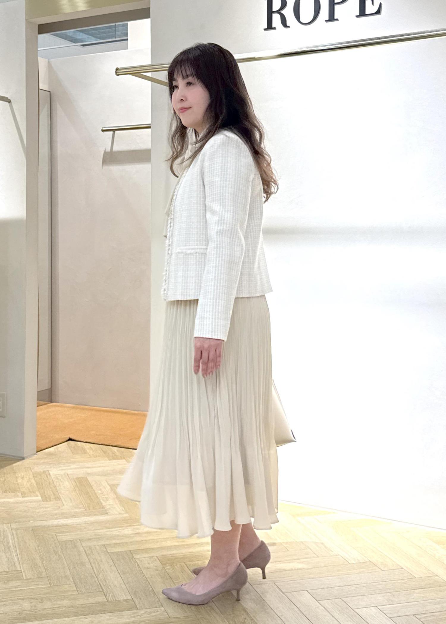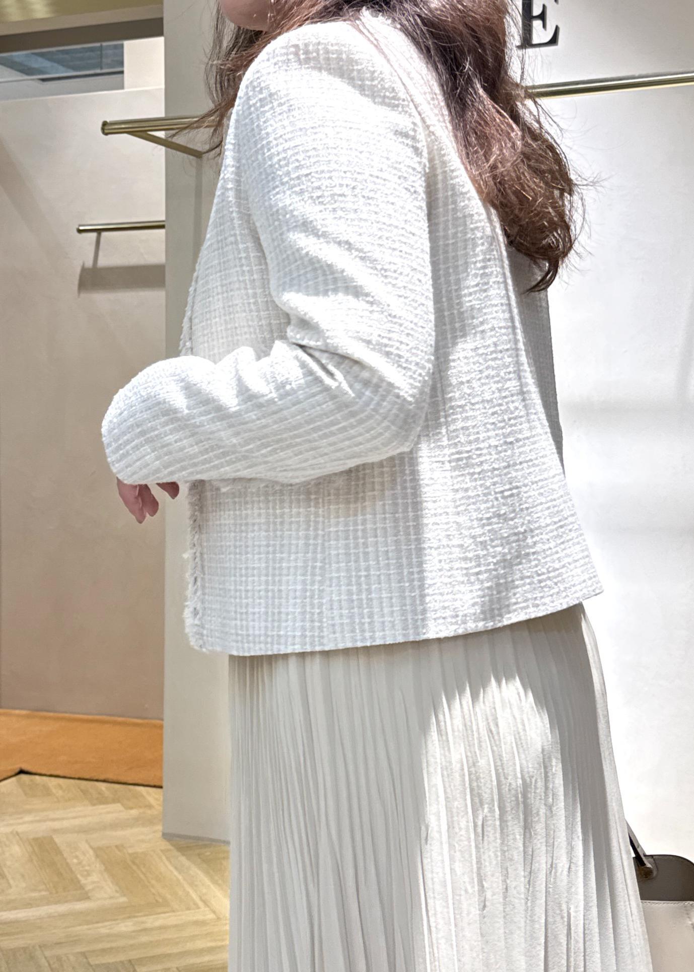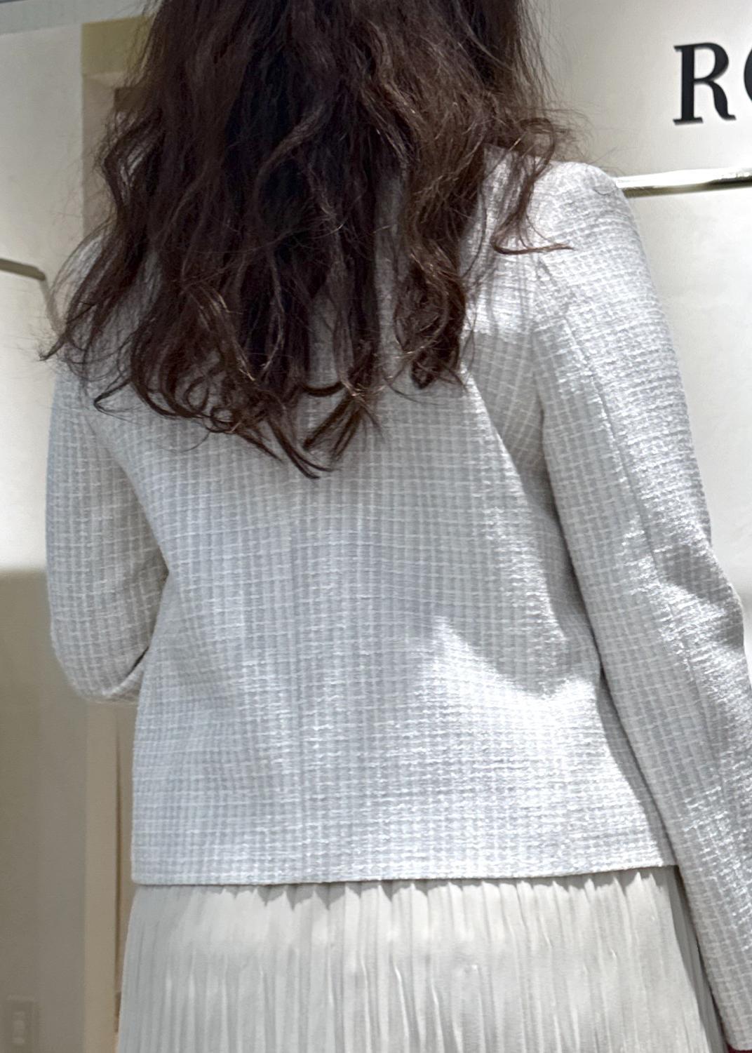 ROPÉミックスツイードノーカラージャケットオフホワイト / 38¥42,900レビュー38サイズを着用。
