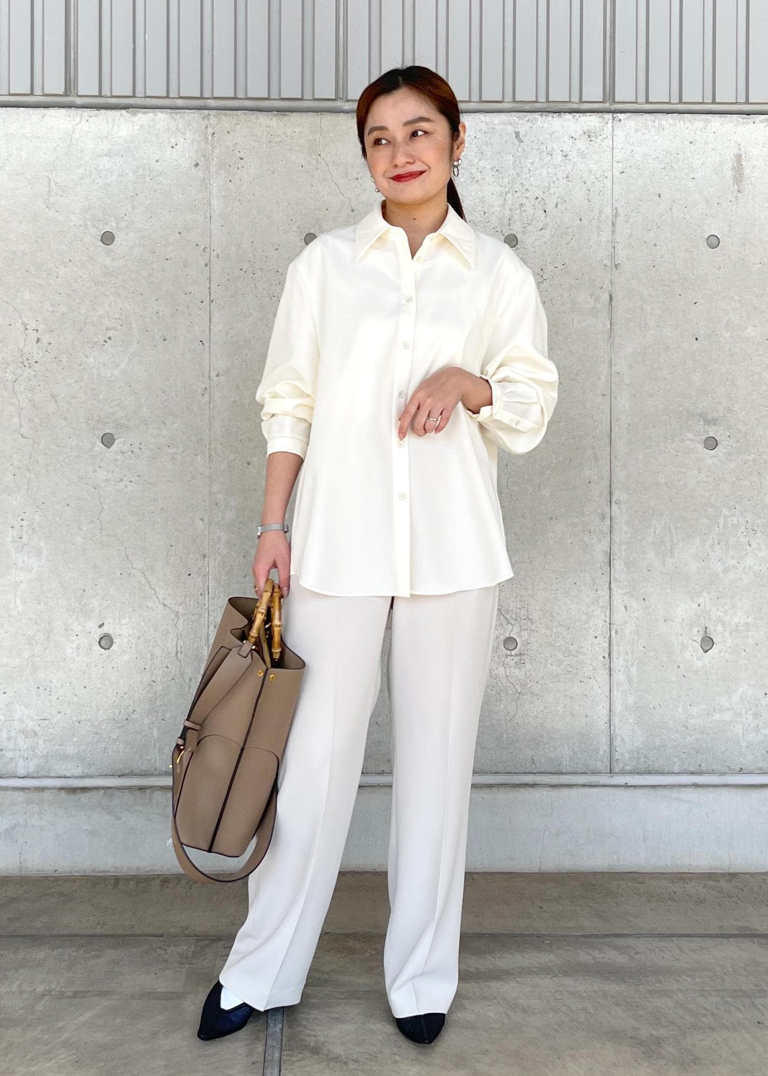 オーソドックスなデザインなので、デコルテや手首などを出して女性らしさをプラスしていただくと、より素敵に着こなしていただけます◎ -