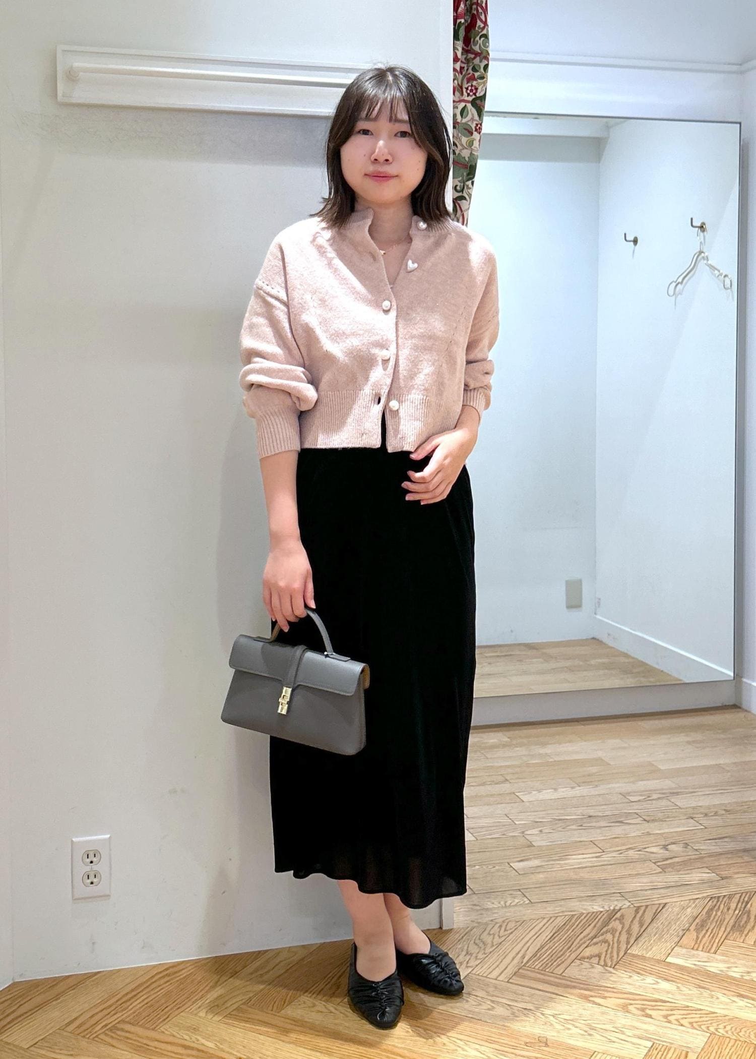 見た目よりは幅があり、財布・スマホ・ポーチは入ります。