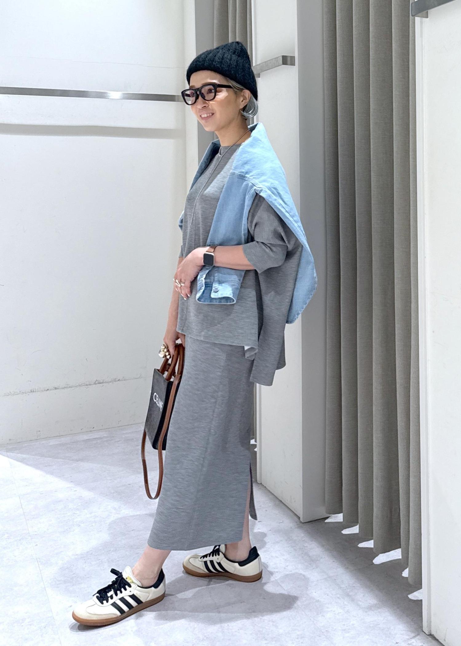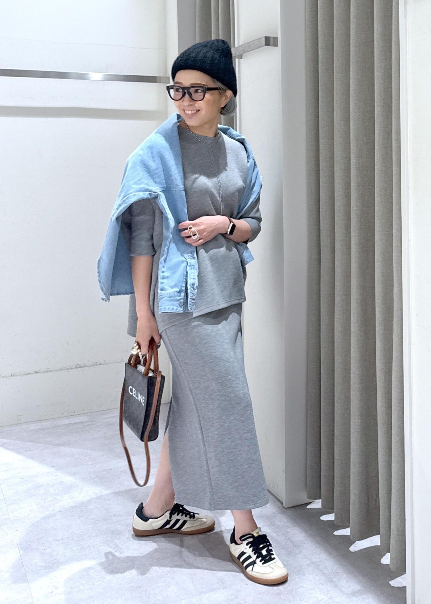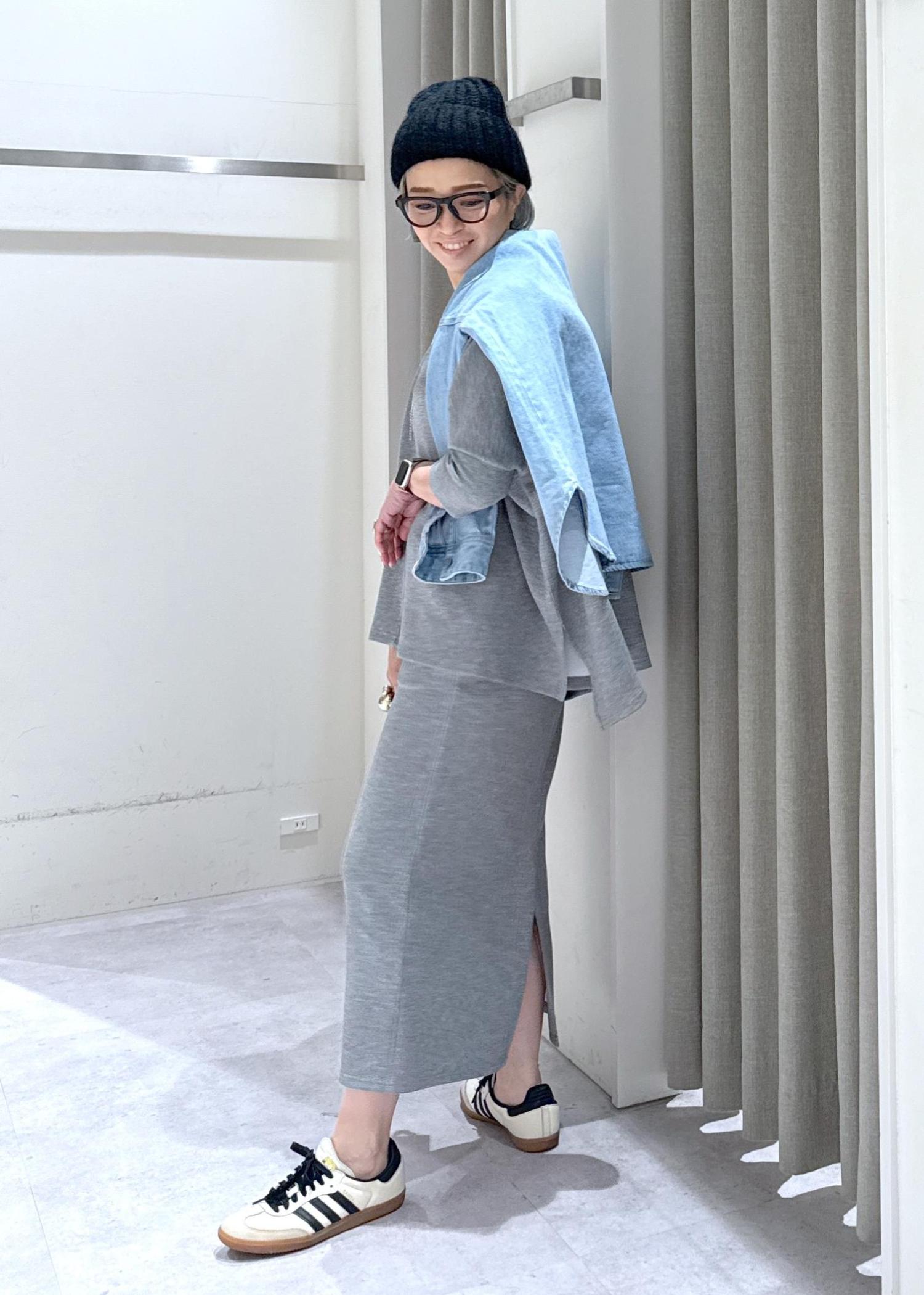 同じ素材のトップスがあるので、セットアップ対応できます。