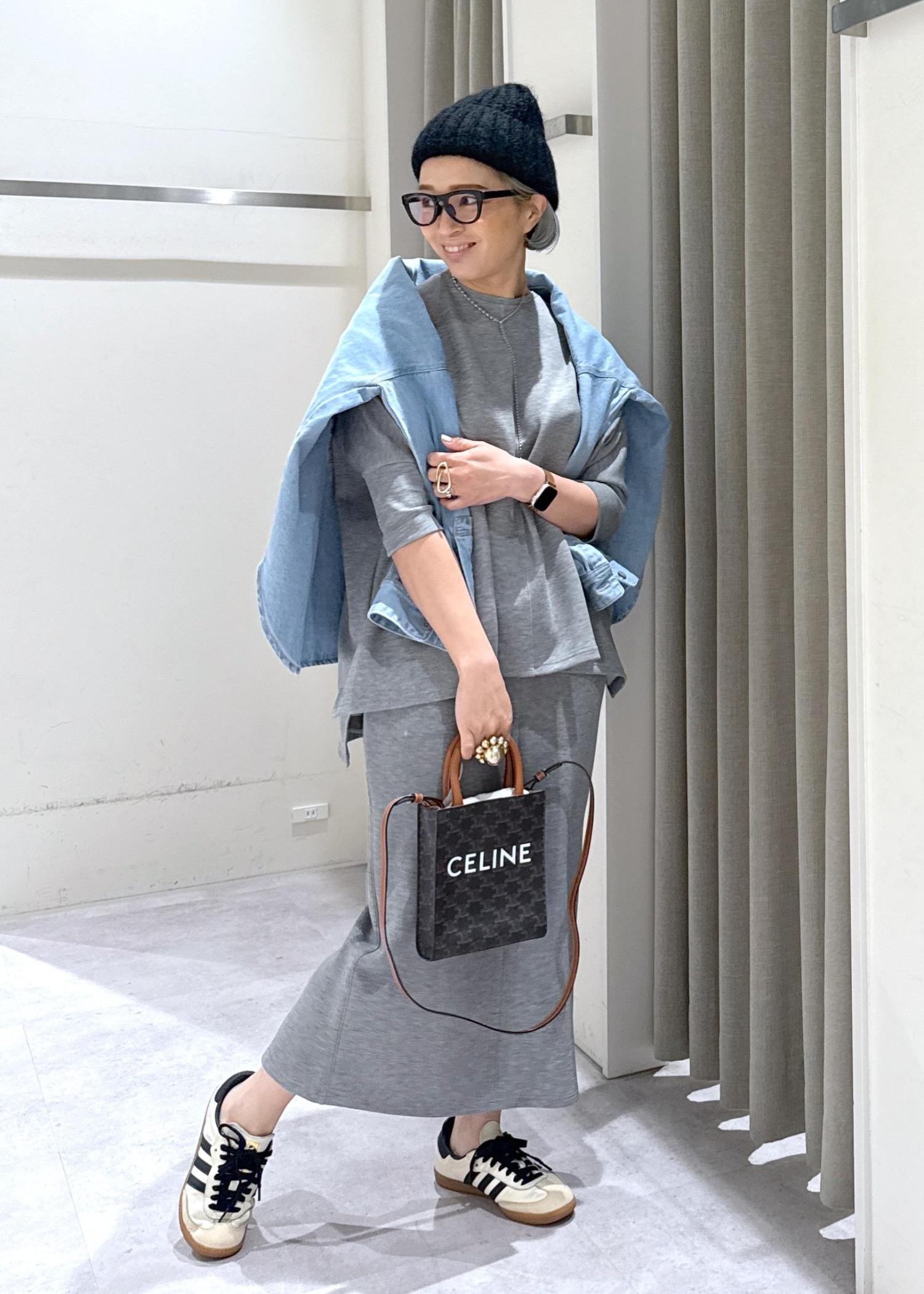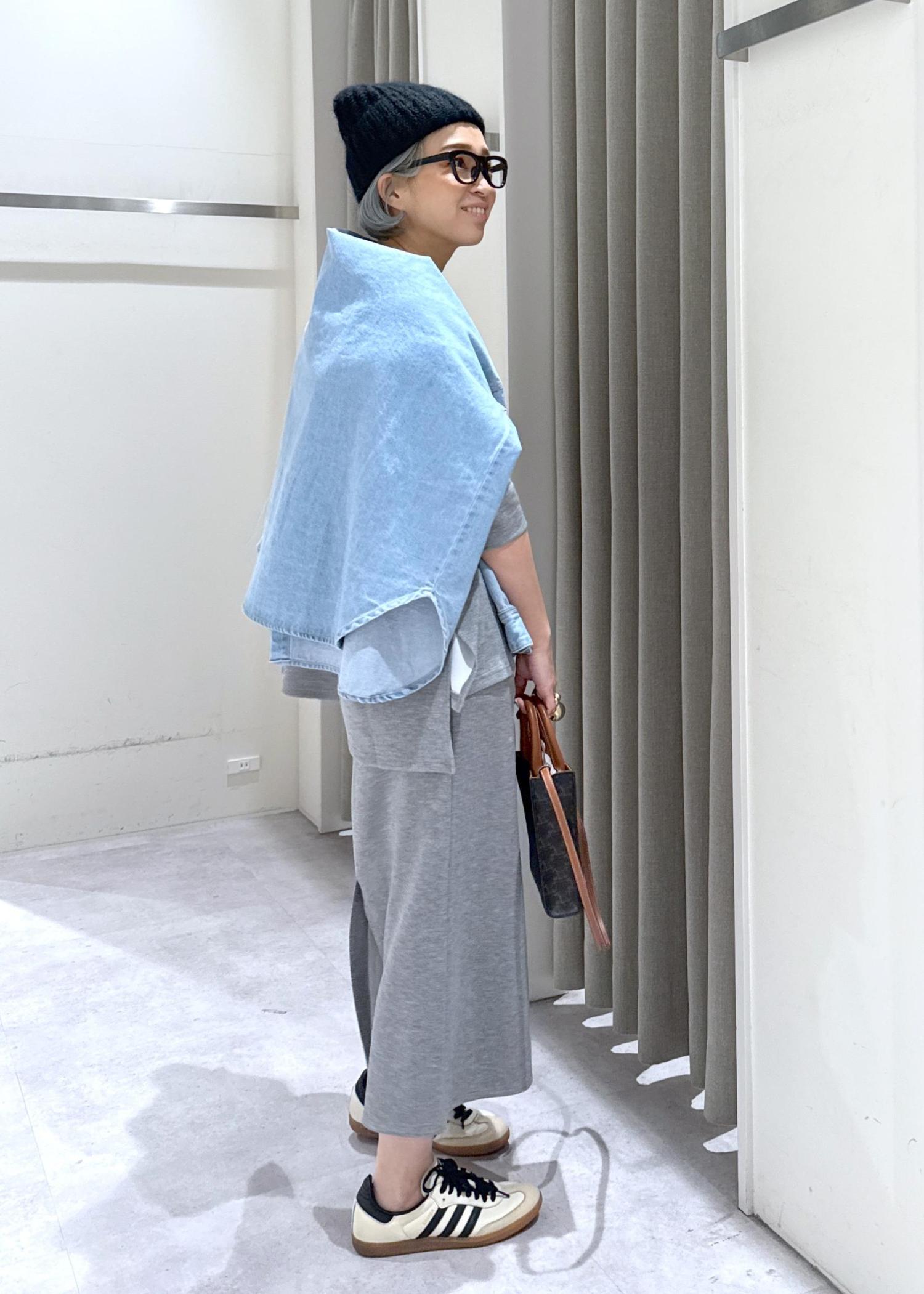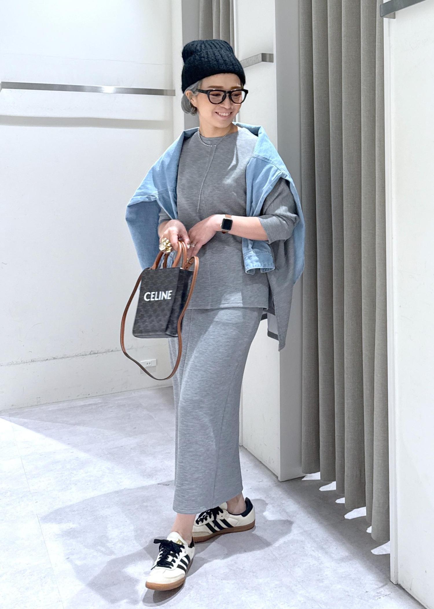 同じ素材のトップスがあるので、セットアップ対応できます。