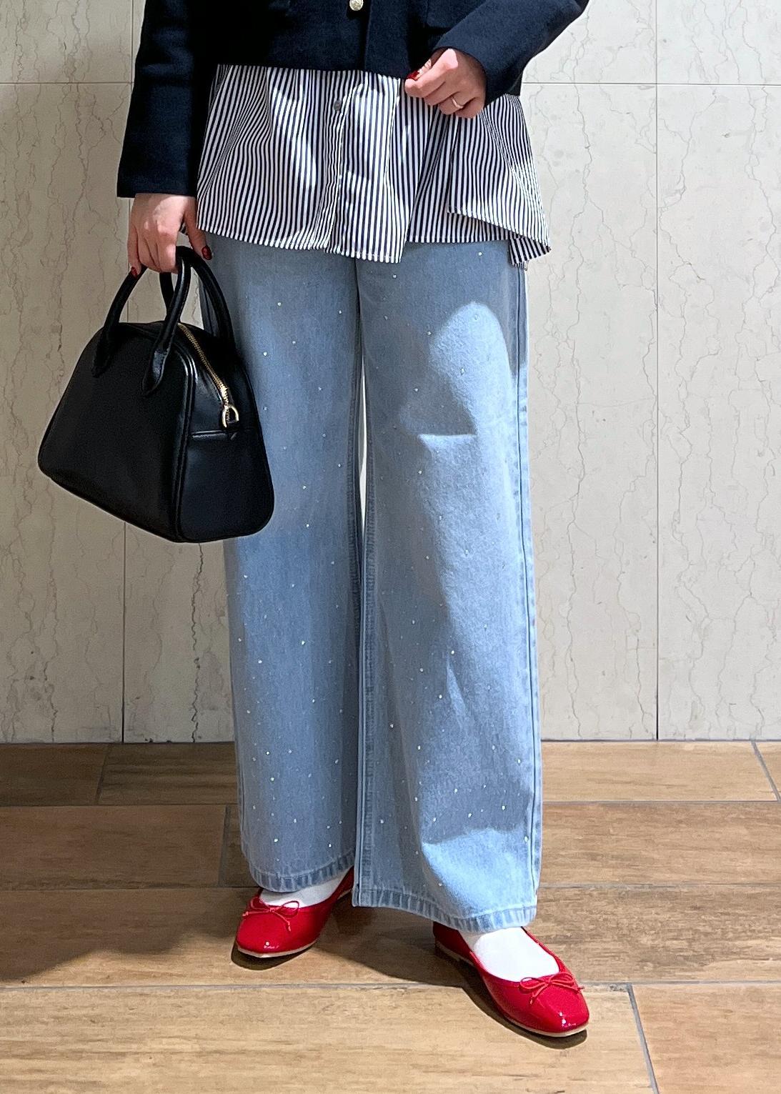トレンドのキラキラビジュー付きのデニムを