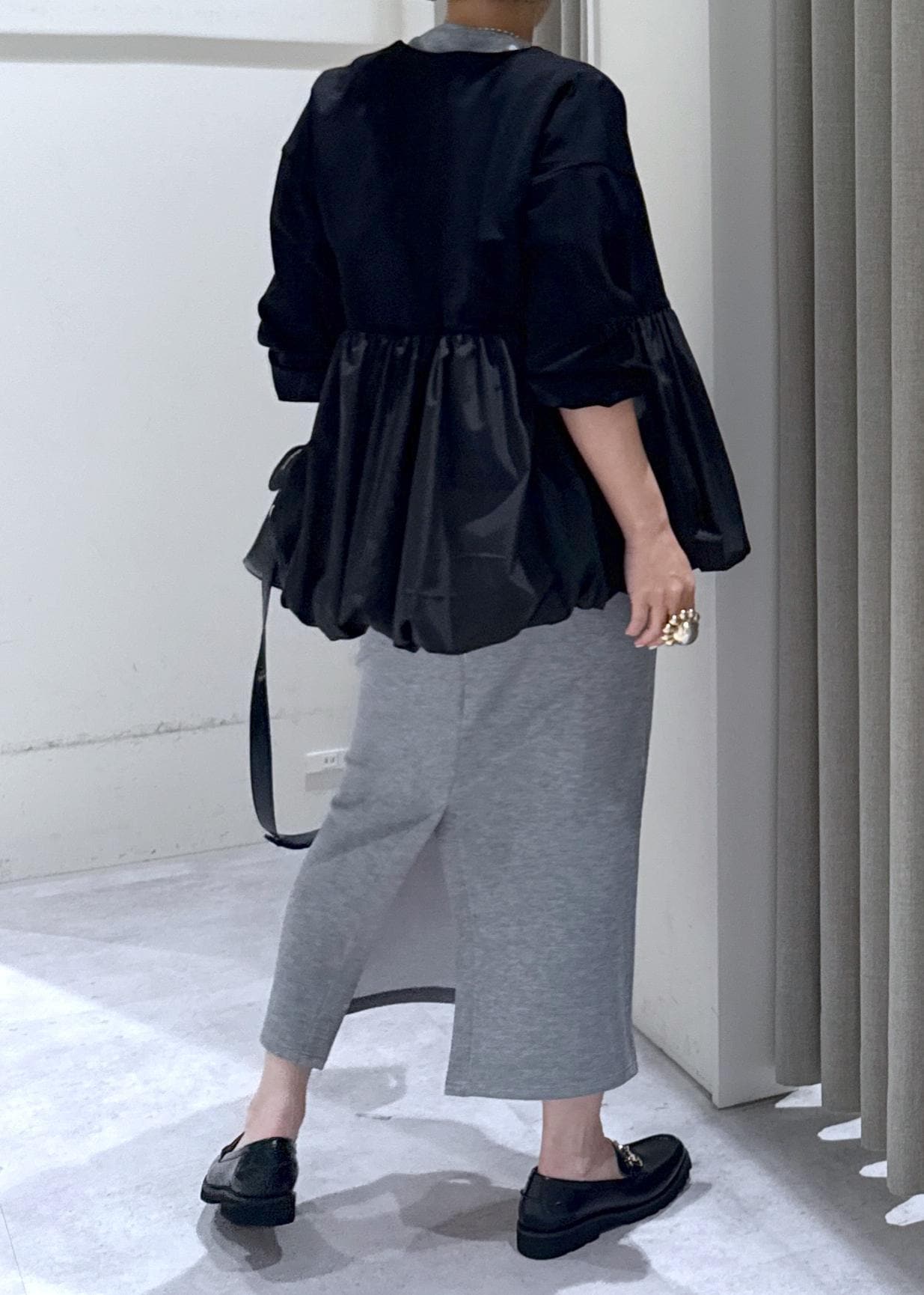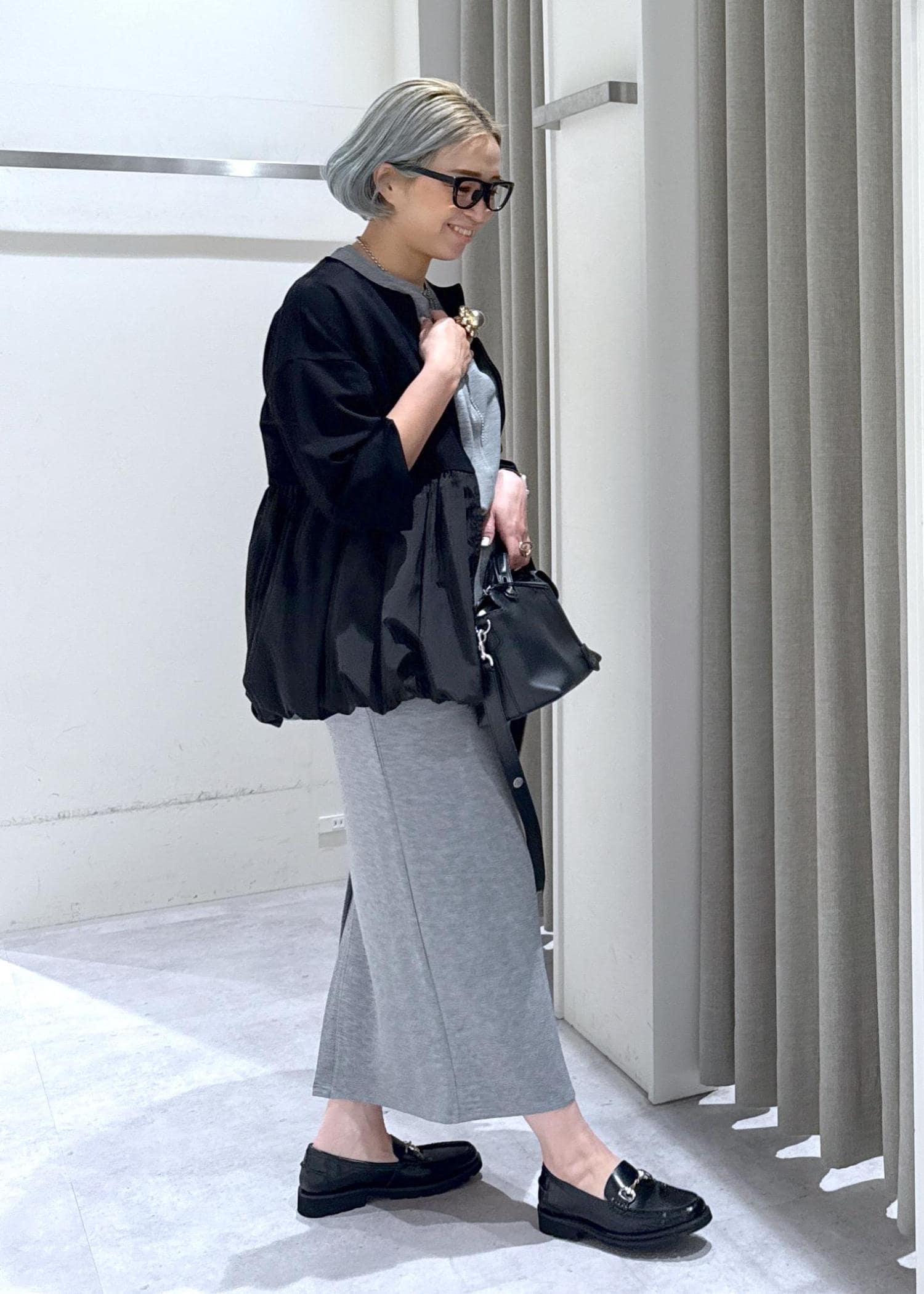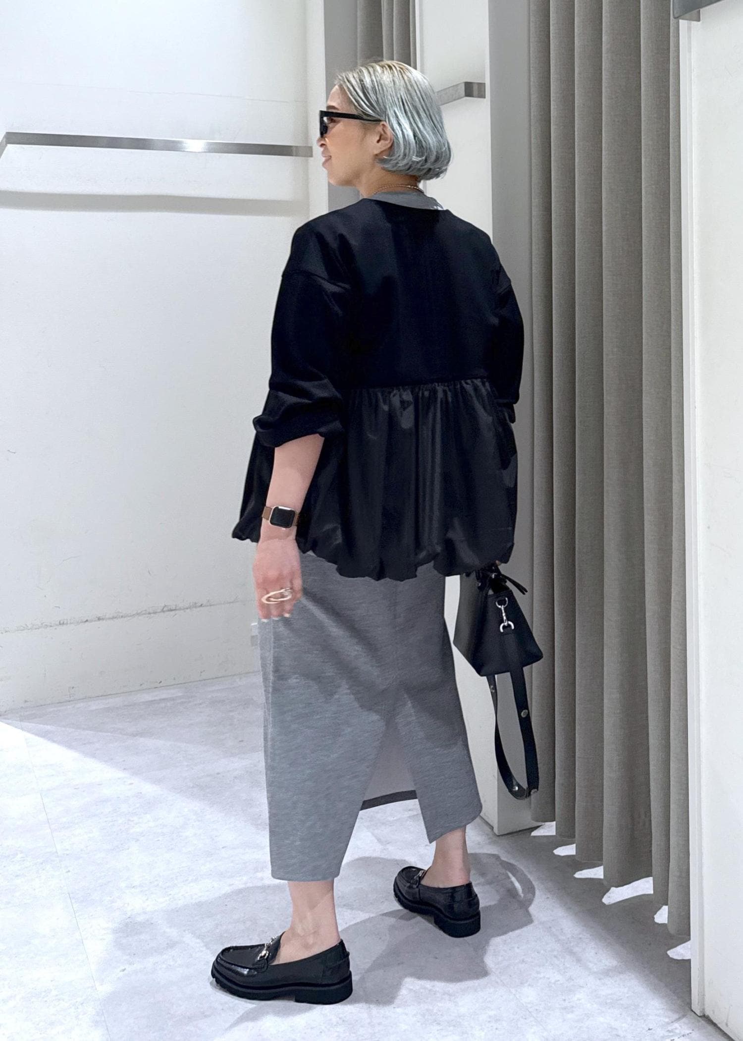 ペプラムラインが体型カバーしてくれるので、前だけインが腰位置を高く見せてくれてオススメです♪