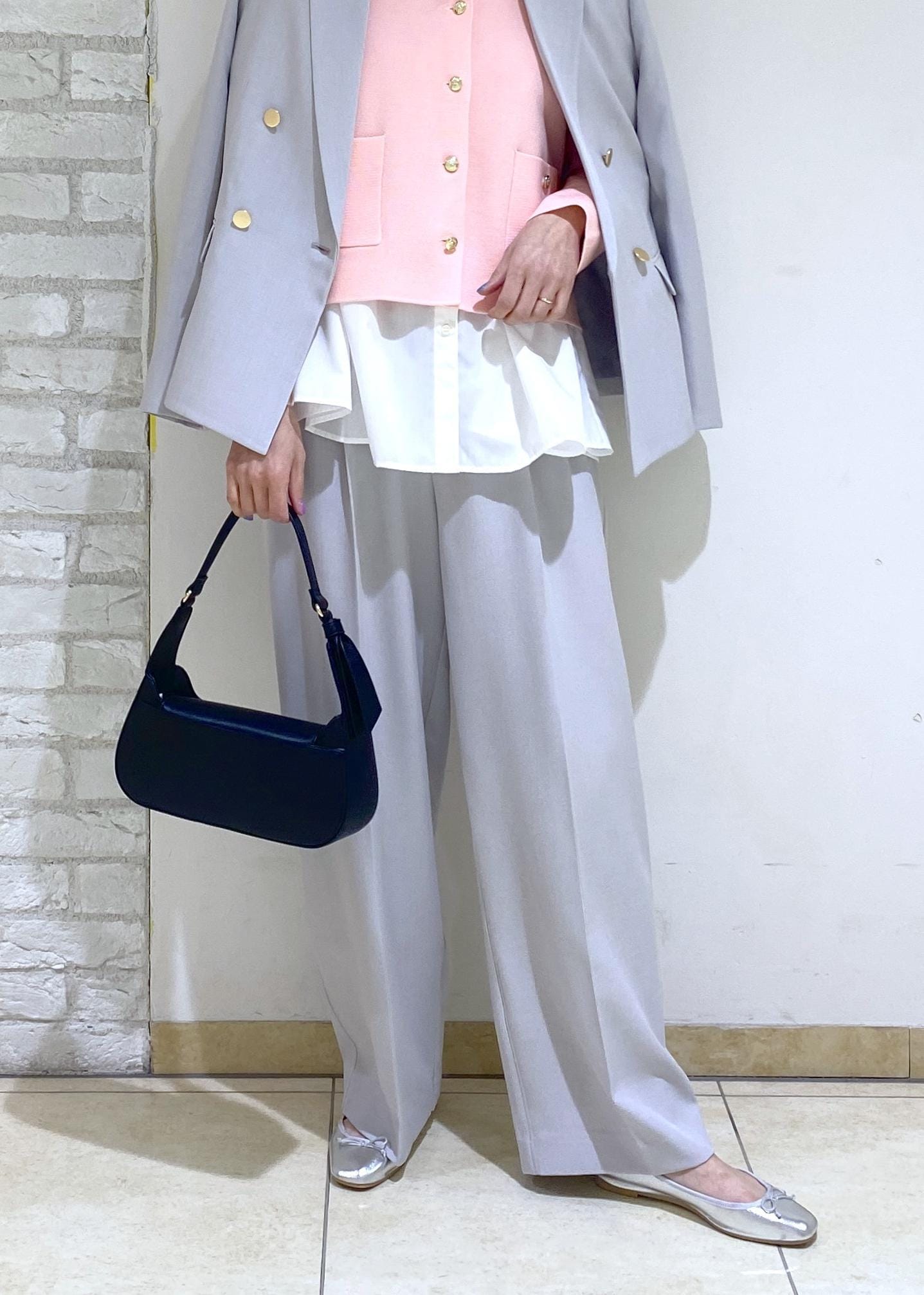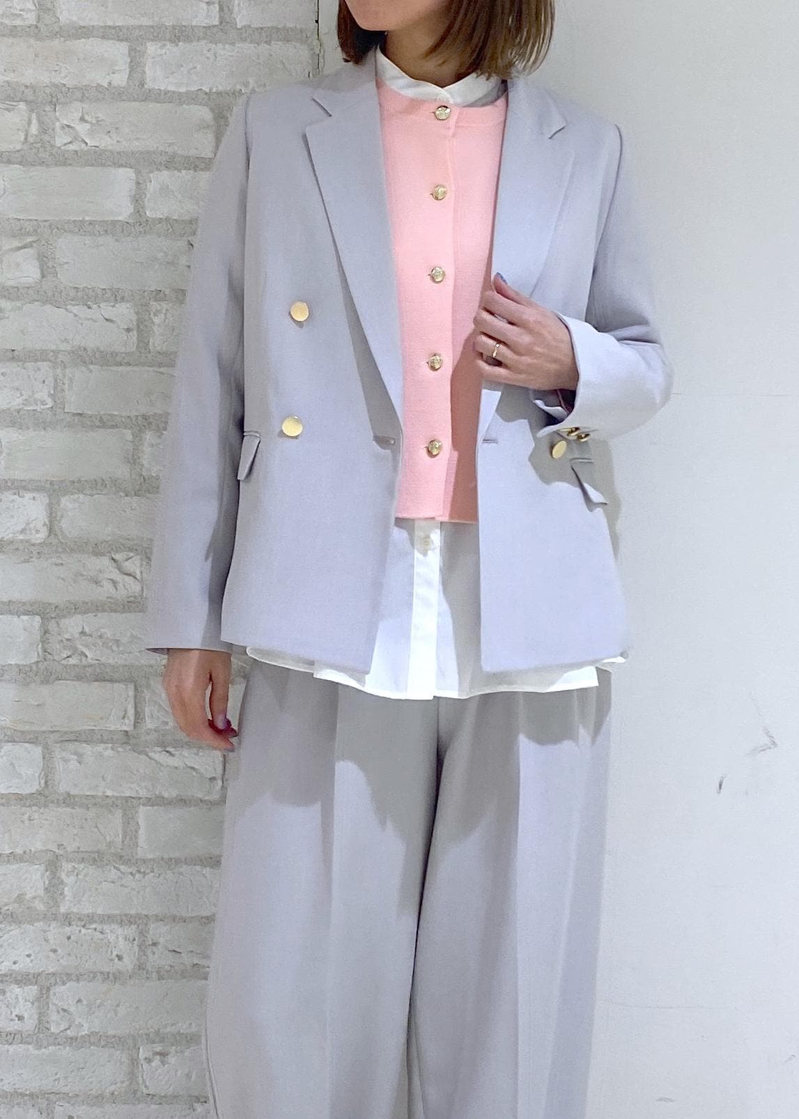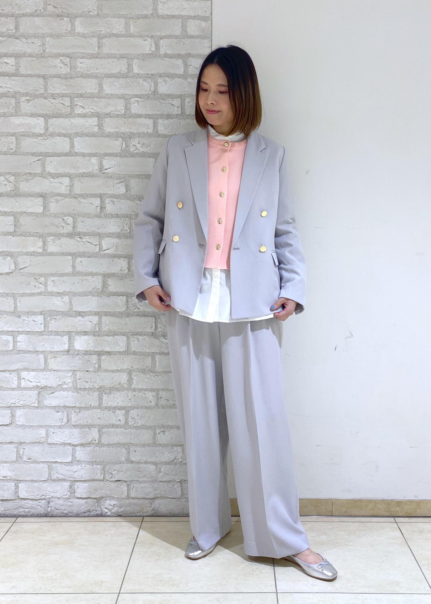 金釦ジャケットのセットアップコーデ。