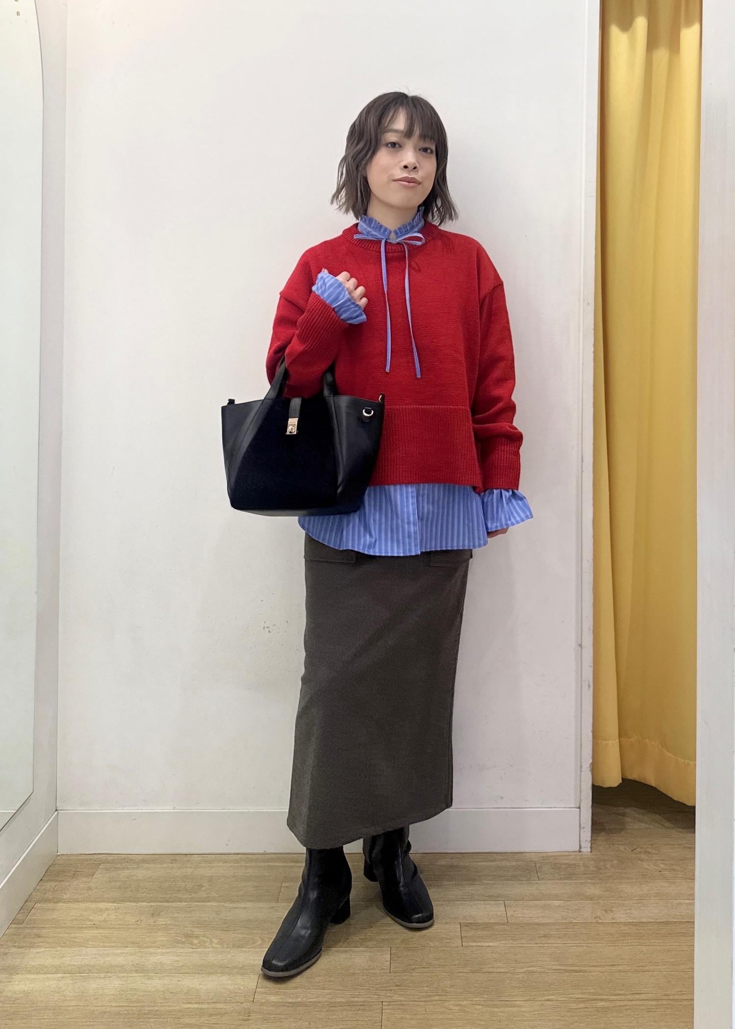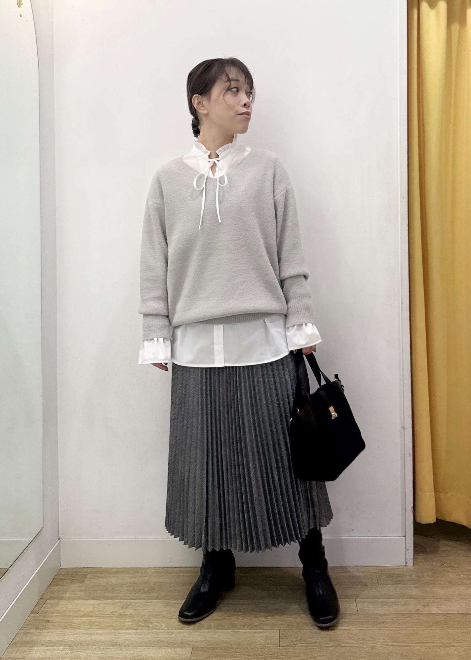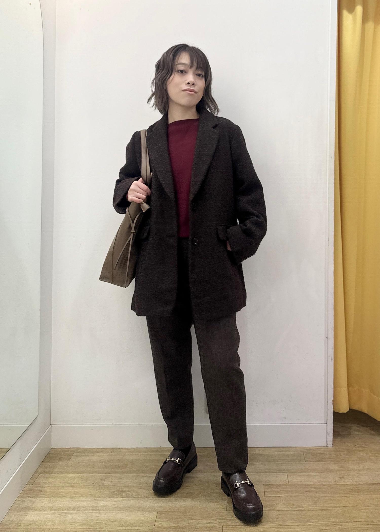 ツイードジャケットを脱いでもちゃんと感もありつつ、体型カバーできるスタイリングです☺︎
