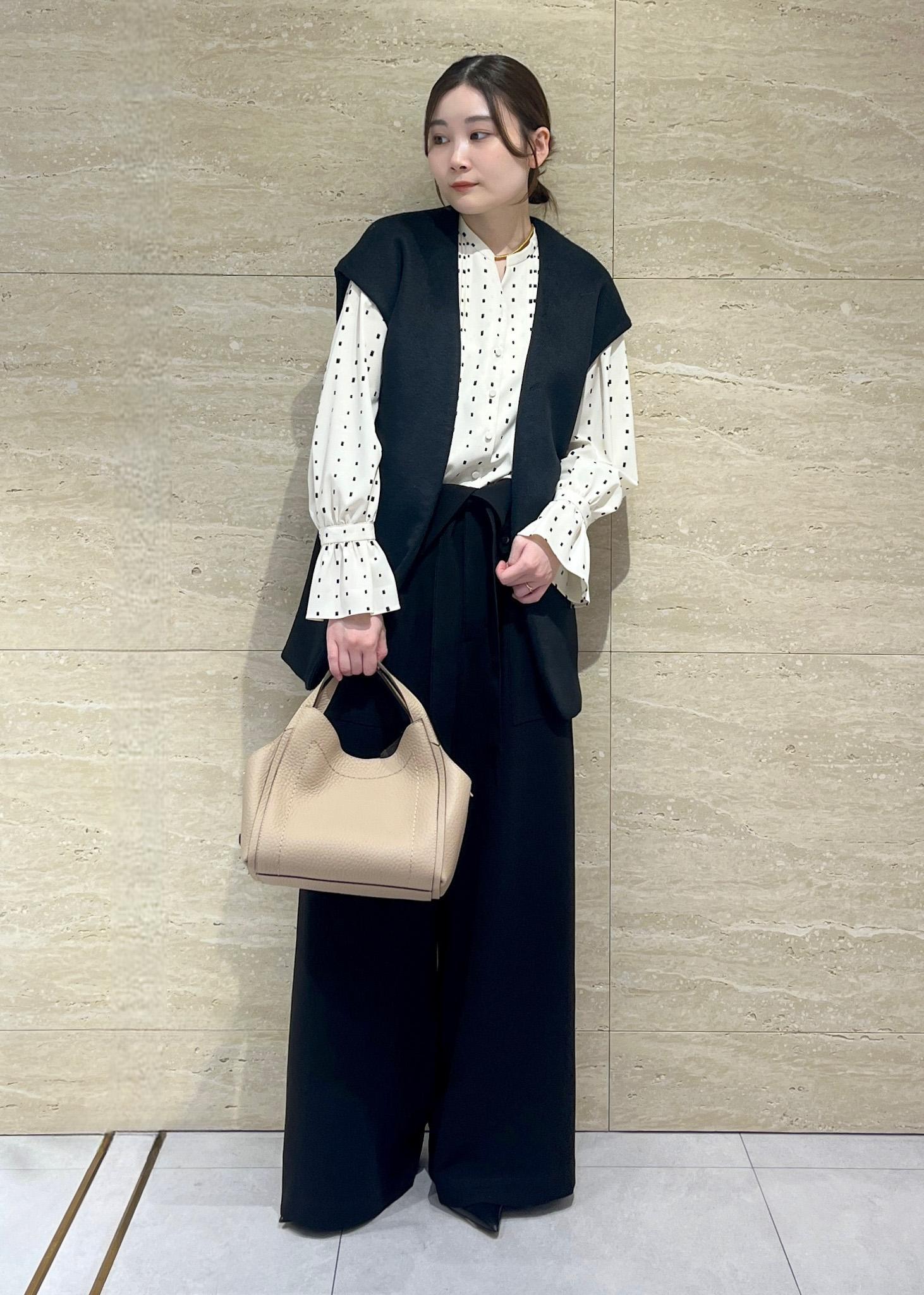 前後差のある着丈が立体感なシルエットを作ってくれるので、着ると華やかな印象です。
