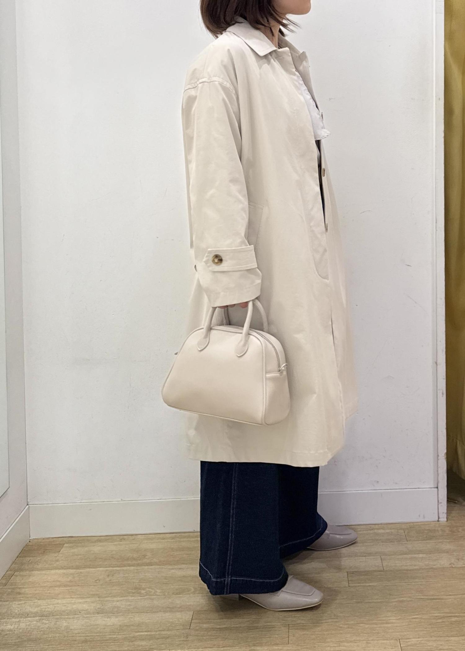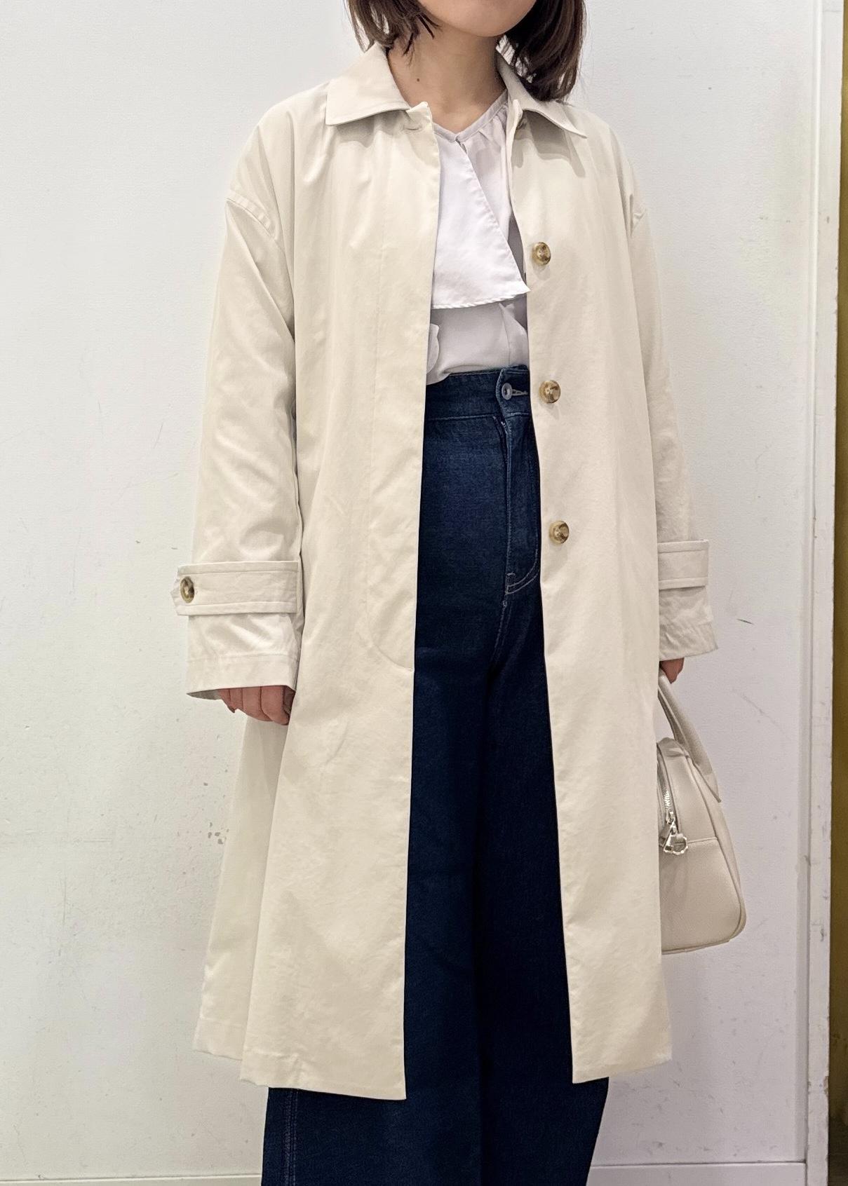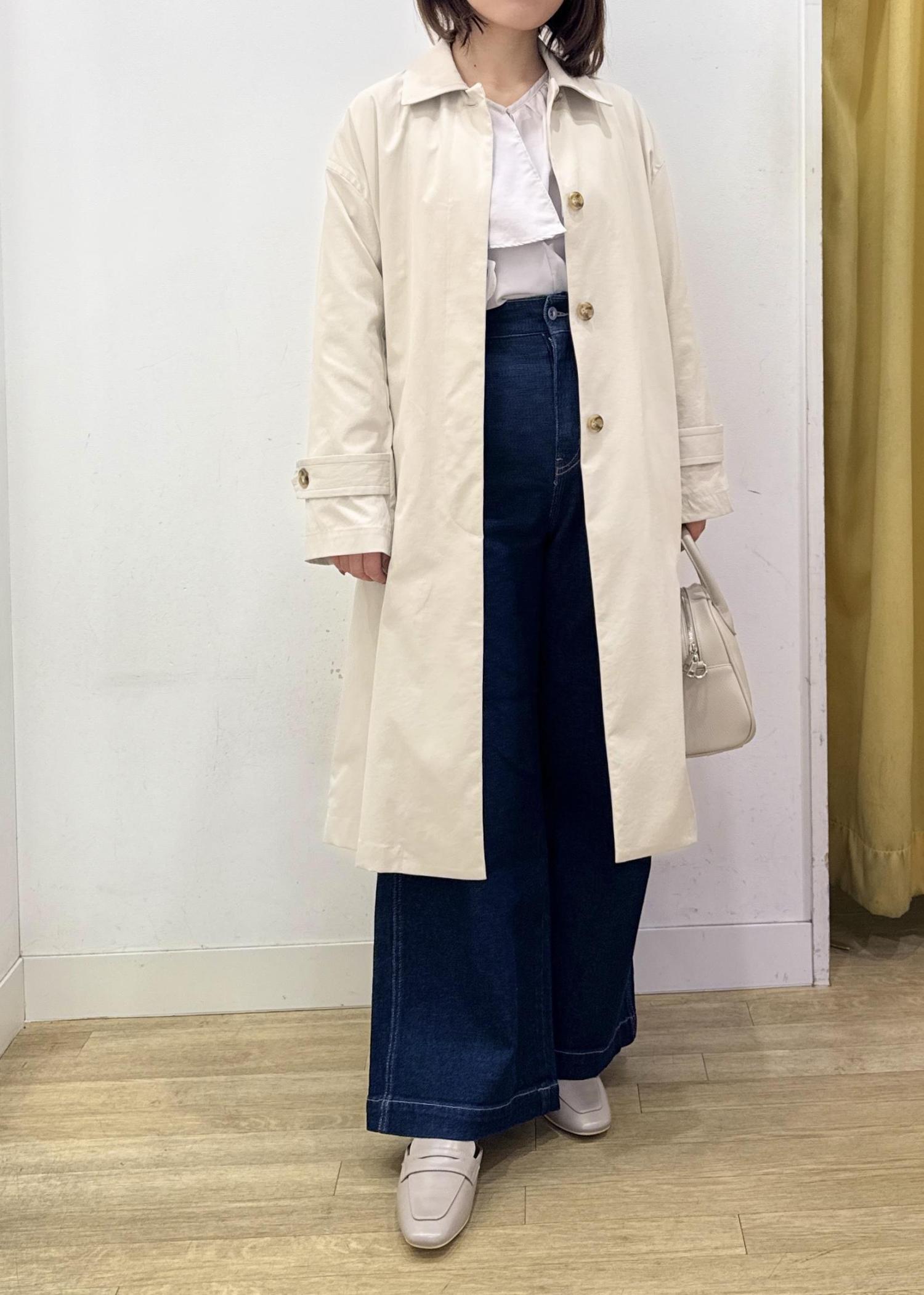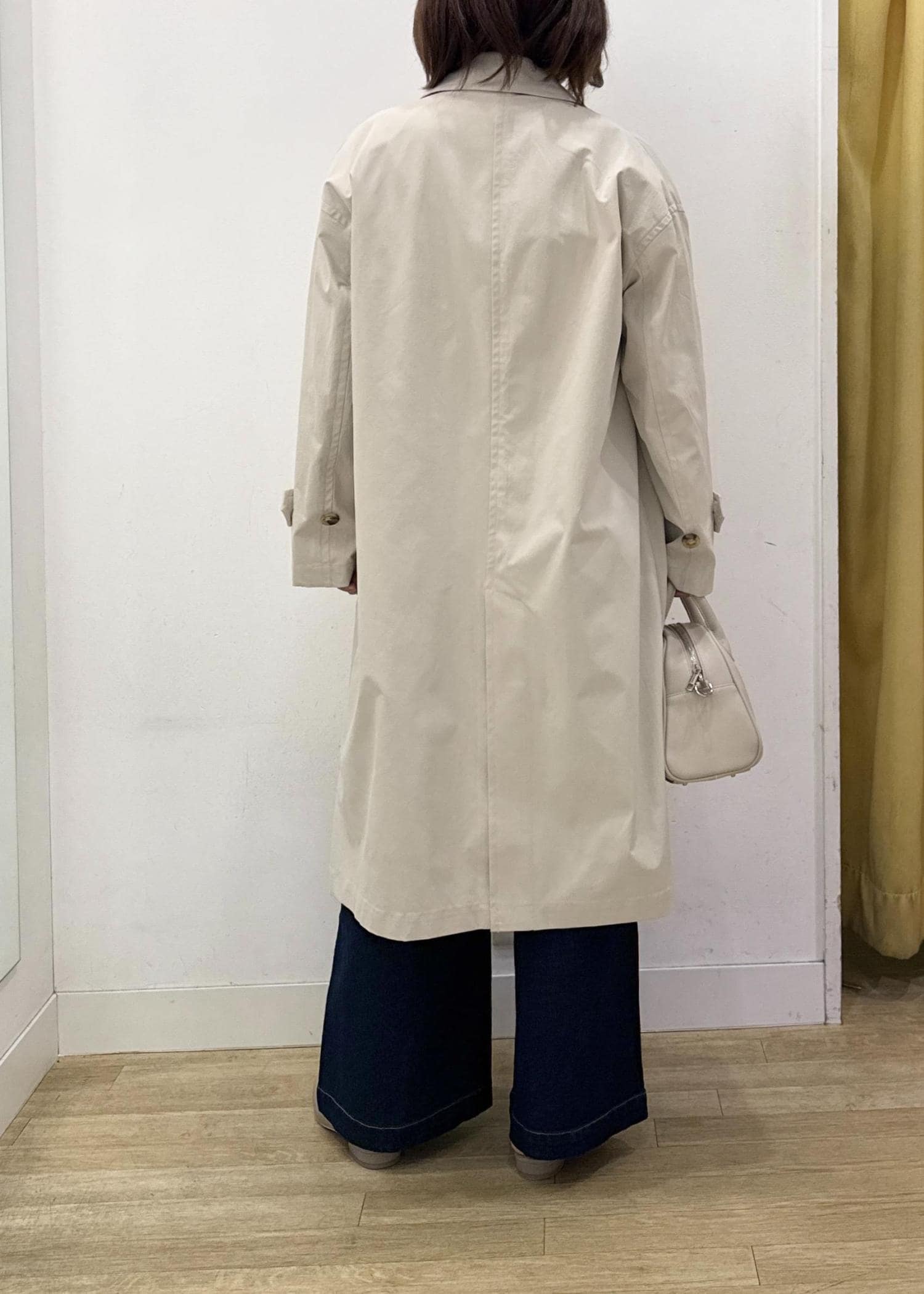 オンオフ兼用できるステンカラーコートは、休日はデニム合わせがオススメ♪
