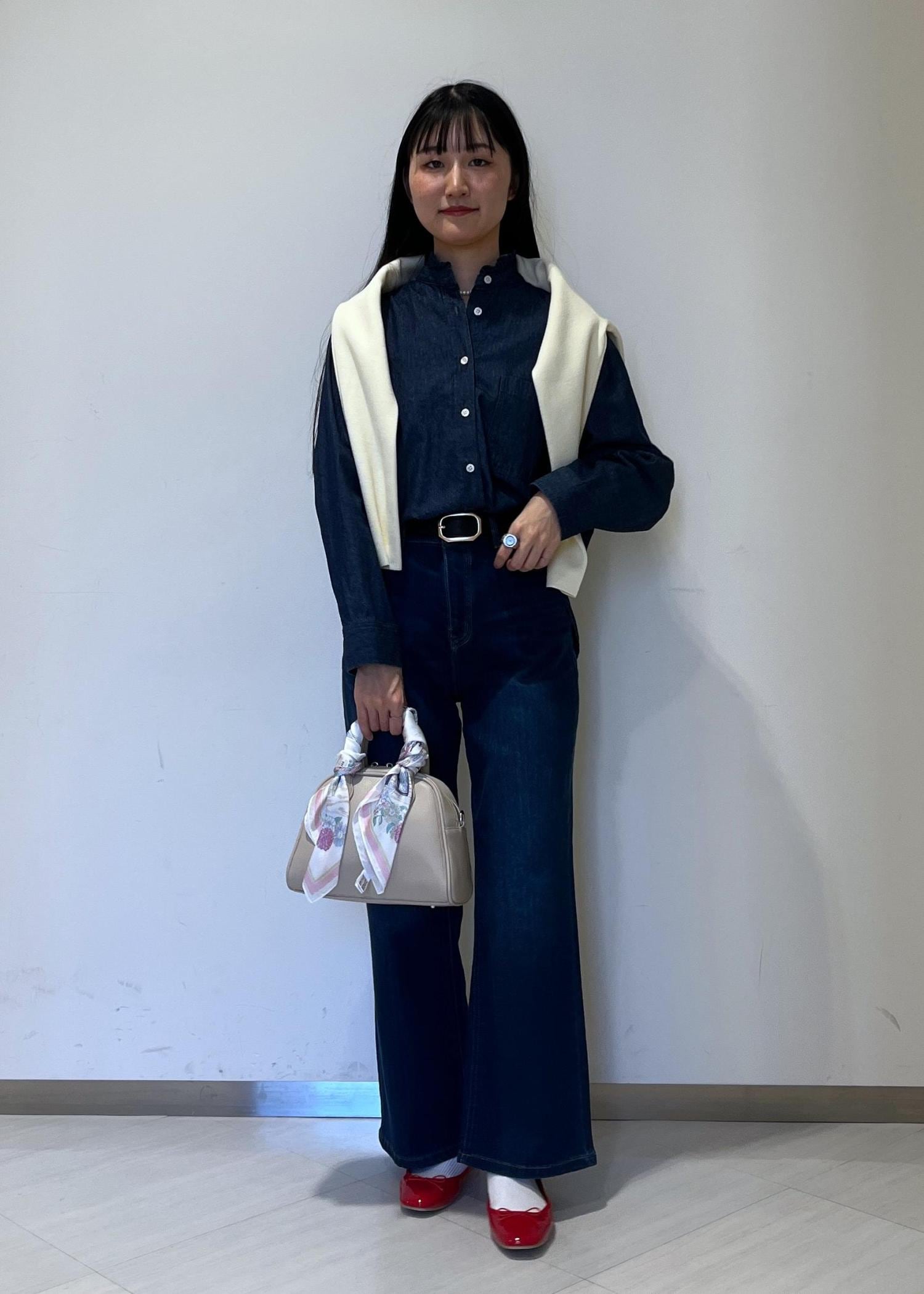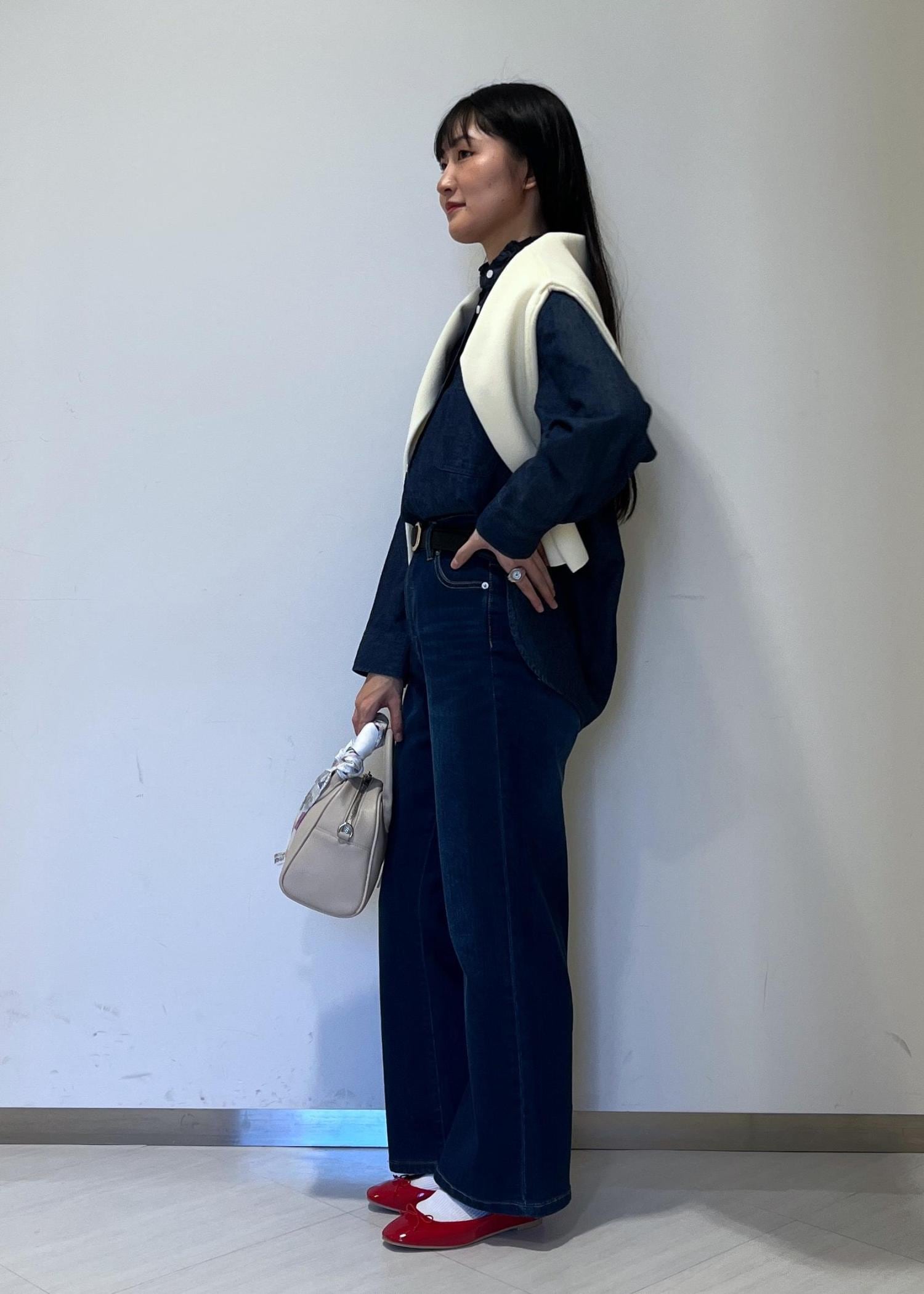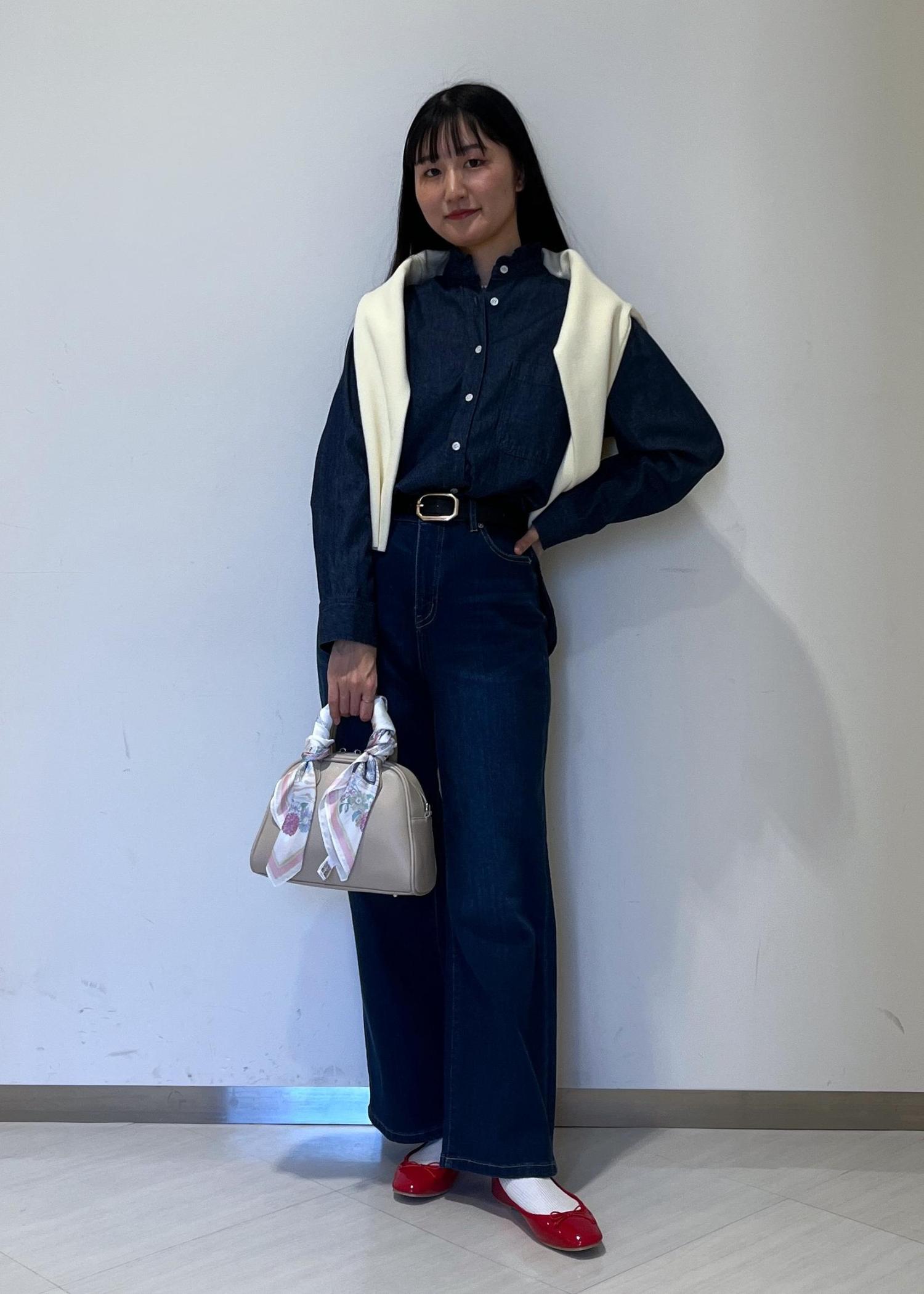 クリーンなアイテムなので、ブラウスと合わせてきれいめなスタイリングにも使えます。