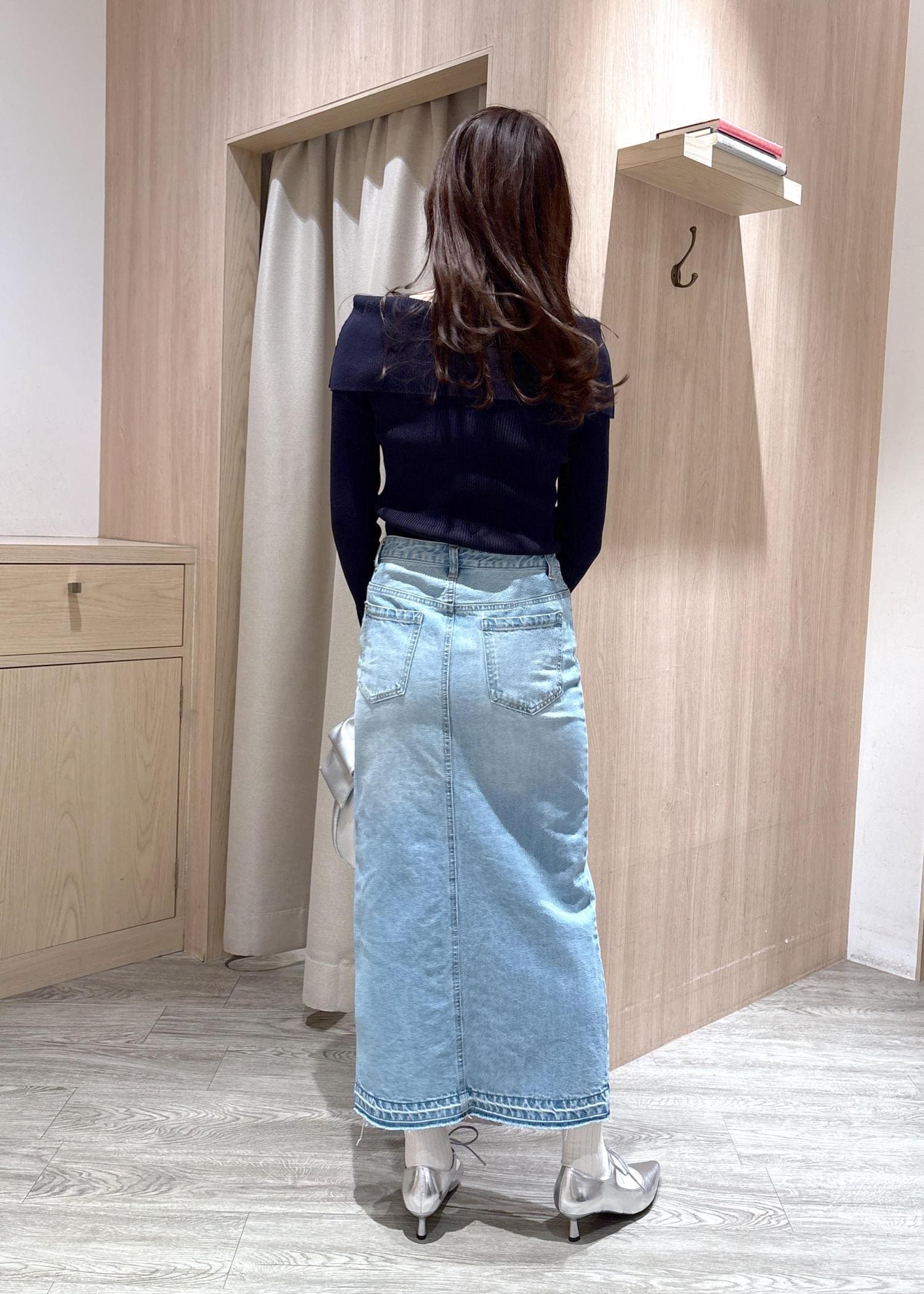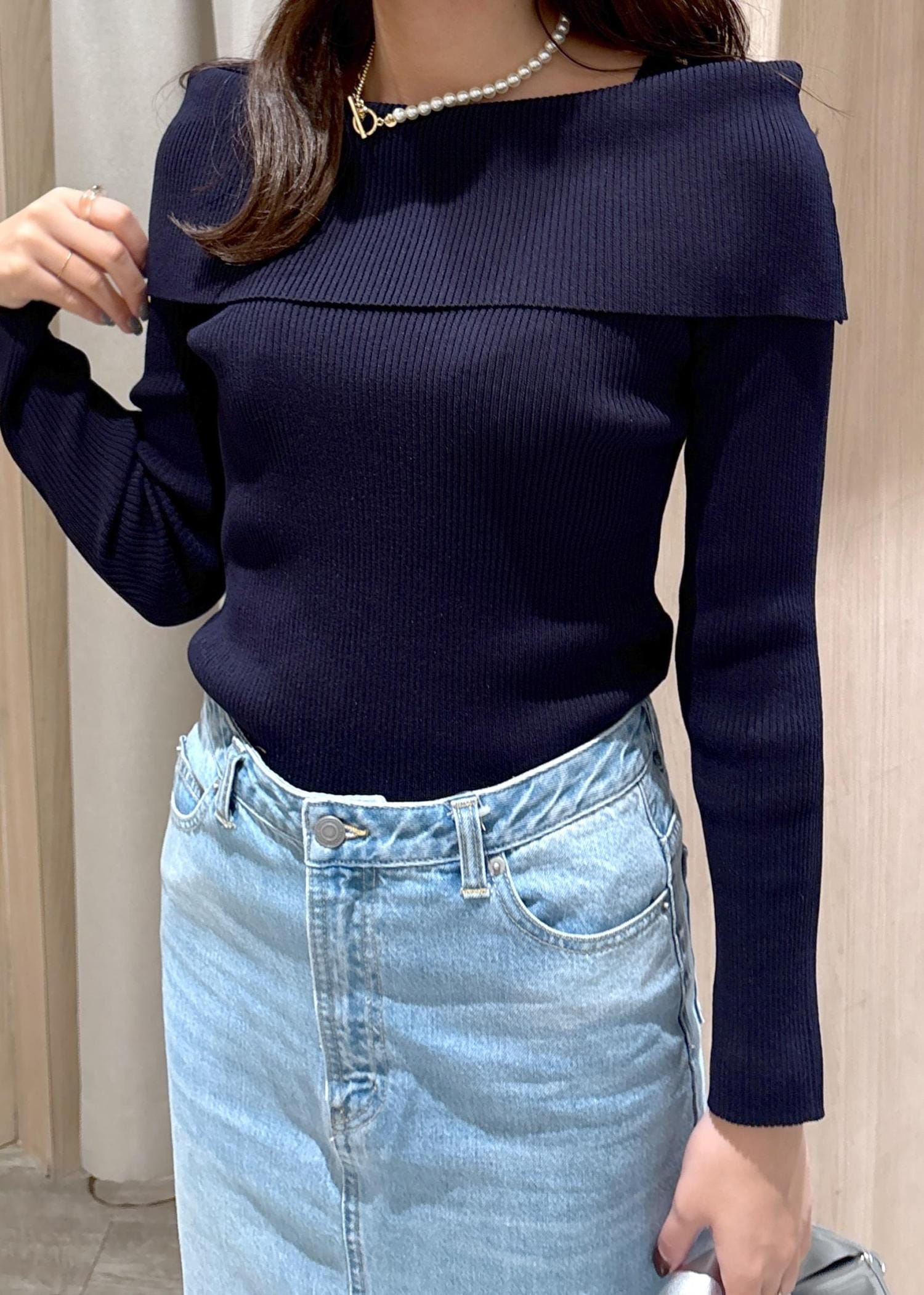 このニットは中のインナーを気にせず着られるので、オフショルにいままで挑戦してなかった方にも♡