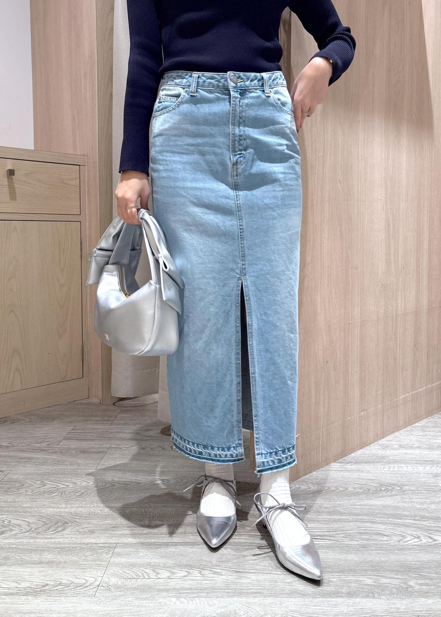 アウトレットVIS【洗える】アイラインウォシュデニムスカートサックス / M¥3,516レビュー足首が見えるくらいの丈感です!