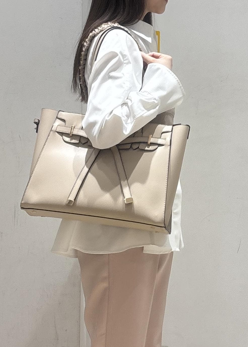 VIS【A4収納】フラップタイトートバッグベージュ系 / F¥7,909レビューA4の書類はもちろん、500mlペットボトルも縦に入ります◎その他も、折り畳み傘やコンパクトに畳んだカーディガンも入りました!