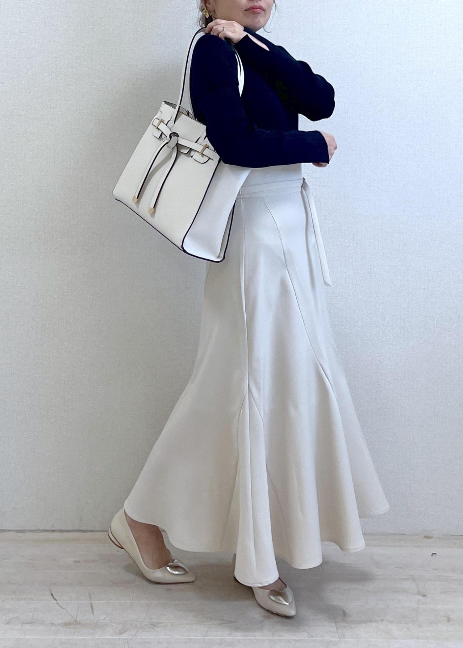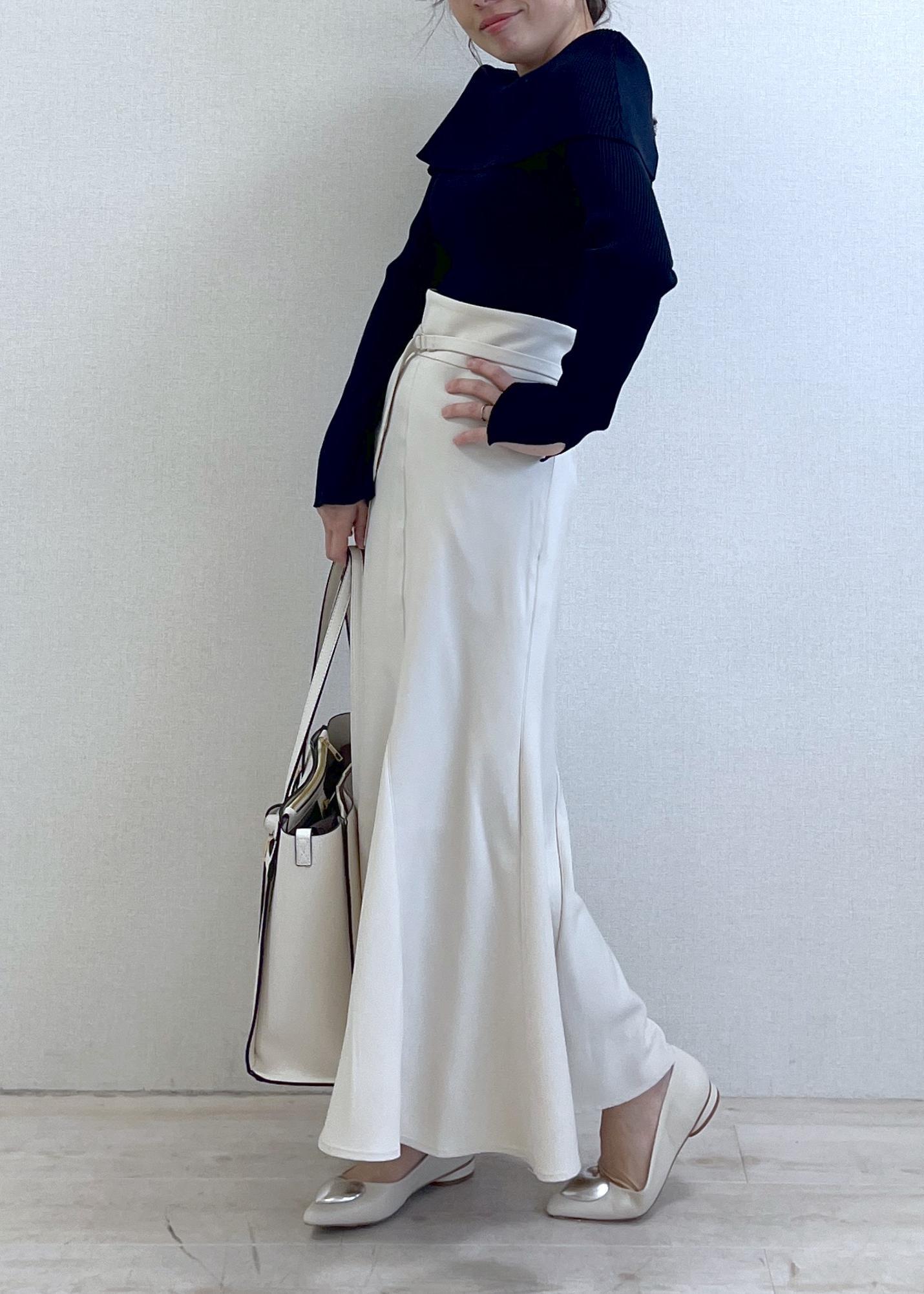 アウトレットVISエスカルゴ切替マーメイドスカートベージュ / S¥5,382レビュー152cmでSサイズ着用し、着丈は足首が出るくらいの長め丈。ウエストはややゆとりがありますが、マーメードラインでとてもきれい◎足捌きしやすく、アシンメトリー切り替えでよりすっきり感を!動いた時の揺れ感が何とも女性らしくて素敵です。裏地付きなので、ベージュのカラーも透け感なくお召しいただけます。