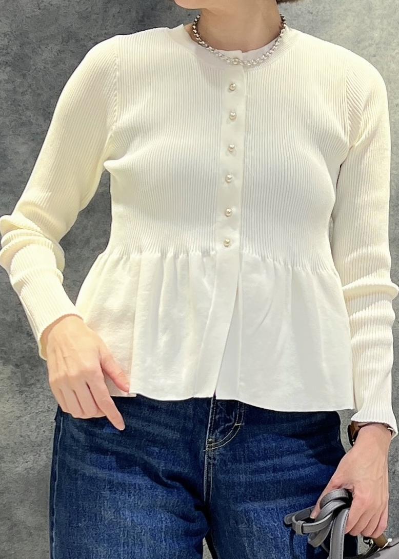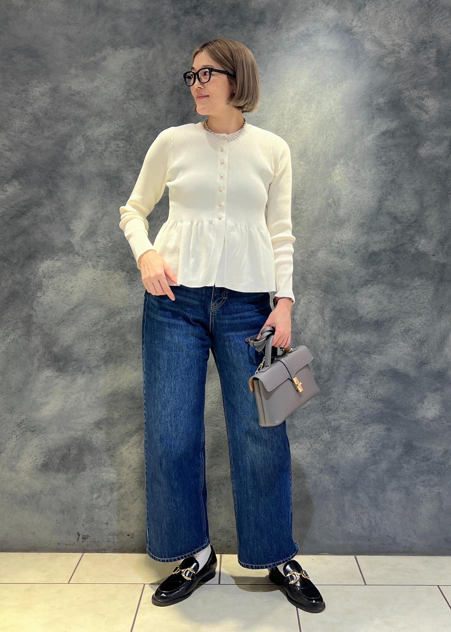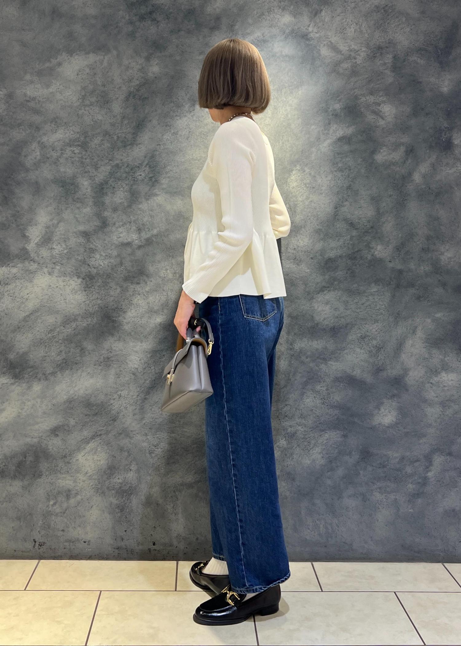 しかしアウターを脱いだらペプラムのひらひらやトレンチ自体もバックスタイルの裾のスリットがプリーツになっているなど、ちょっとした遊び心は忘れずに♡
