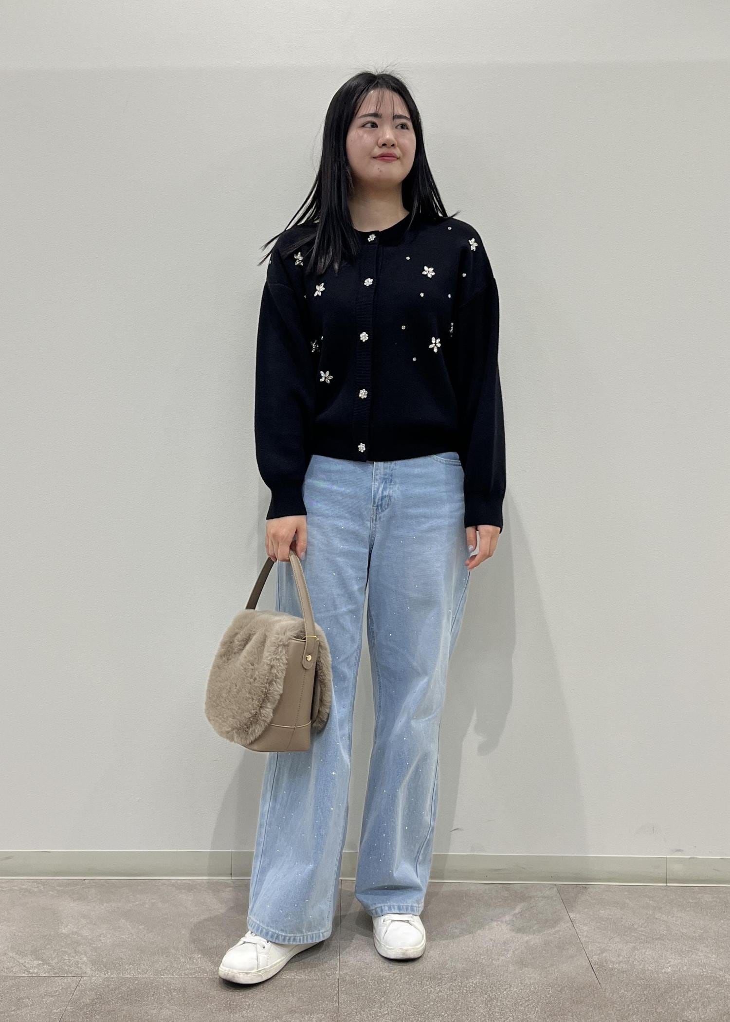 レイヤード風のカーディガンは簡単におしゃれに見えるのでオススメです。