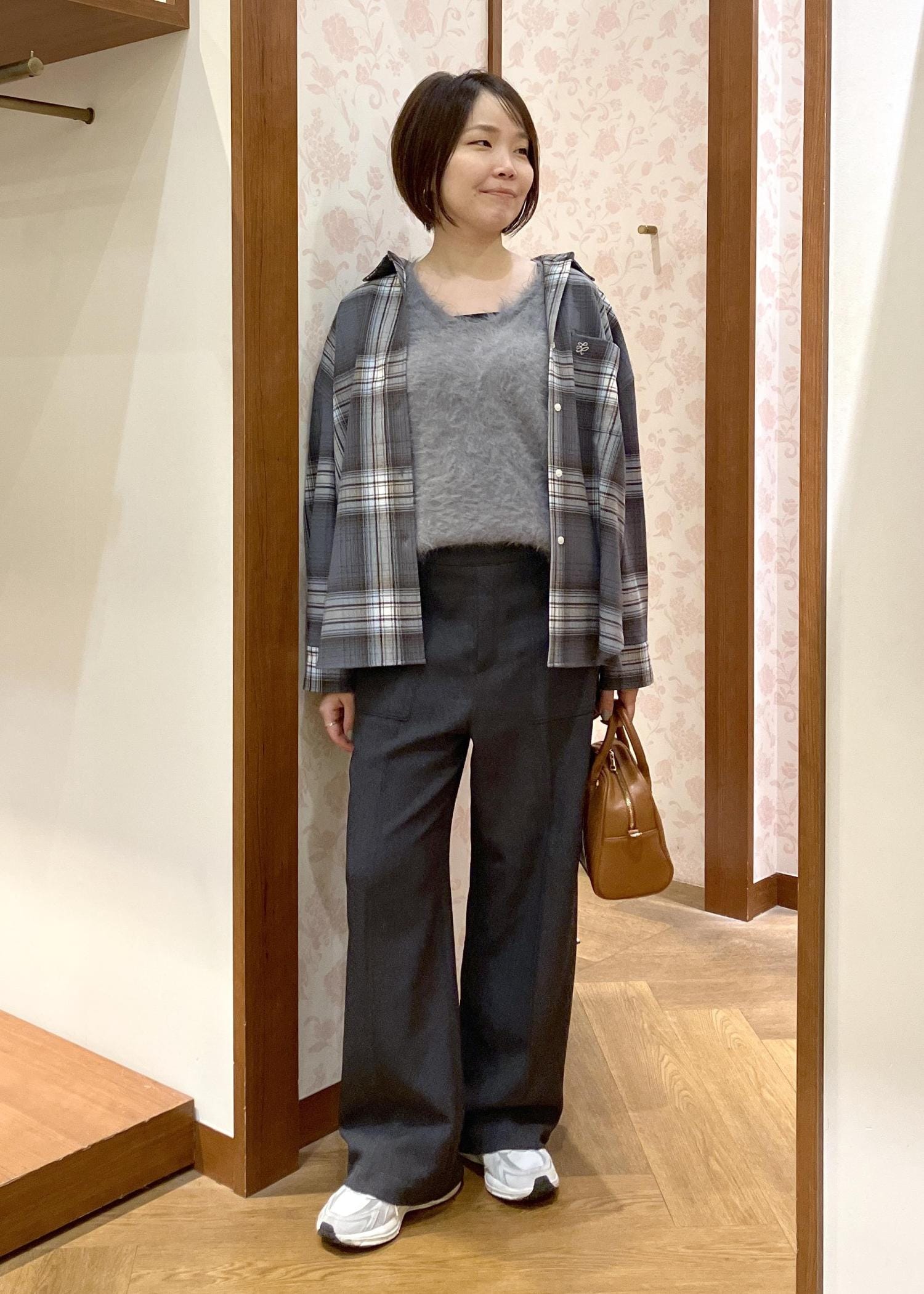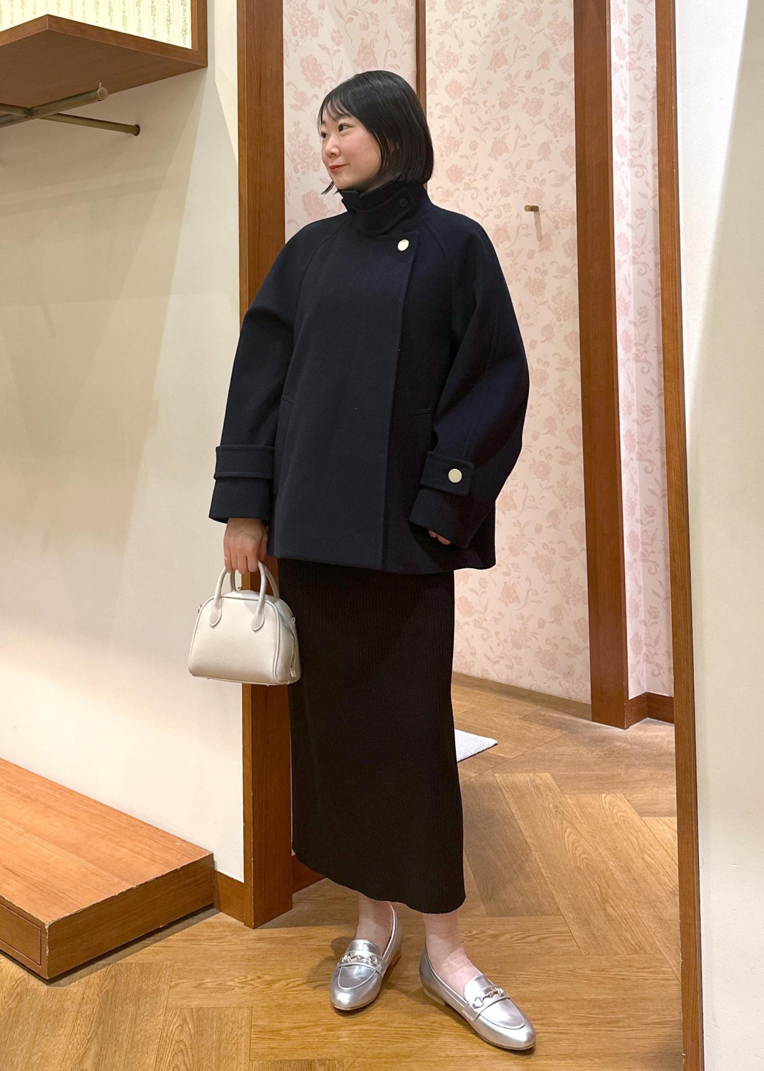 ショートコートにゆったりシルエットに見える