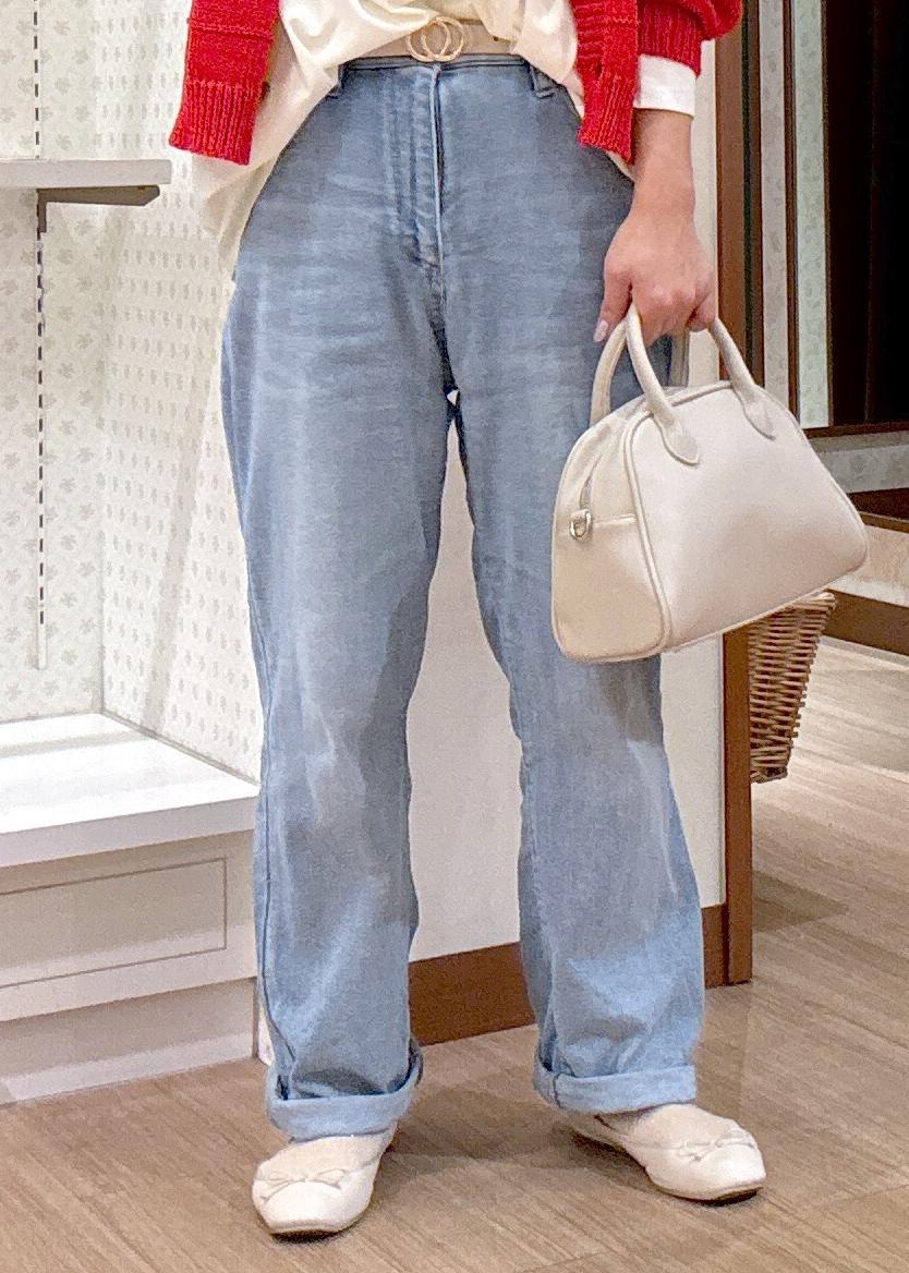 着心地:普段38サイズで38ジャストです。ストレートよりヒップとももに余裕がありデニムが苦手な方にも取り入れやすいシルエットです。 -