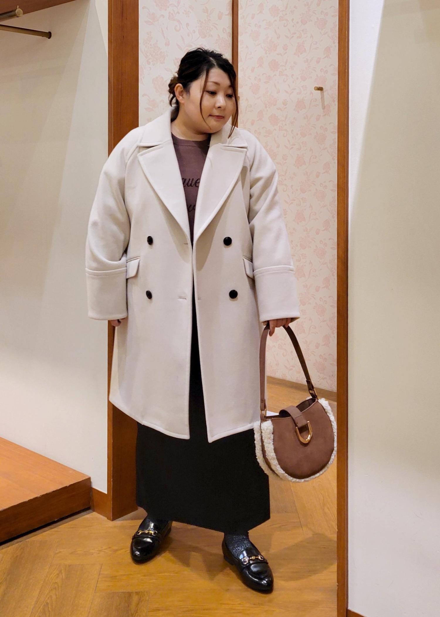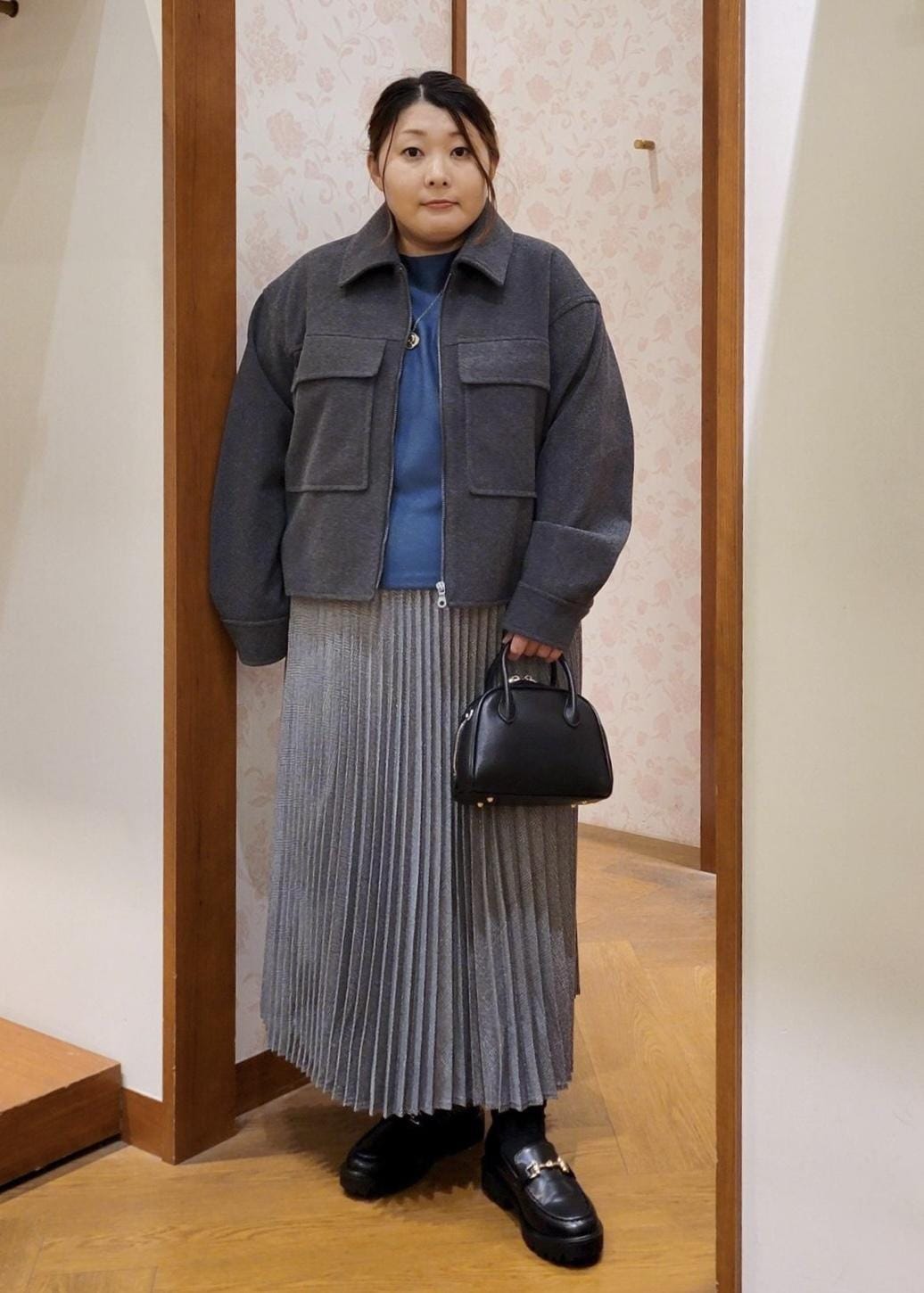ゆとりがあるサイズ感なので、重ね着もしやすいです。 -
