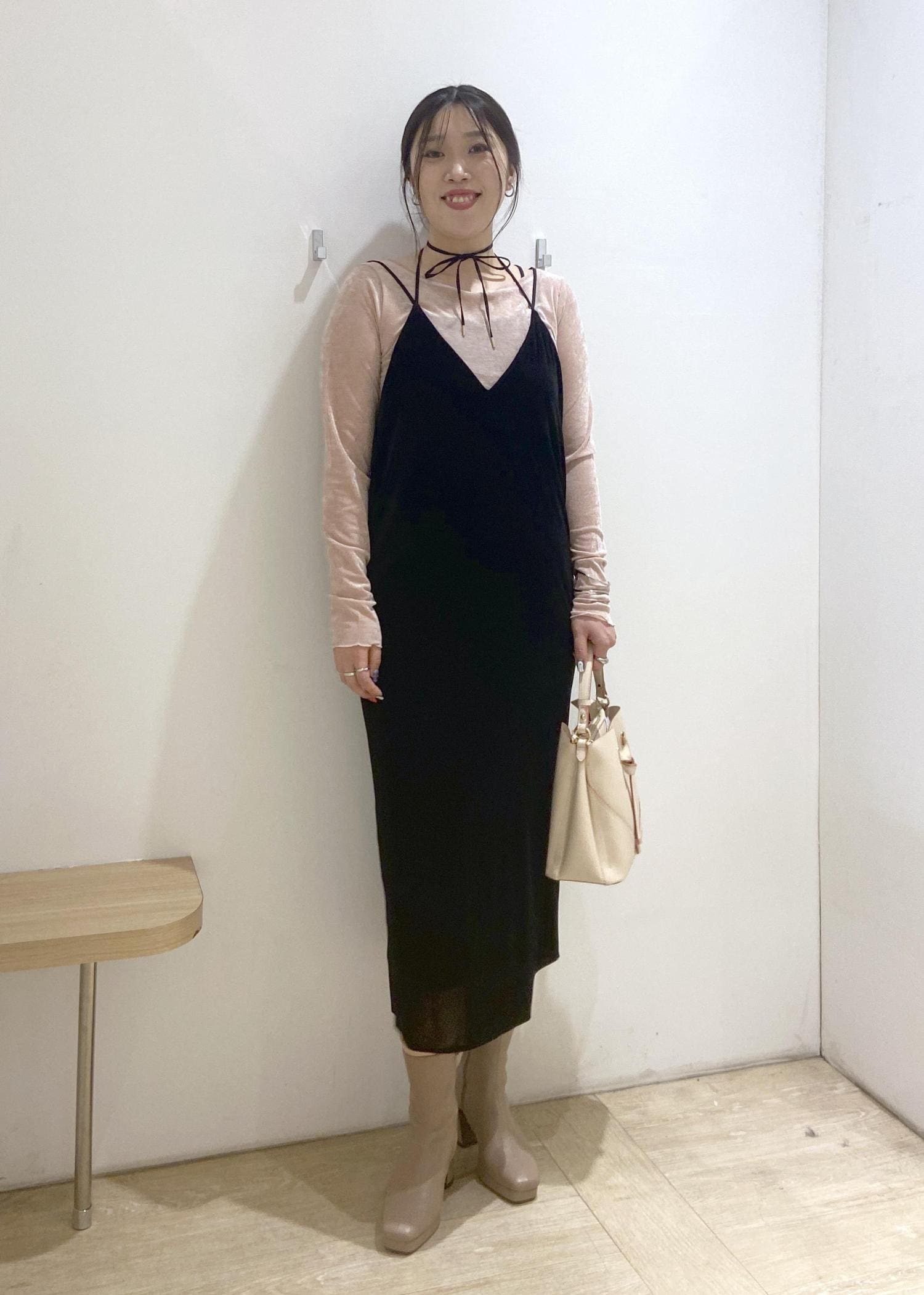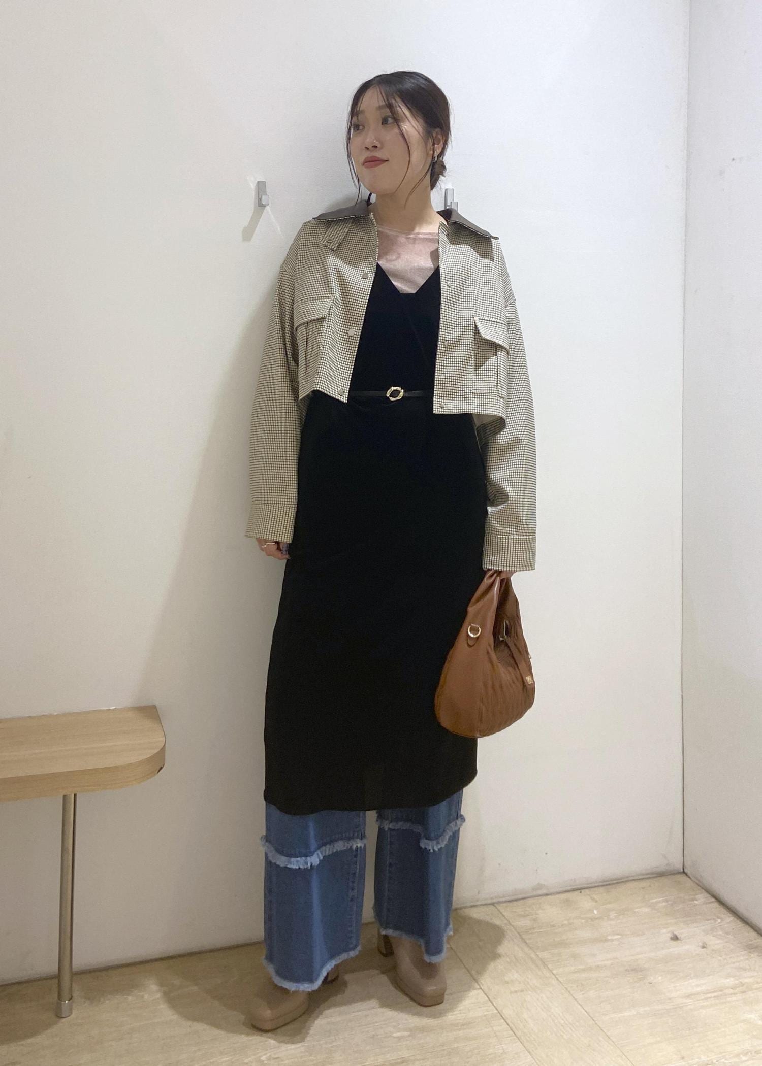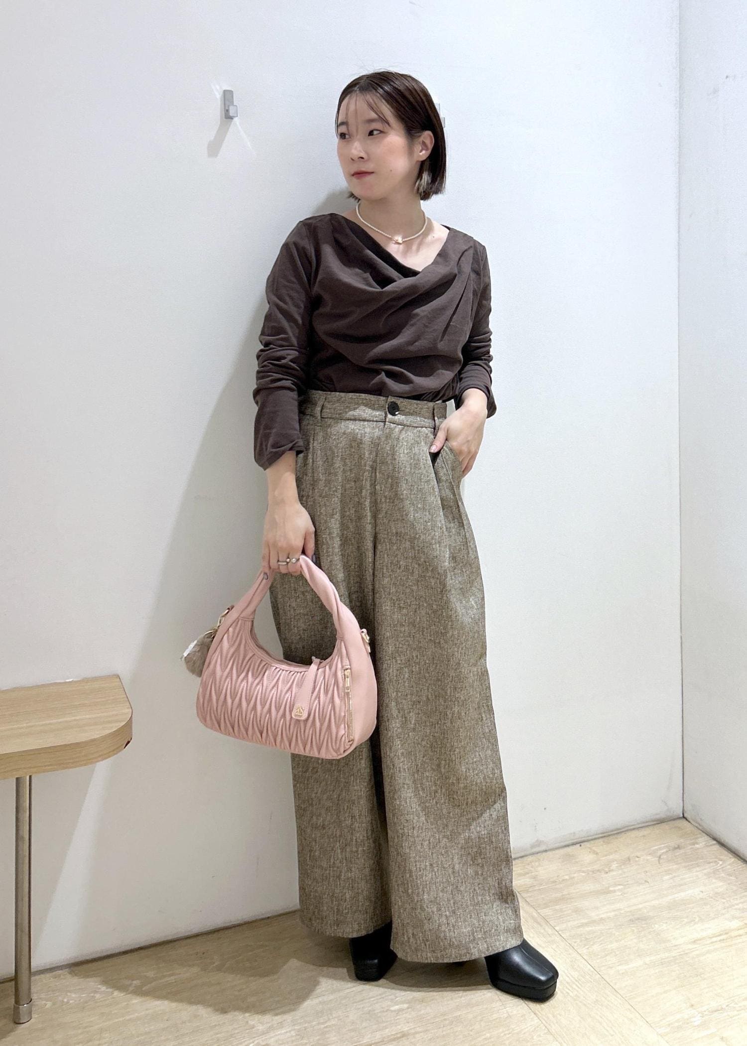 私は骨格ストレートなのでウエストから広がるシルエットは苦手なのですが、丈感長めなトップスやワンピースのレイヤードで合わせるとこなれ感が出やすいです◎ -