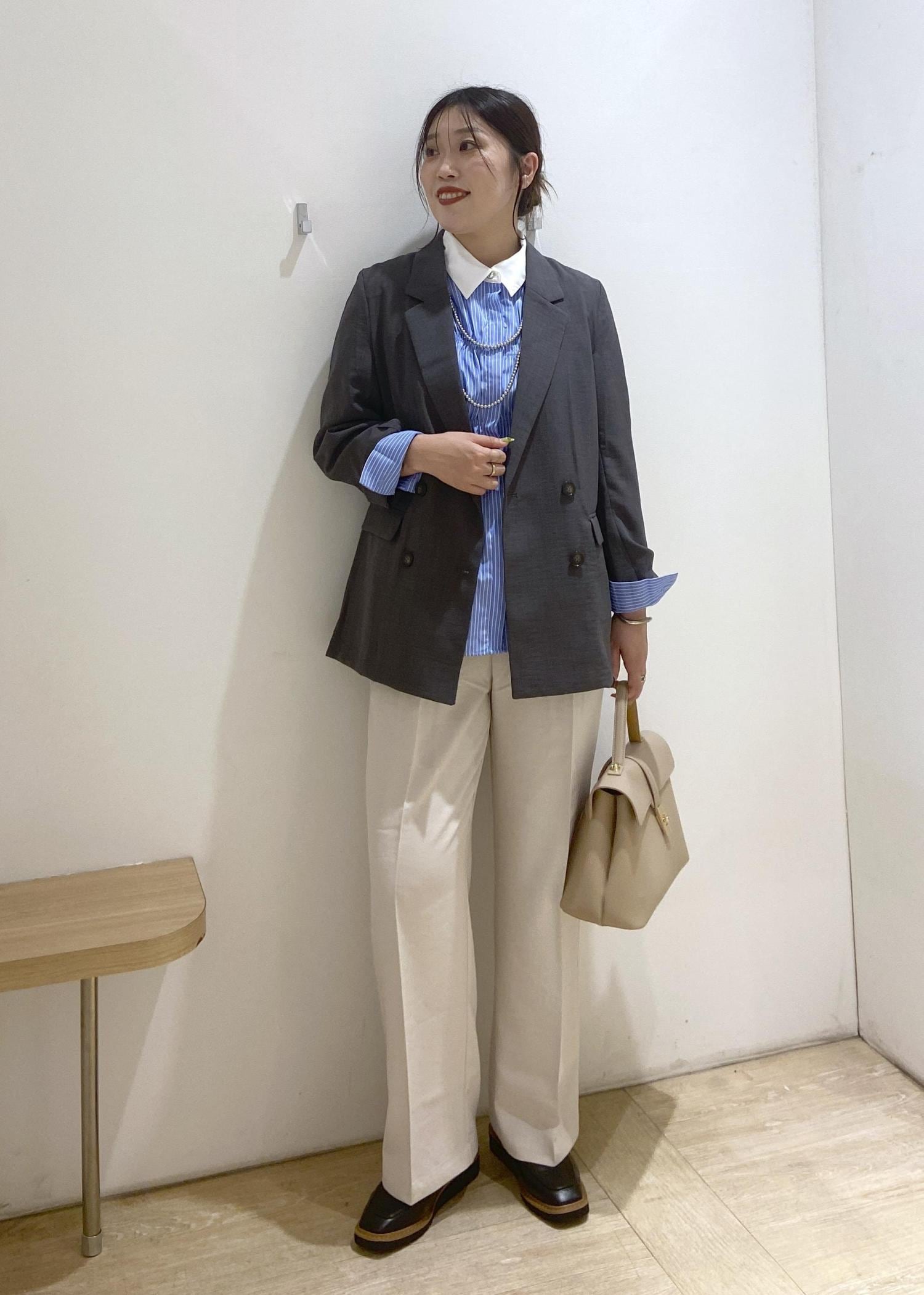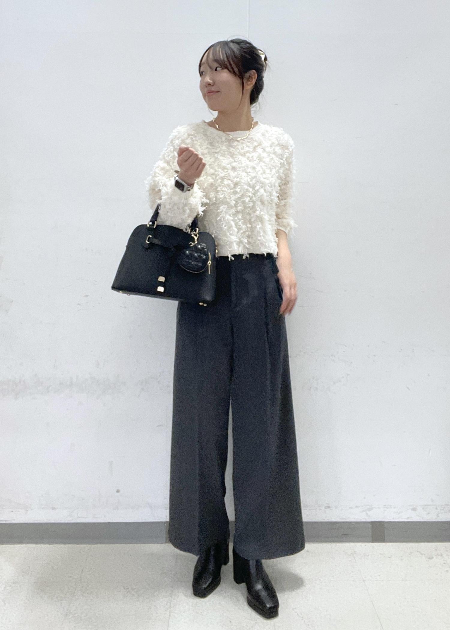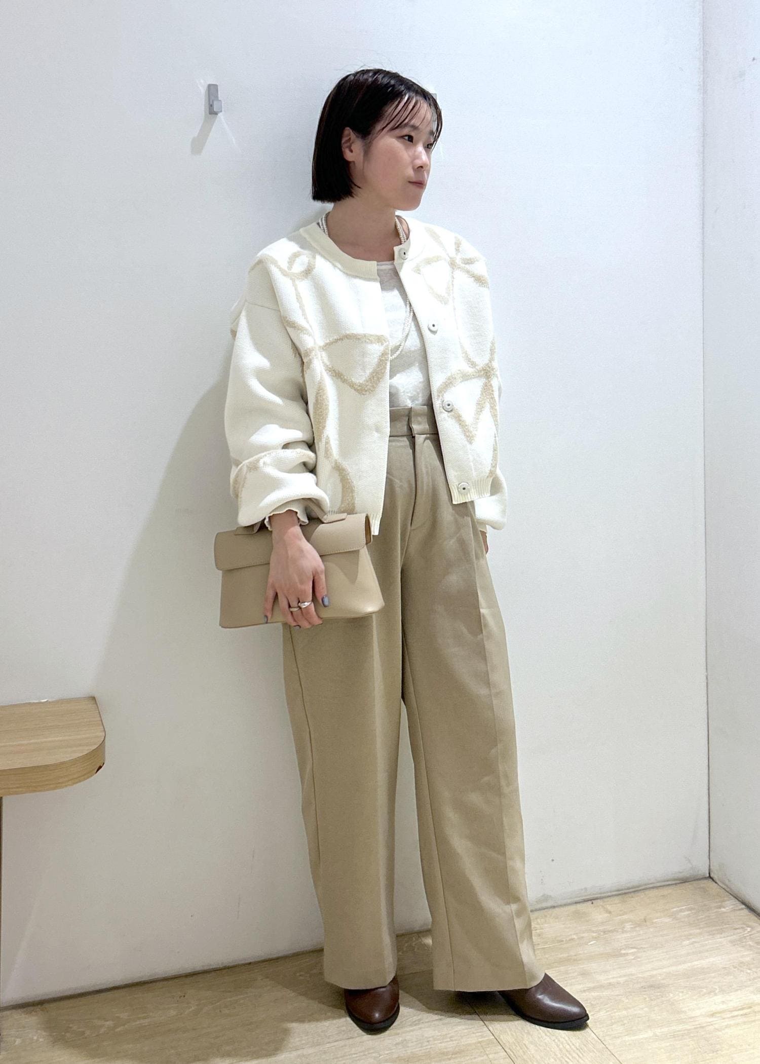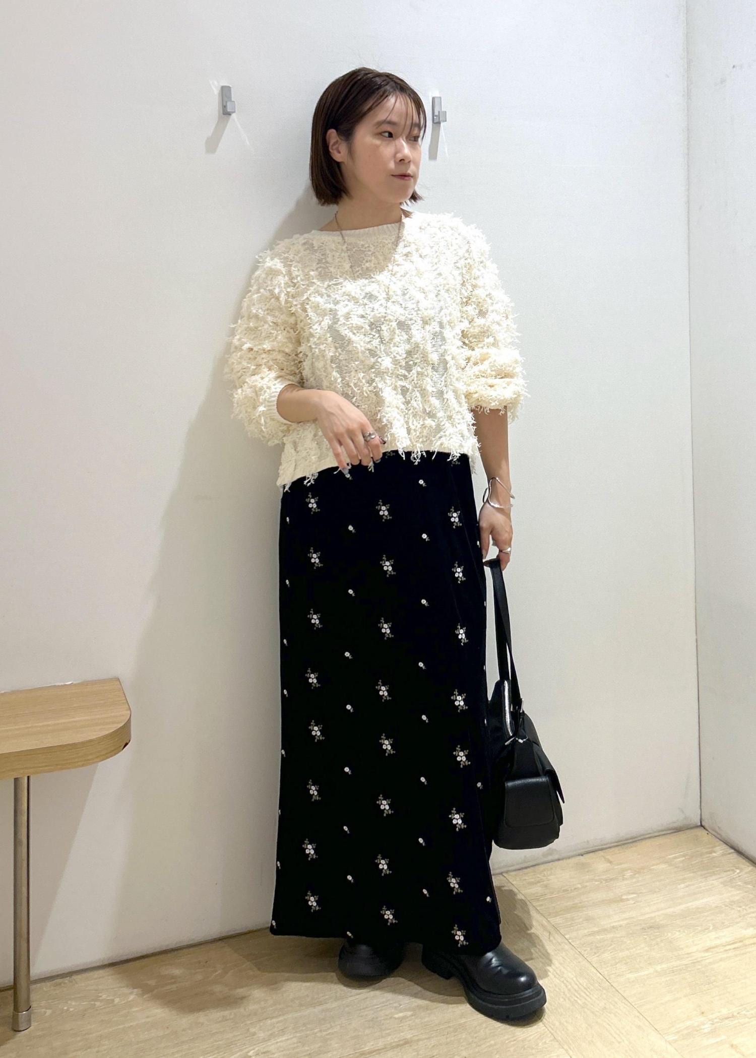私は骨格ストレートなのでウエストから広がるシルエットは苦手なのですが、丈感長めなトップスやワンピースのレイヤードで合わせるとこなれ感が出やすいです◎ -