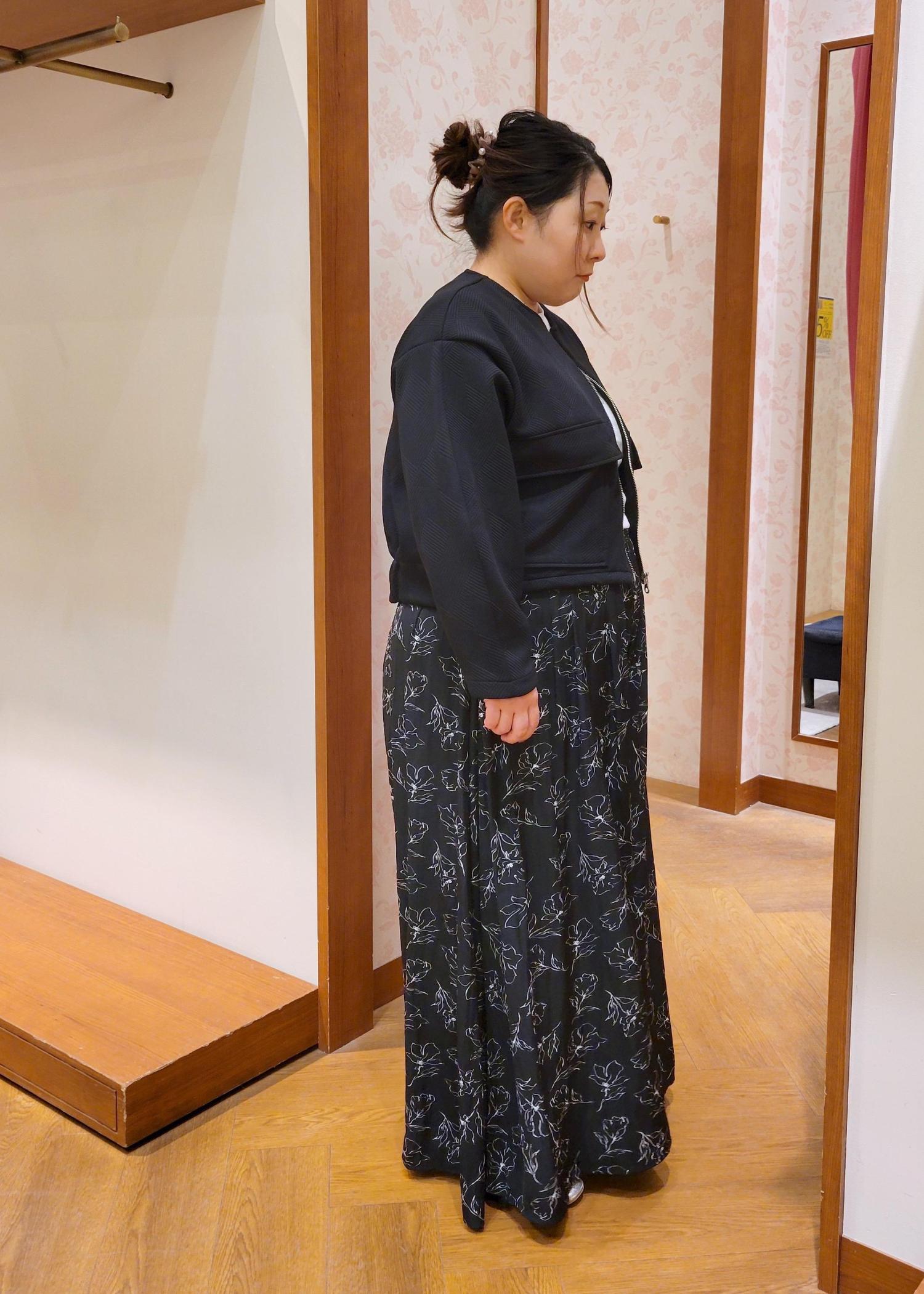 短丈ブルゾン×スカーチョのブラックコーディネート